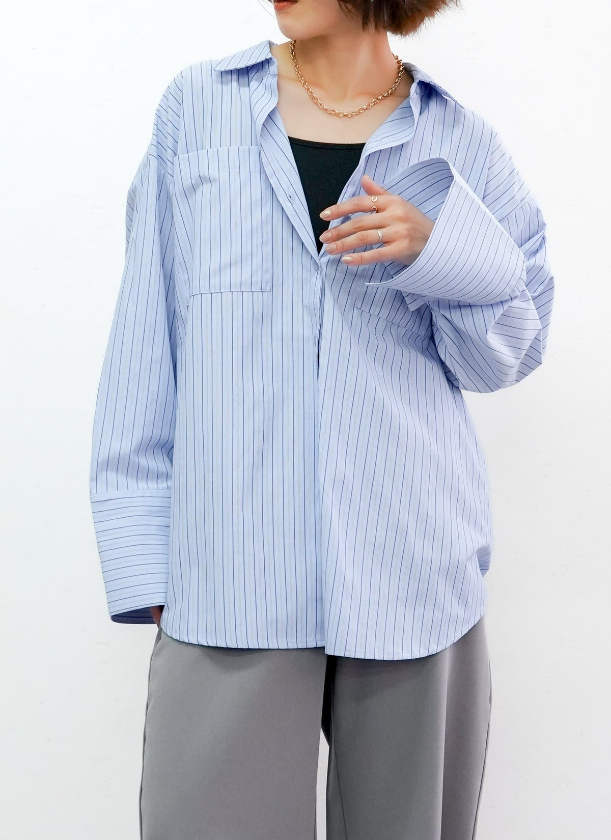 revoam【大きくとった袖口とカフスがポイントのトレンドライクなシャツ】 【15%OFF】ビッグカフスオーバーサイズシャツ