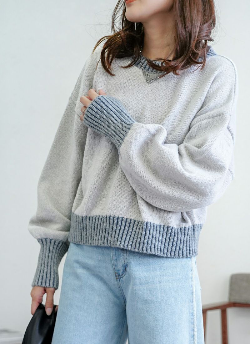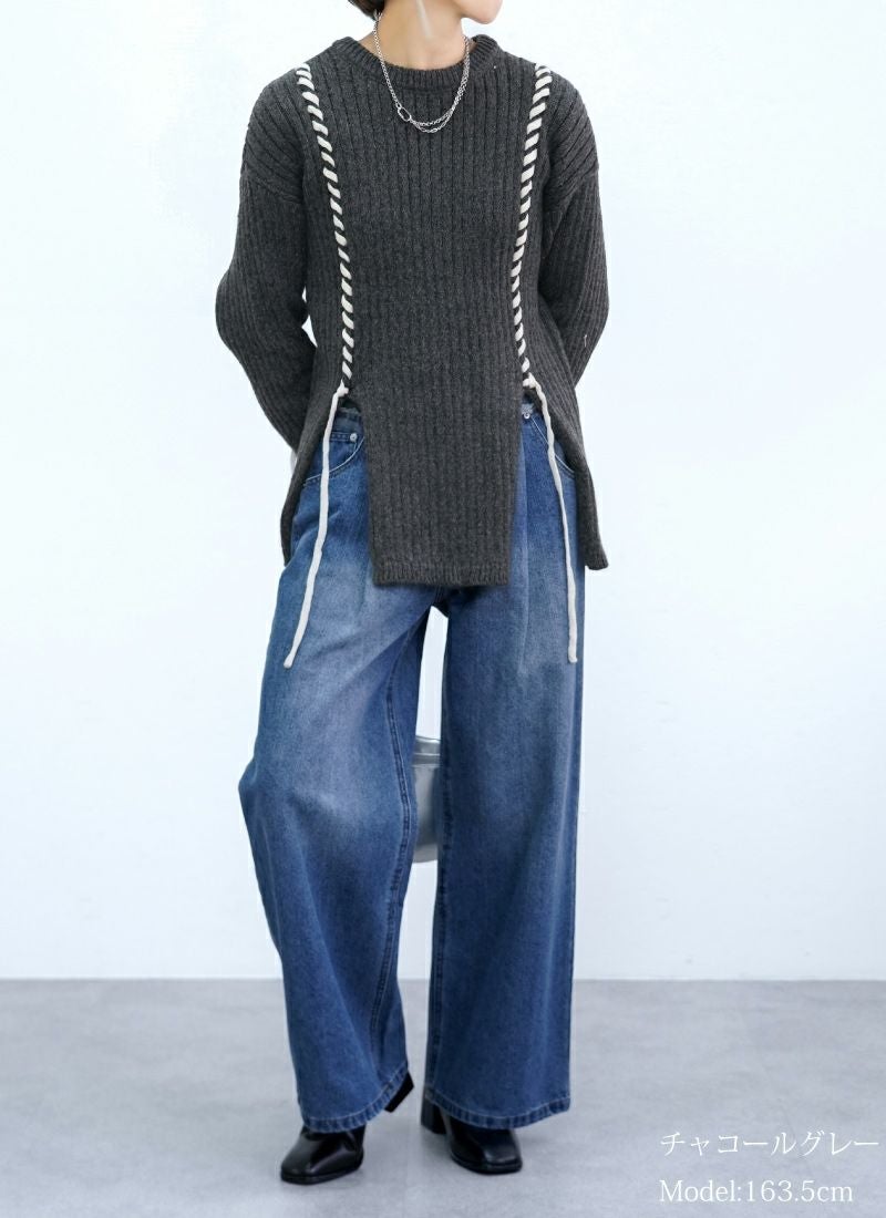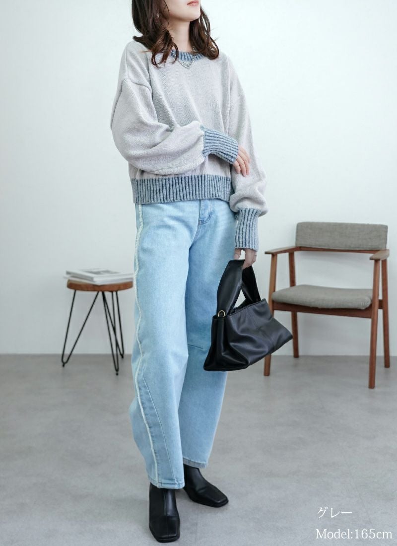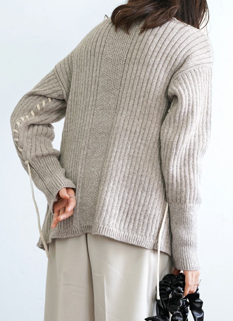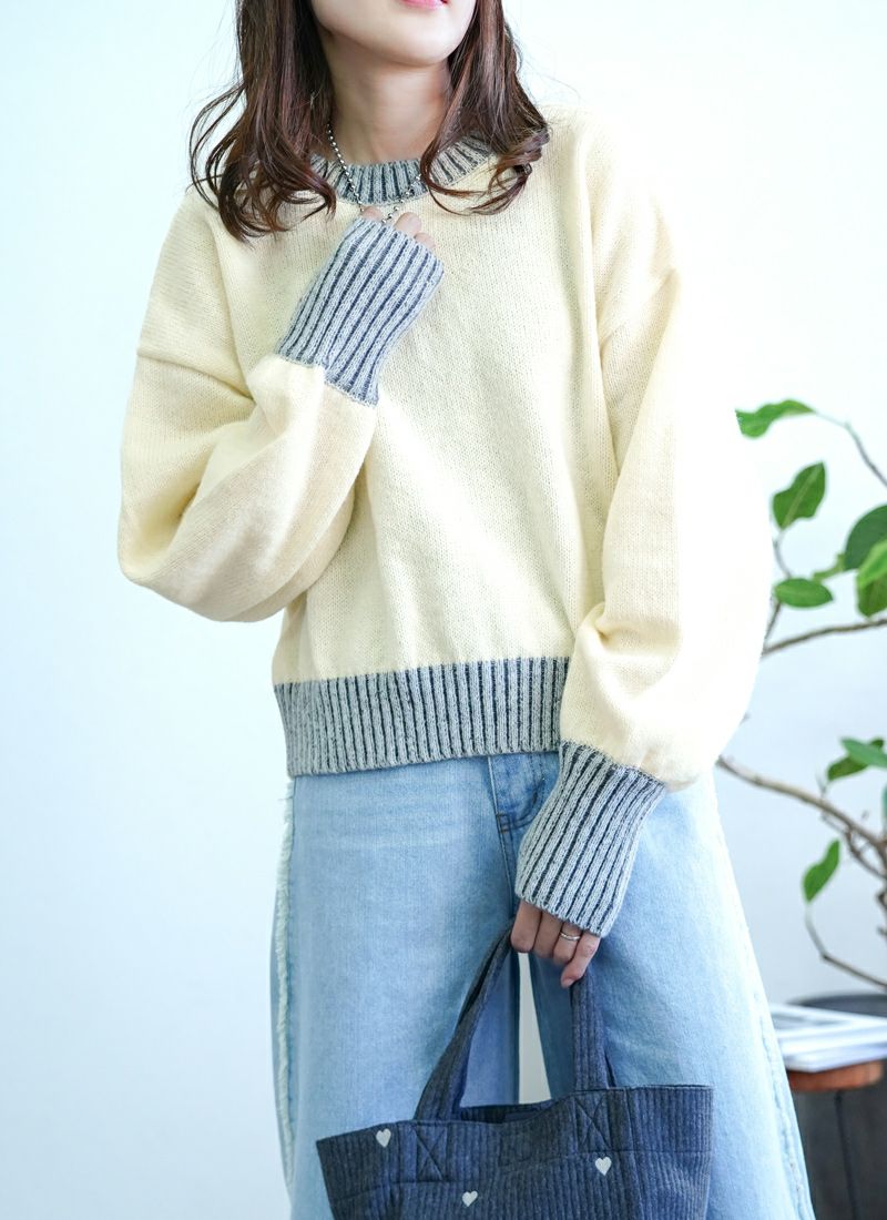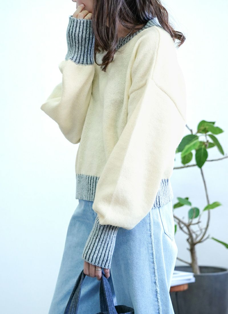 revoam【リブ編みで細見え。デザイン性と着心地を両立したプルオーバー】 【20%OFF】リブ編み配色ステッチプルオーバー