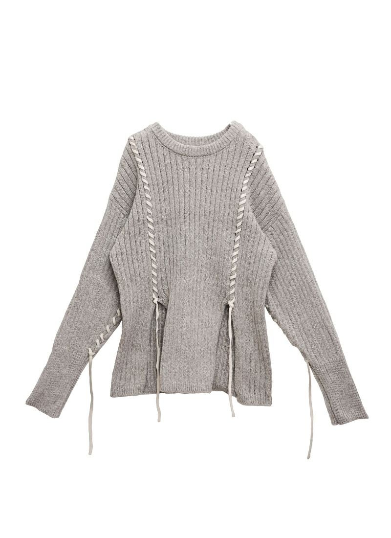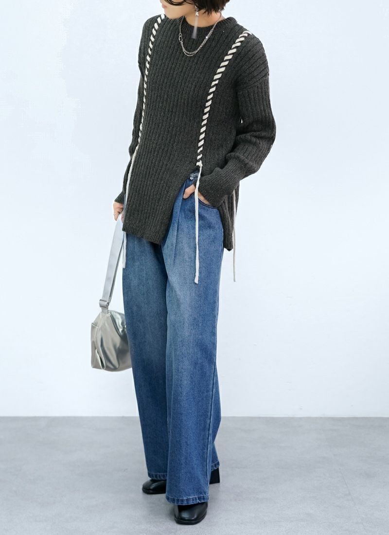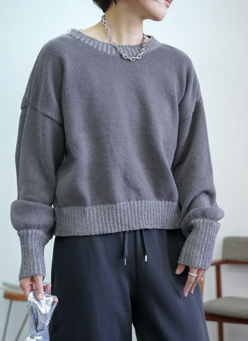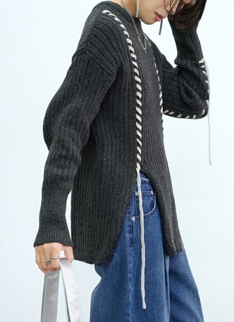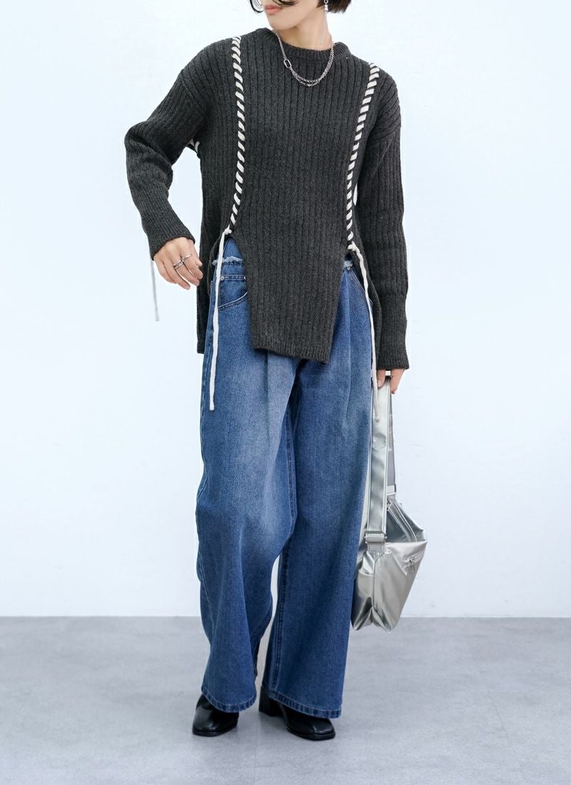 revoam【リブ編みで細見え。デザイン性と着心地を両立したプルオーバー】 【20%OFF】リブ編み配色ステッチプルオーバー