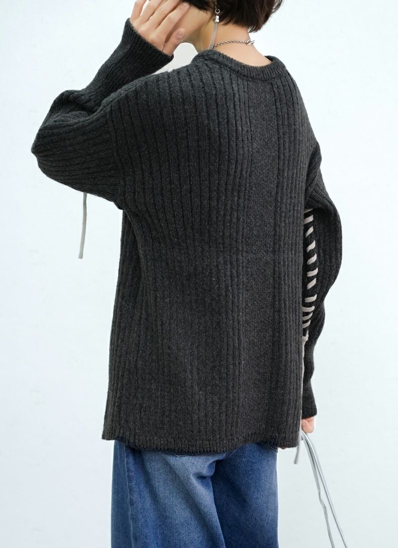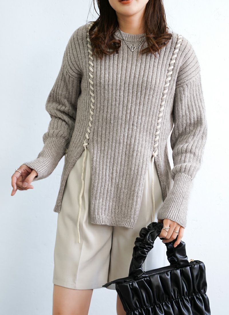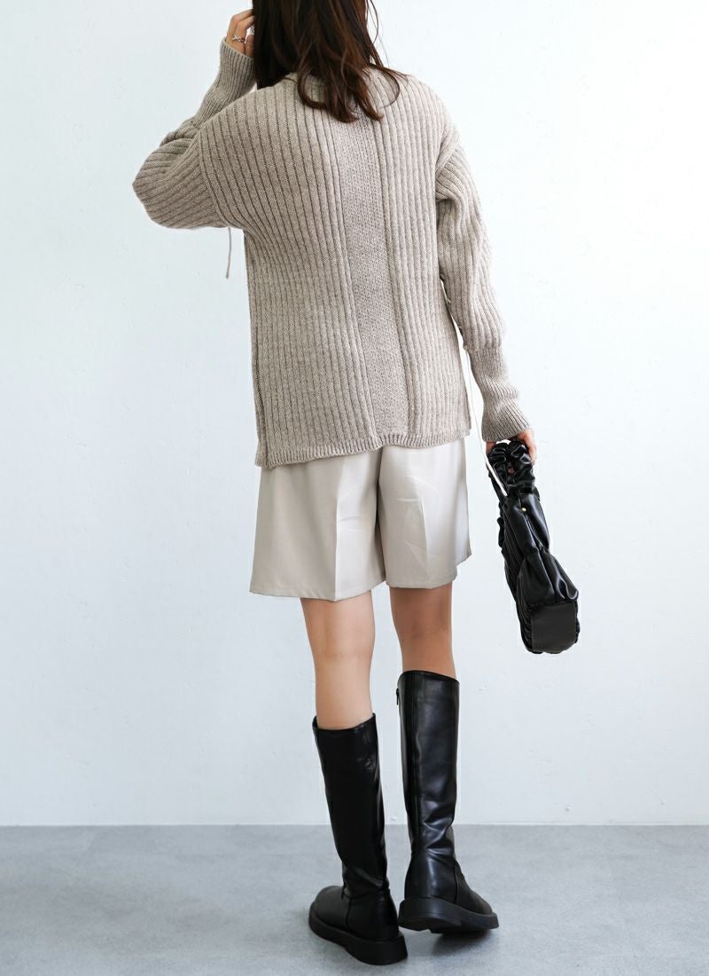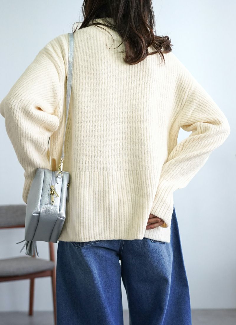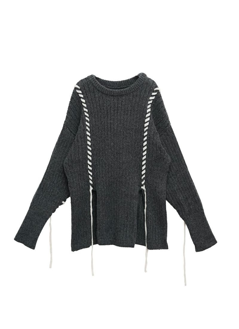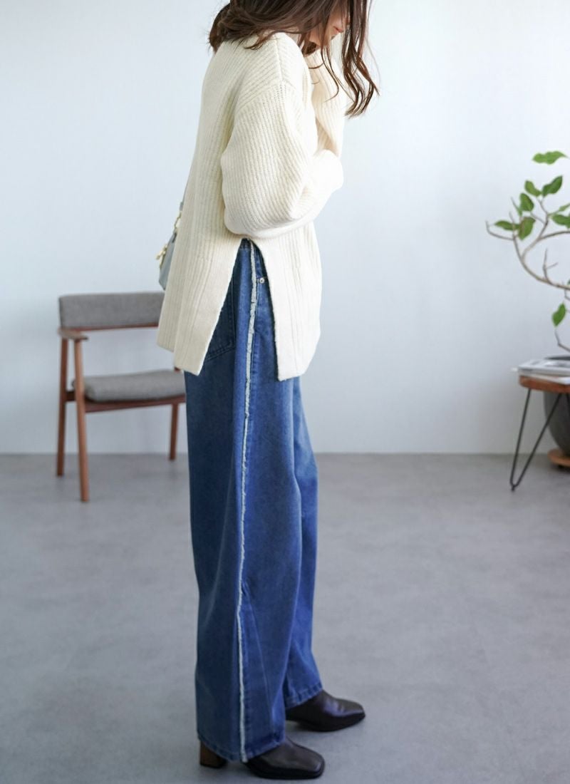 revoam【リブ編みで細見え。デザイン性と着心地を両立したプルオーバー】 【20%OFF】リブ編み配色ステッチプルオーバー