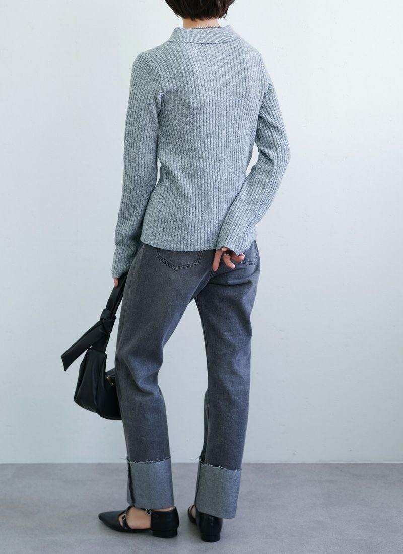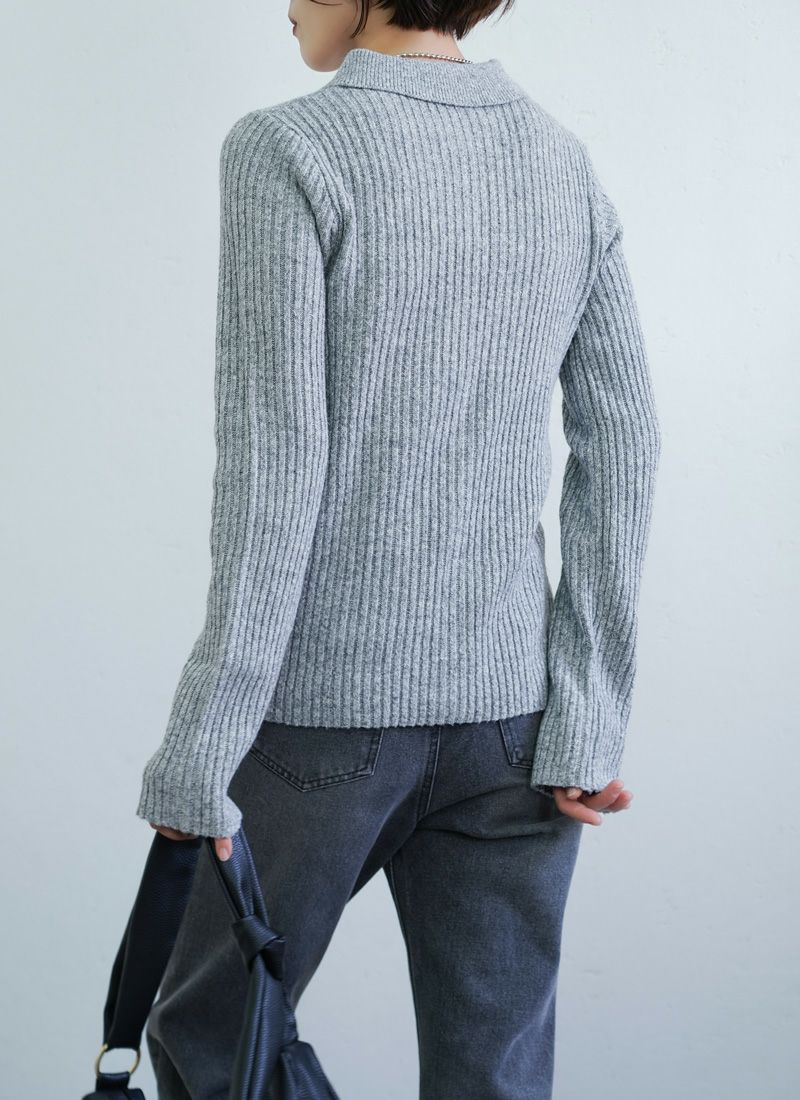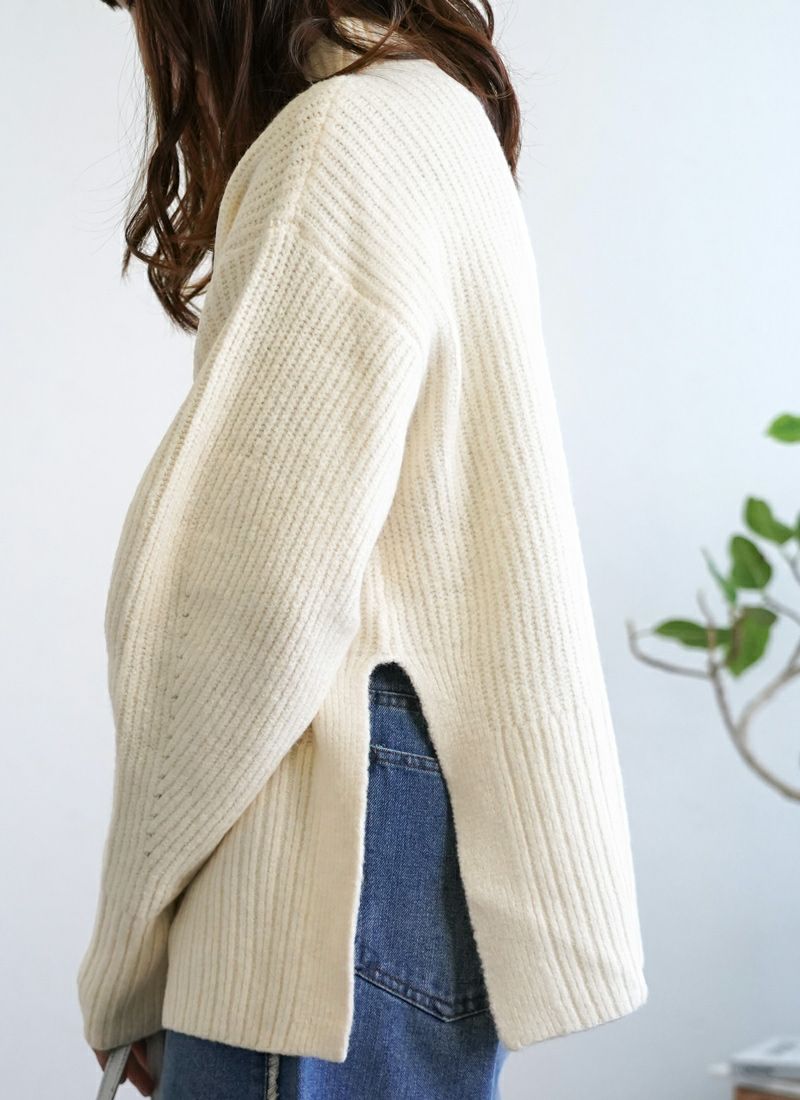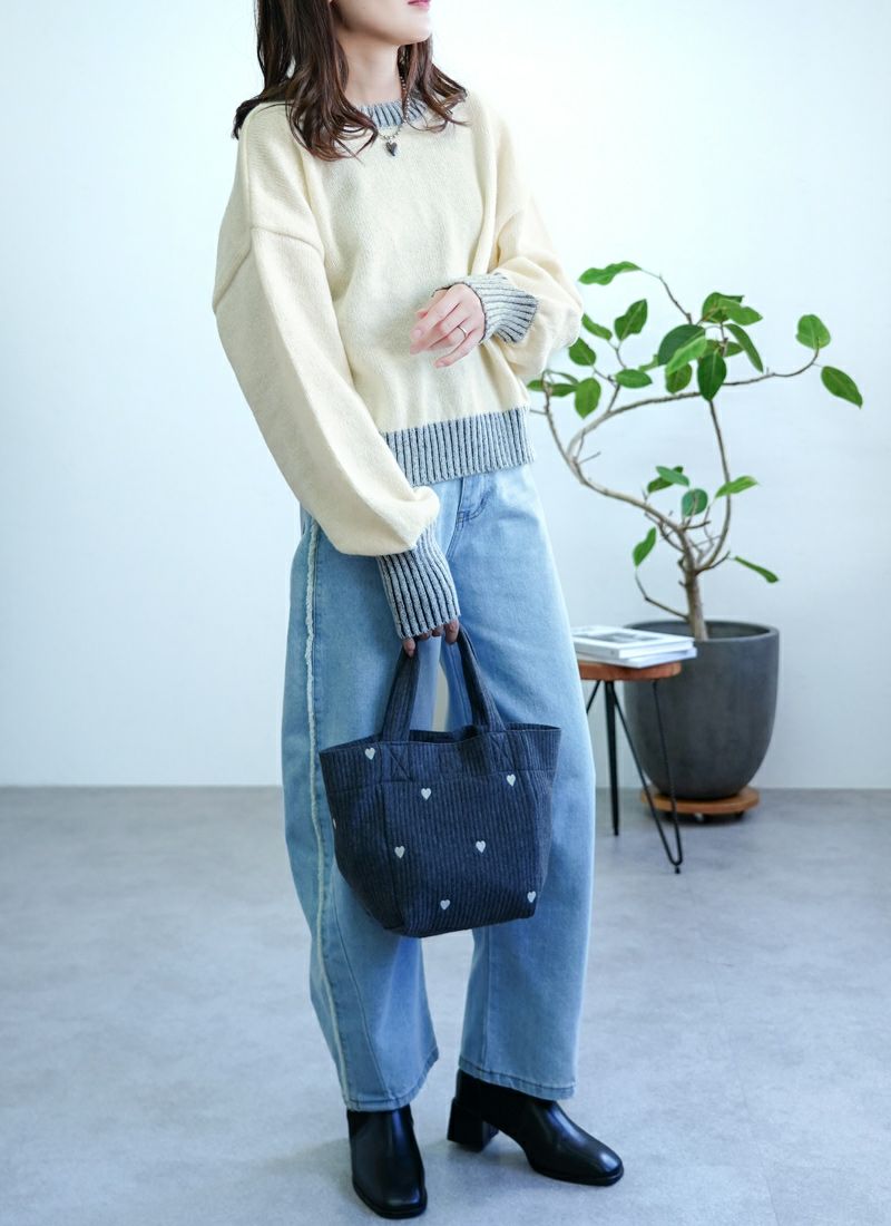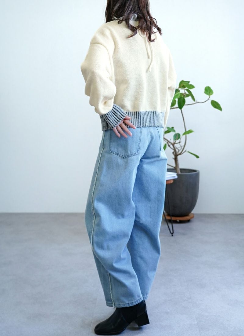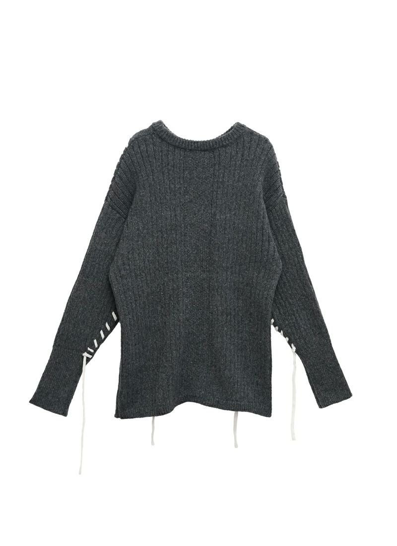 revoam【リブ編みで細見え。デザイン性と着心地を両立したプルオーバー】 【20%OFF】リブ編み配色ステッチプルオーバー
