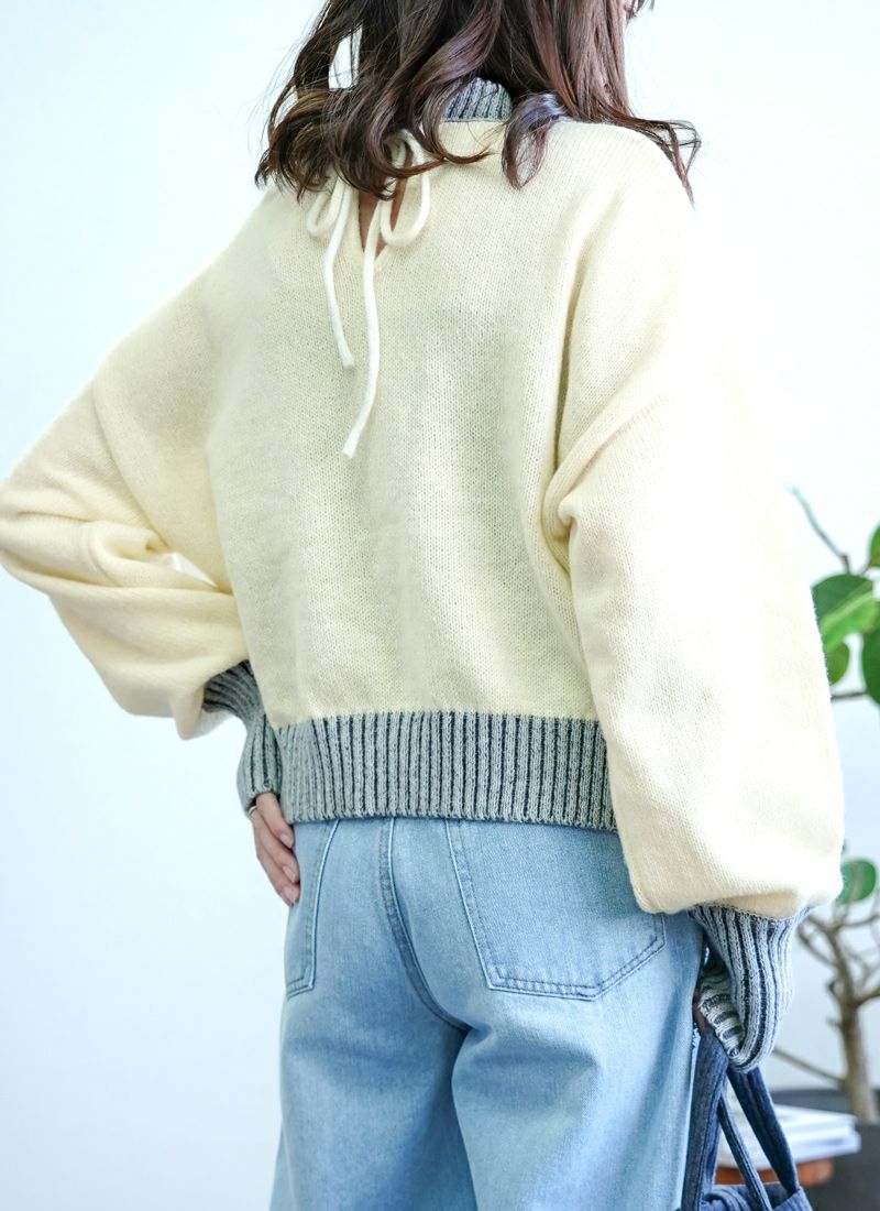 【新作おすすめ】 【40%OFF】バックデザイン配色ニットプルオーバー