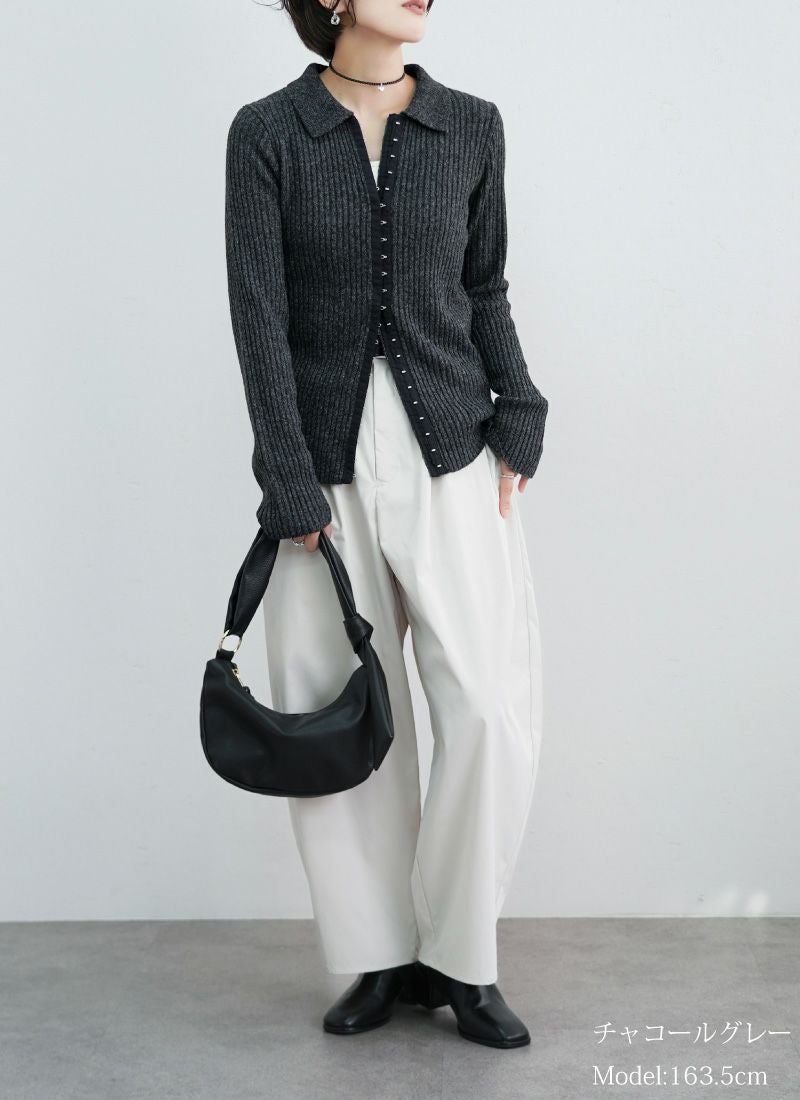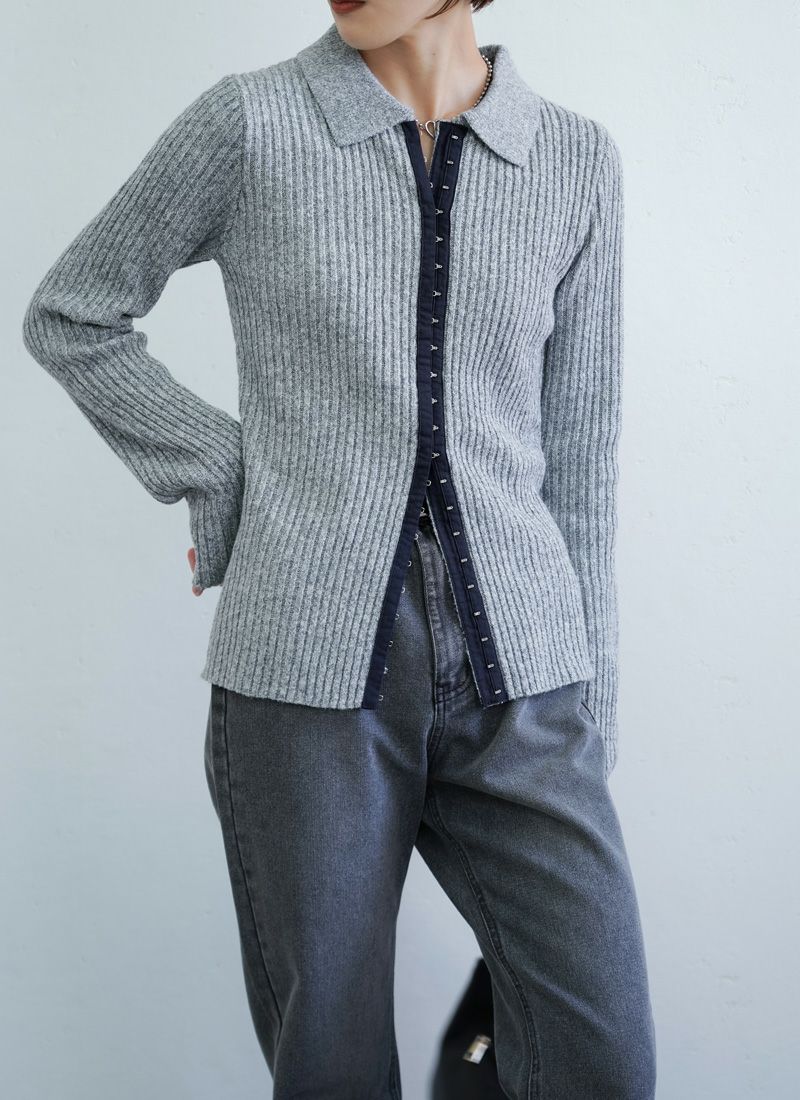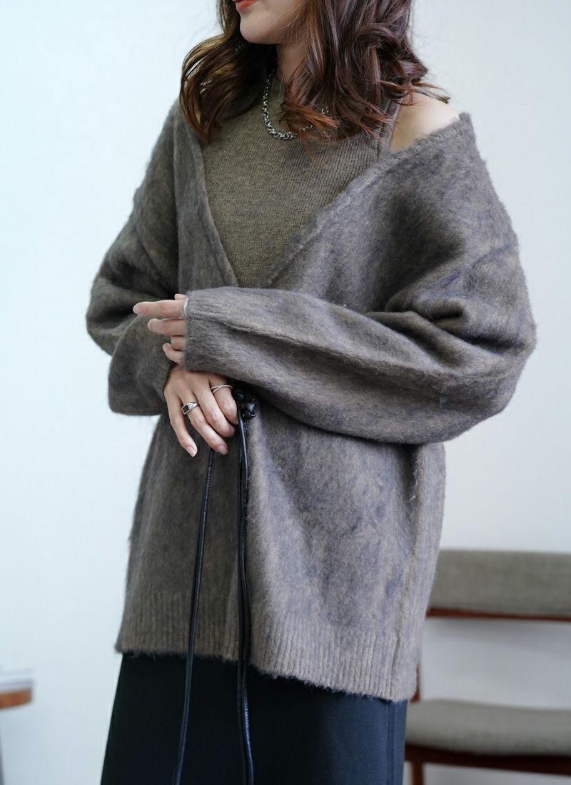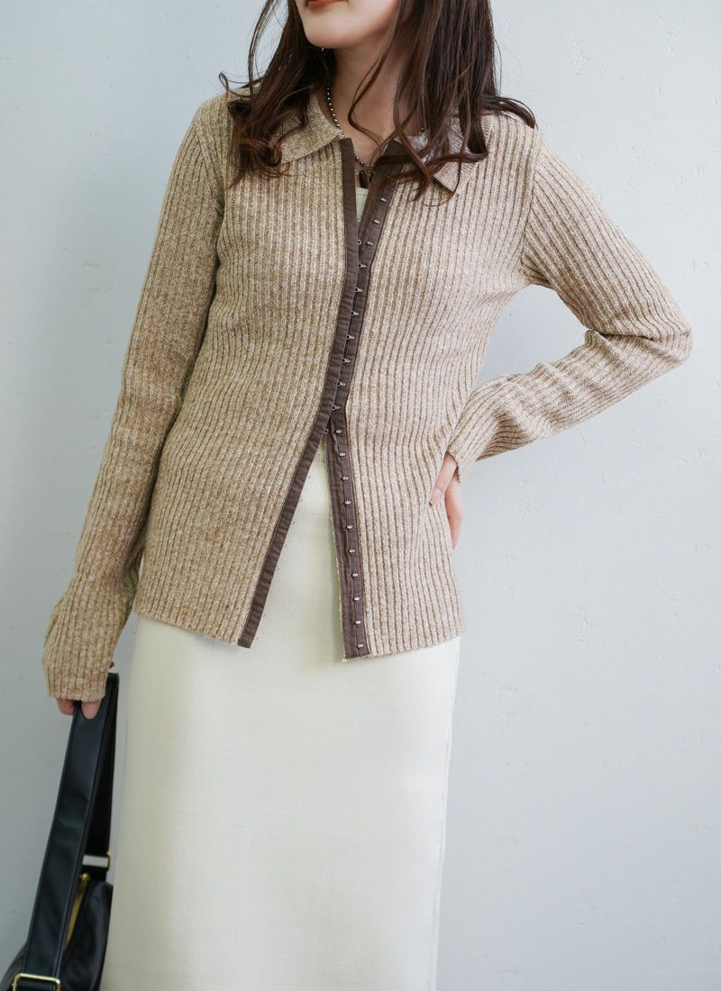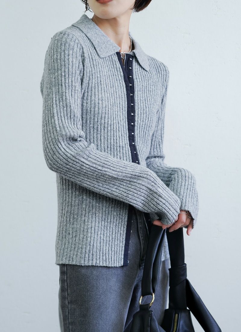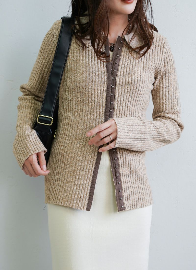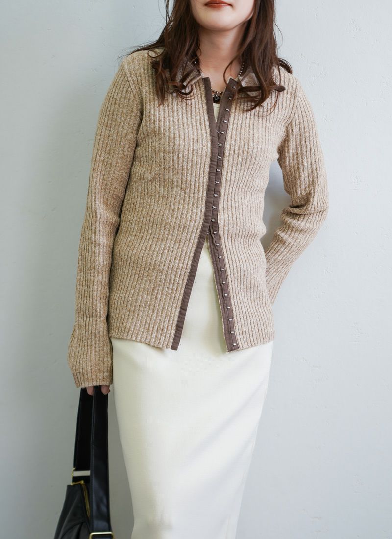 【新作おすすめ】 【10%OFF】ミックスニットホックデザインカーデ