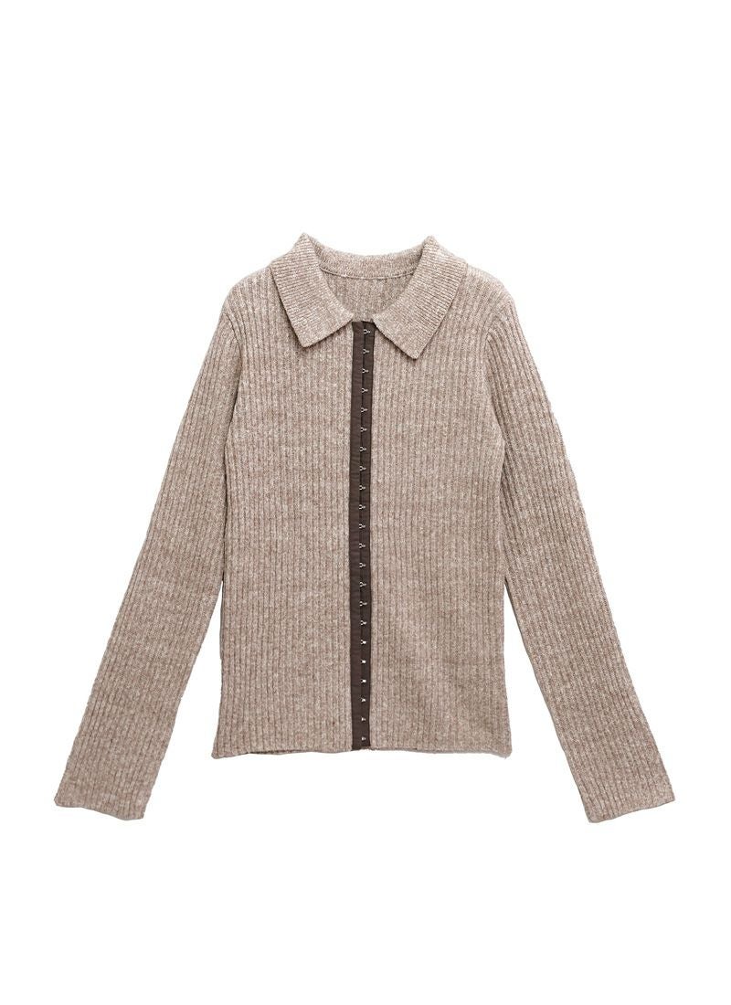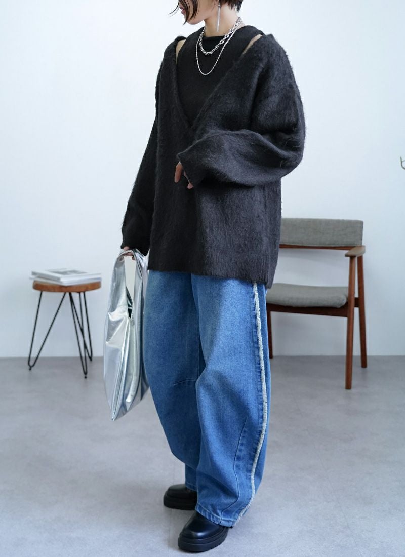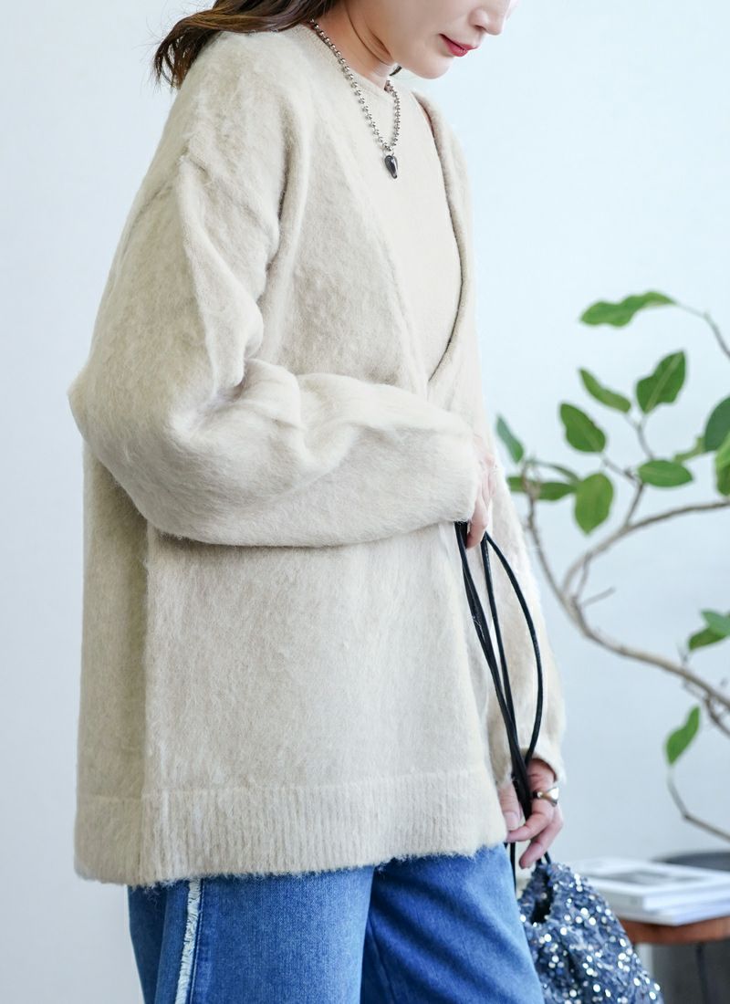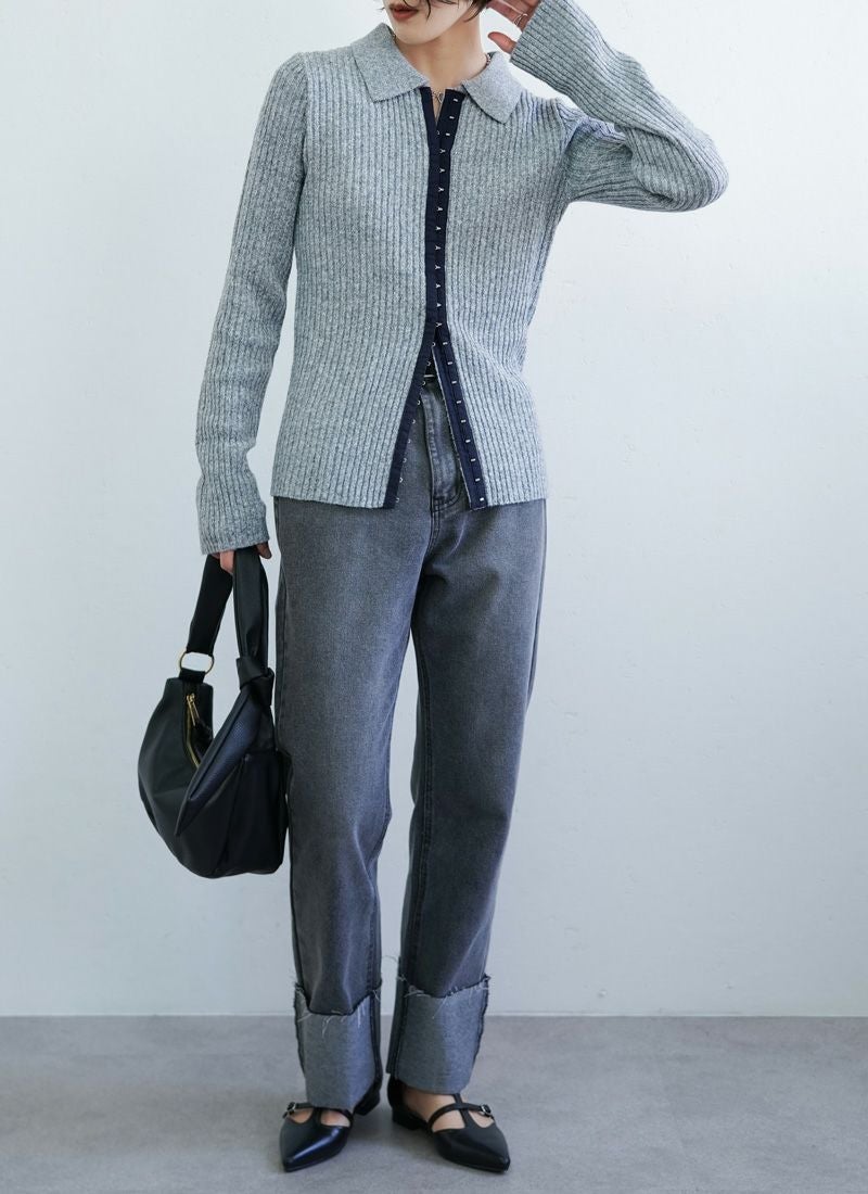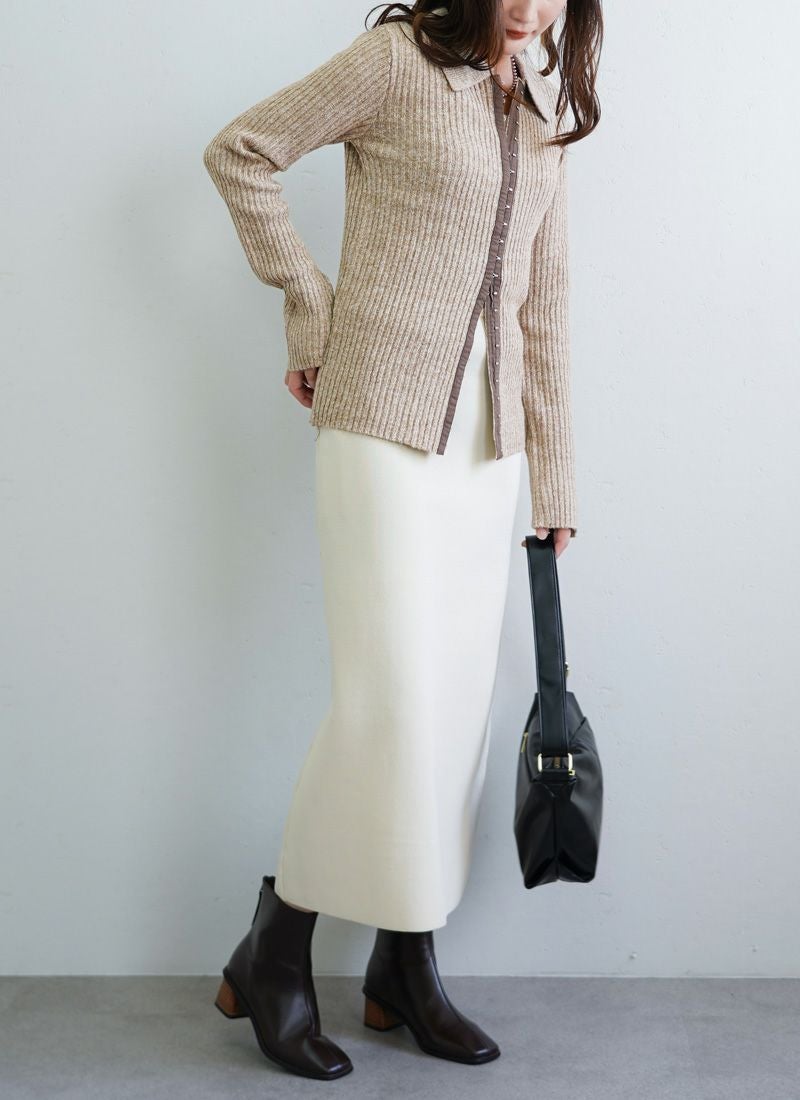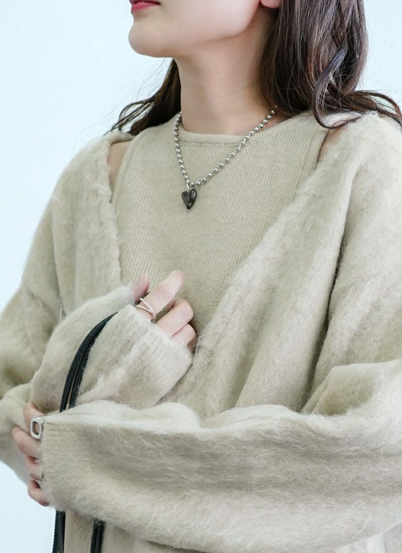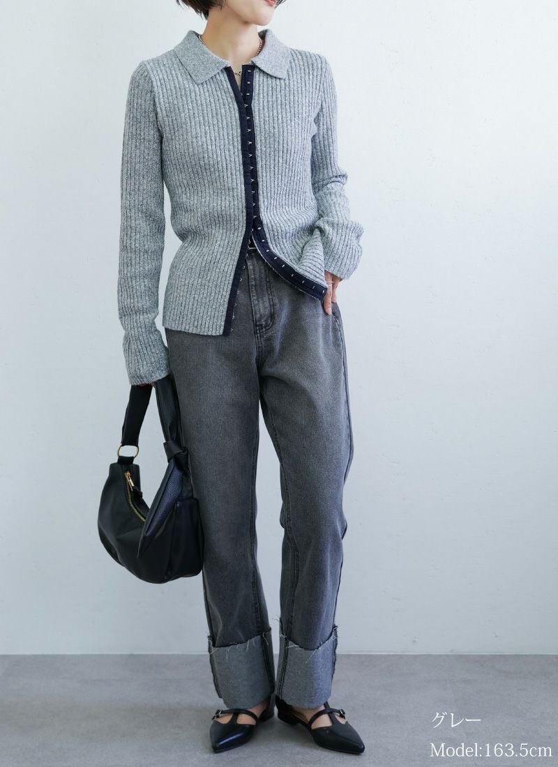 【新作おすすめ】 【10%OFF】ミックスニットホックデザインカーデ