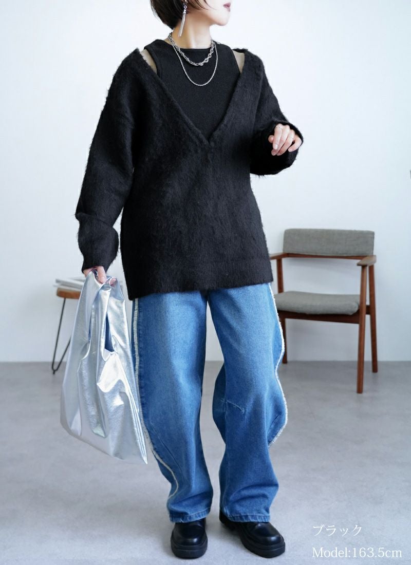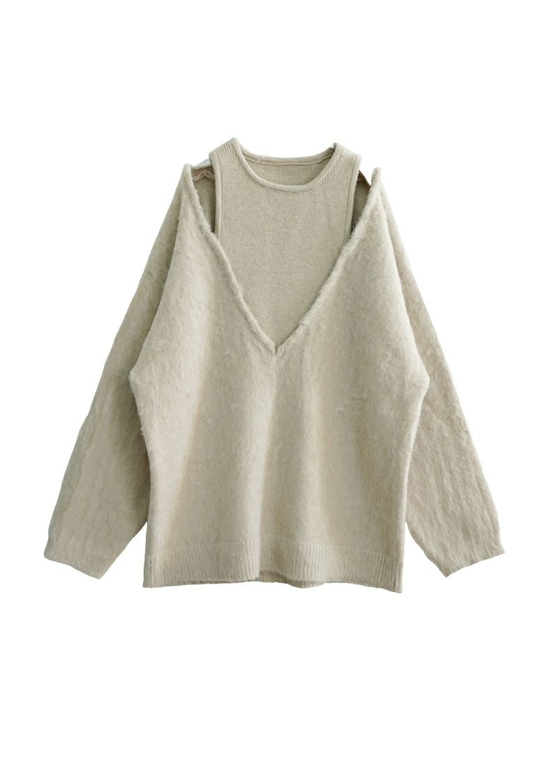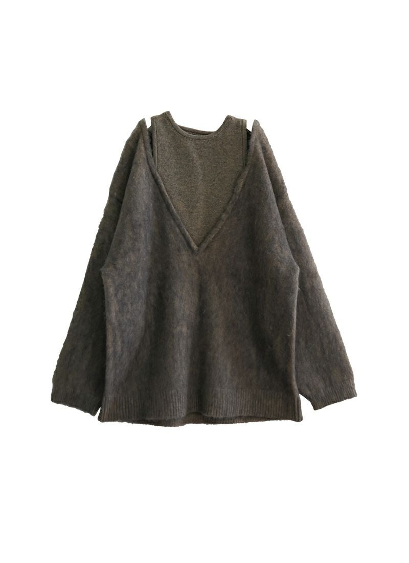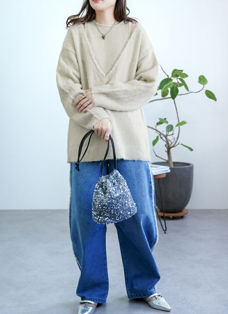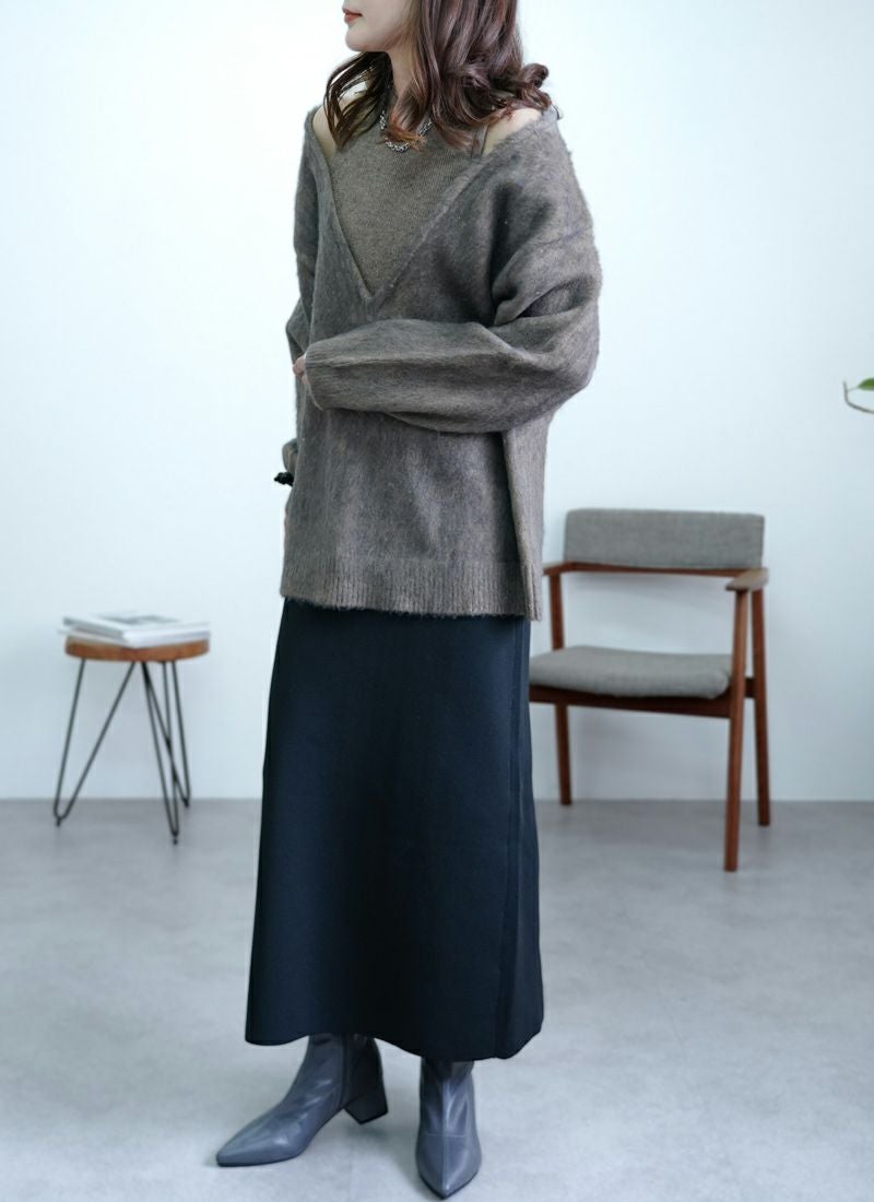【新作おすすめ】 【30%OFF】アルパカタッチ重ね着風プルオーバー
