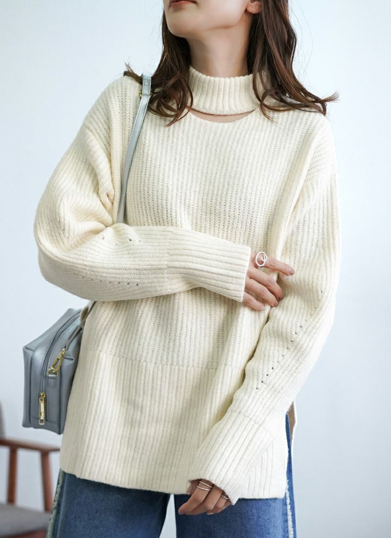 【新作おすすめ】 【20%OFF】ネック開きニットプルオーバー