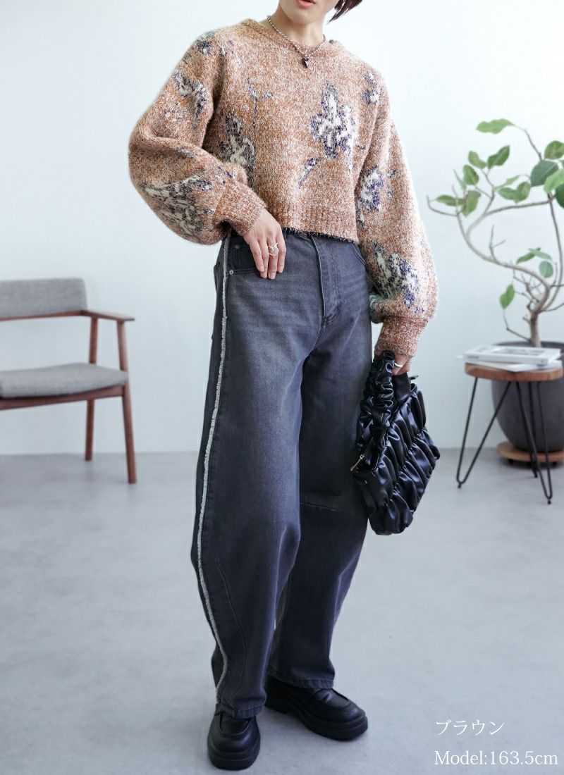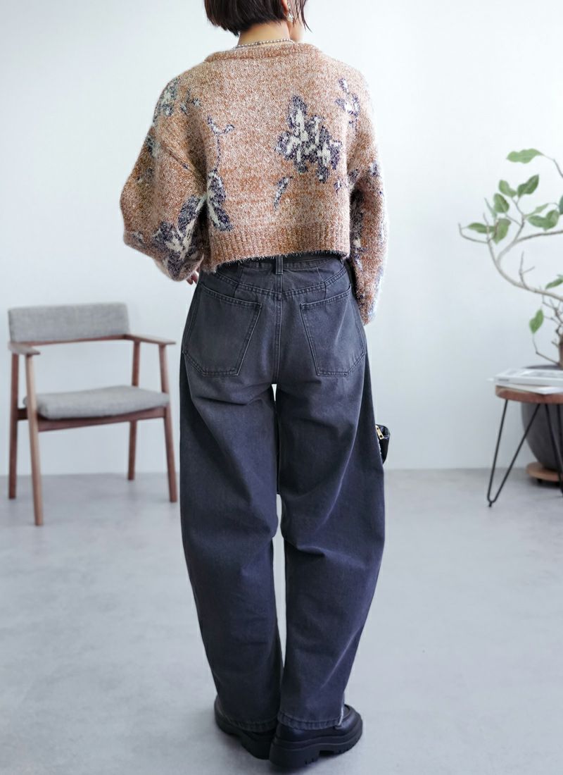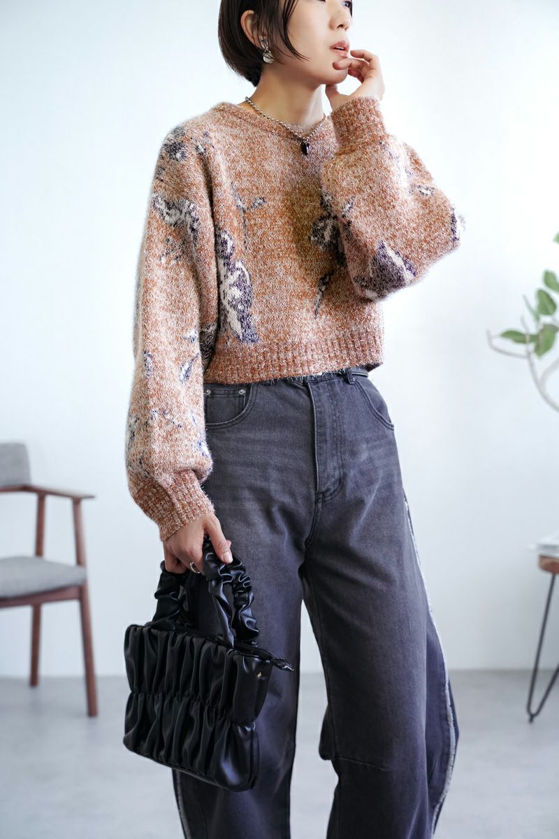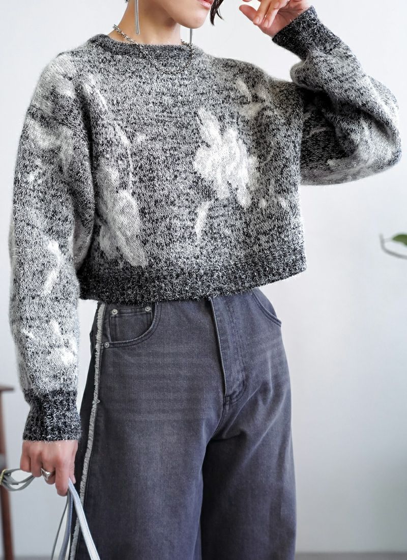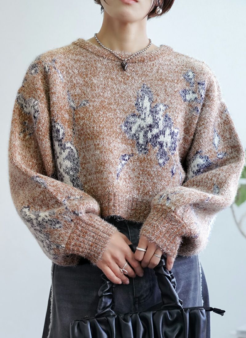 【新作おすすめ】 【40%OFF】フラワージャガードクロップドラメニット