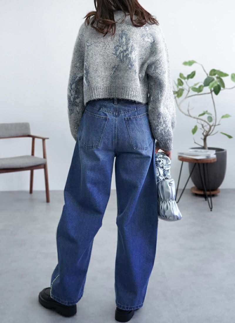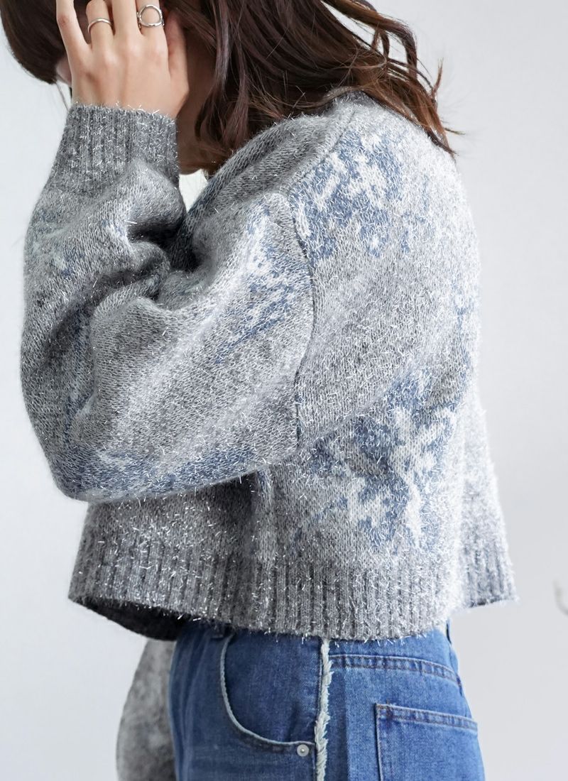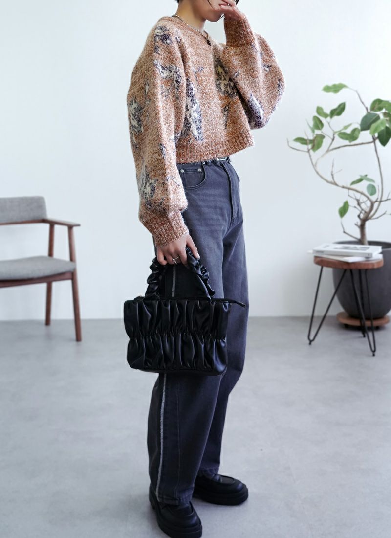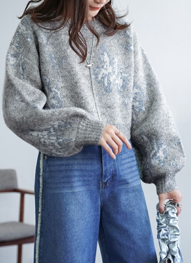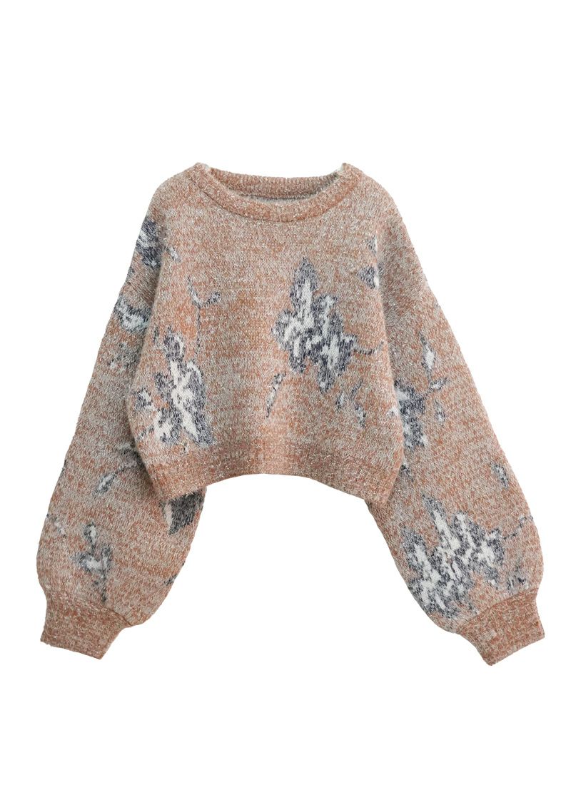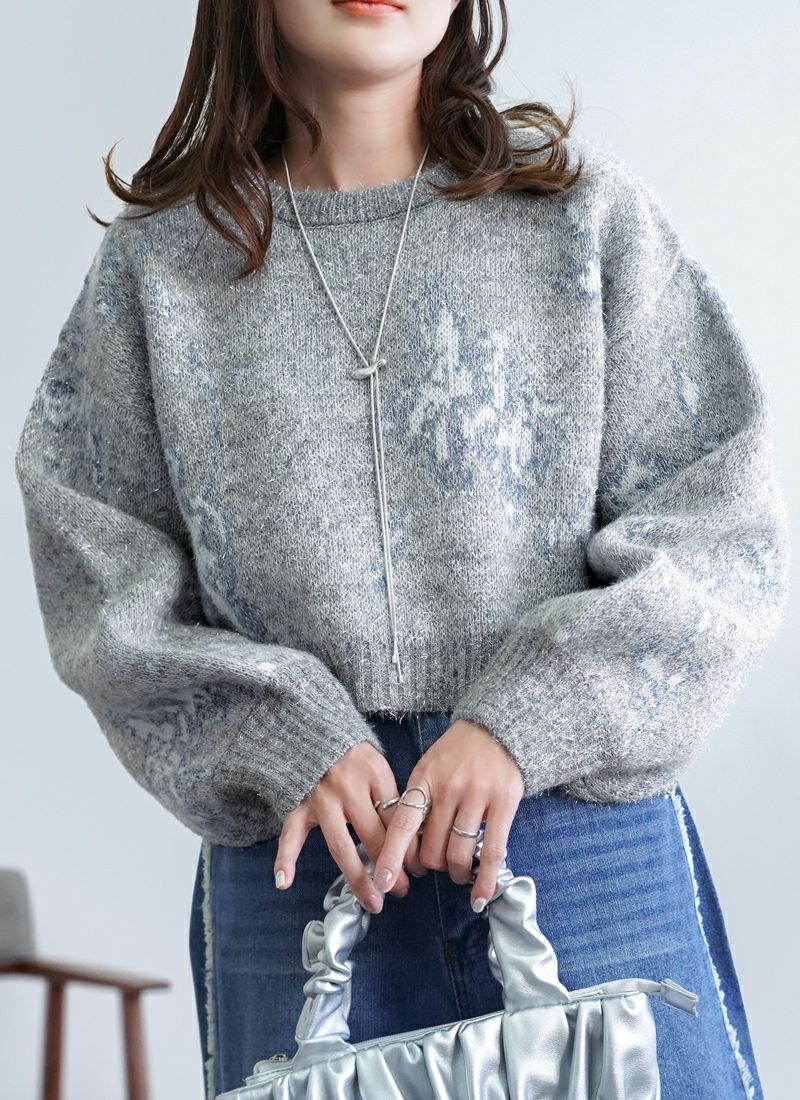 【新作おすすめ】 【40%OFF】フラワージャガードクロップドラメニット