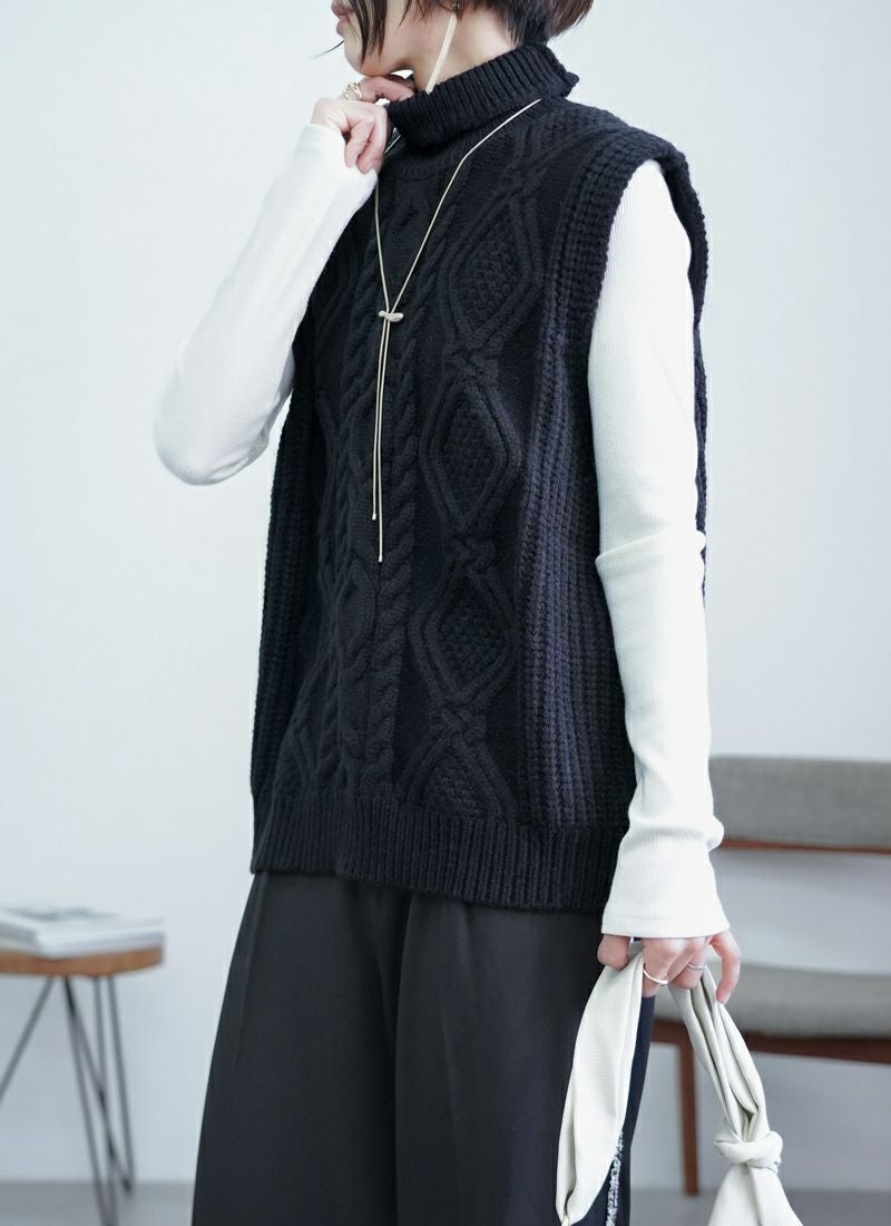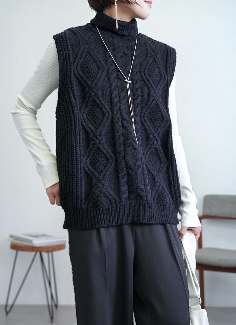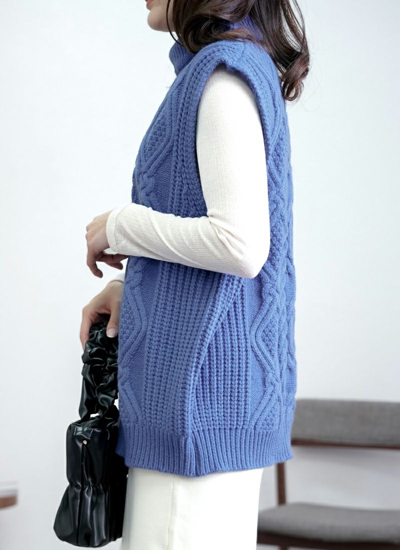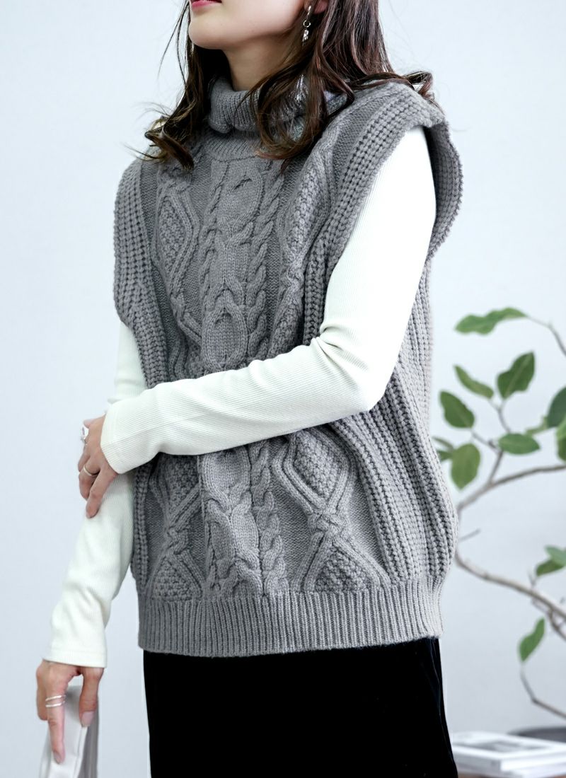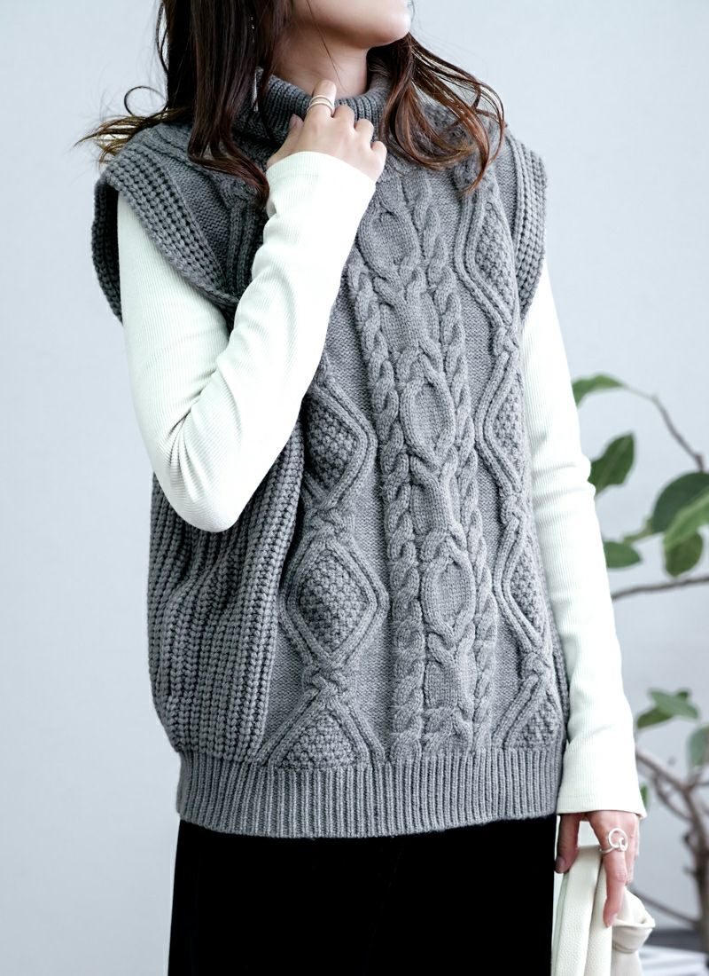 【新作おすすめ】 【30%OFF】ケーブル編みハイネックベスト