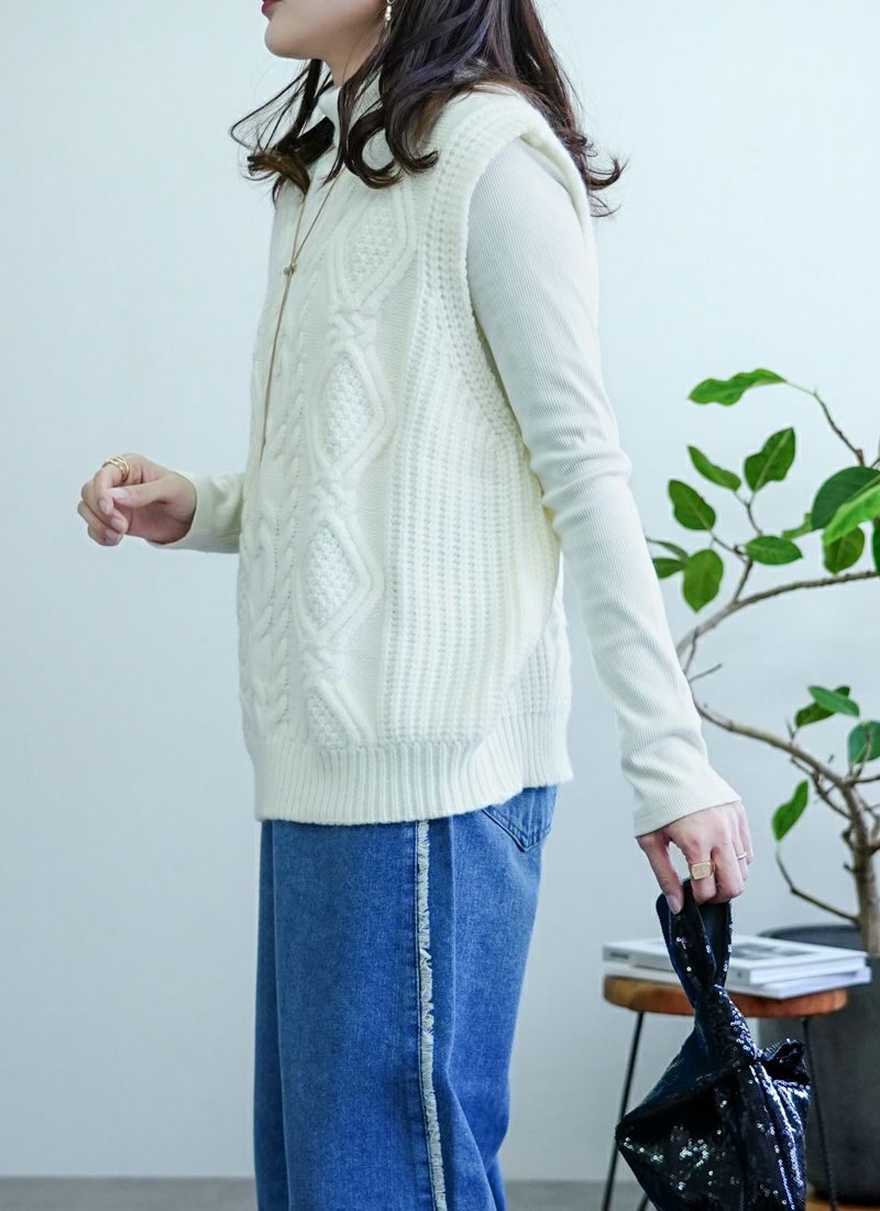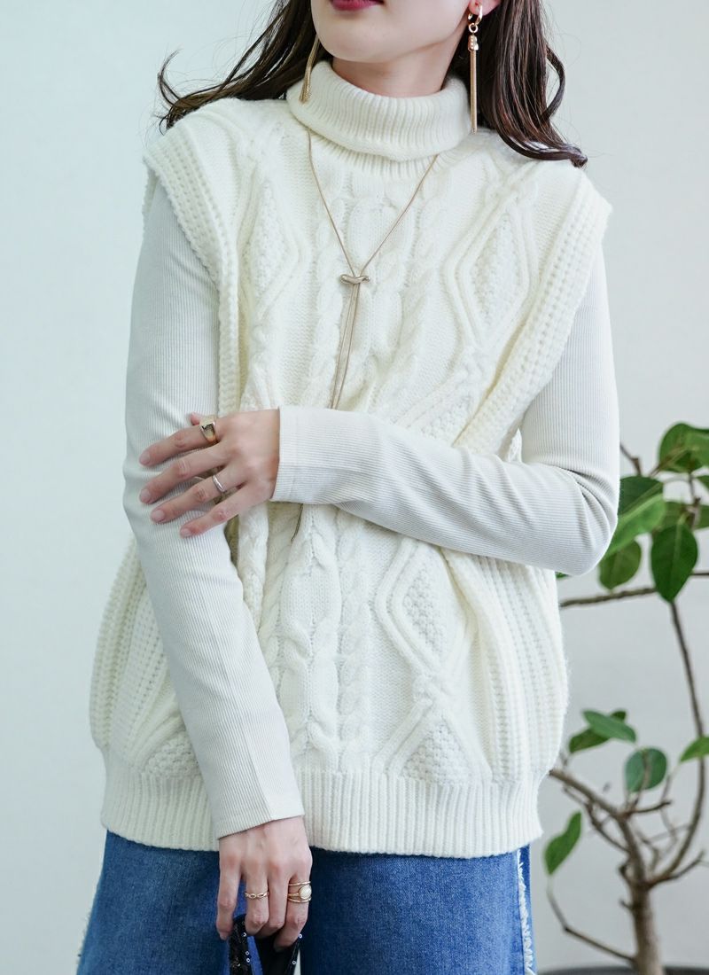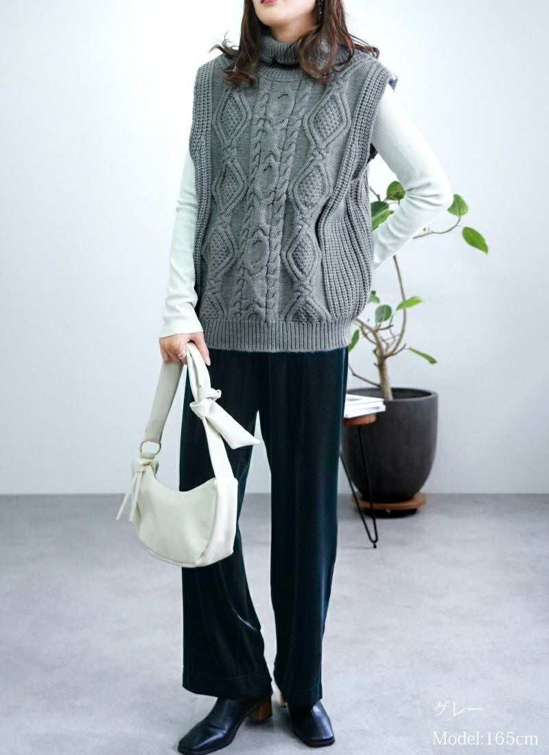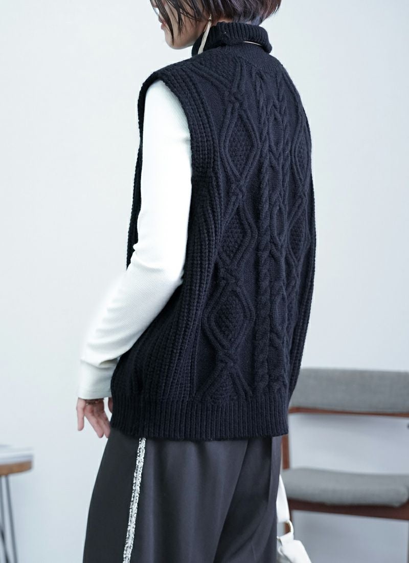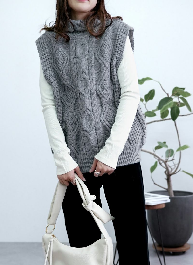 【新作おすすめ】 【30%OFF】ケーブル編みハイネックベスト