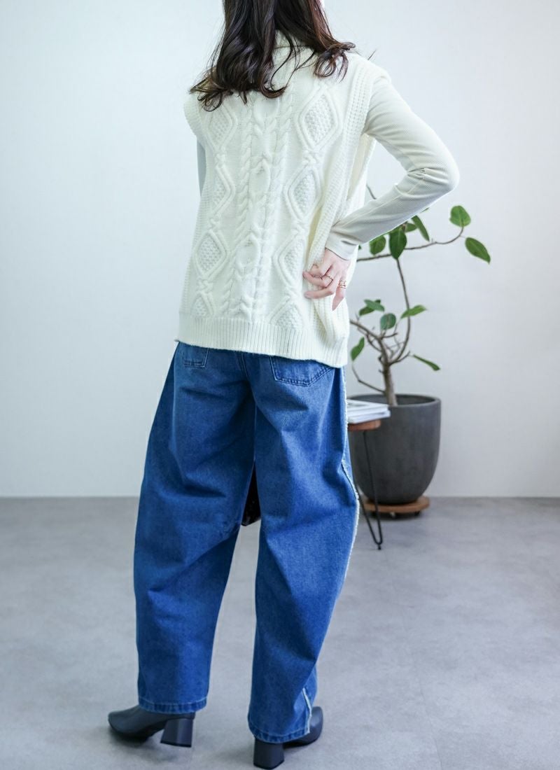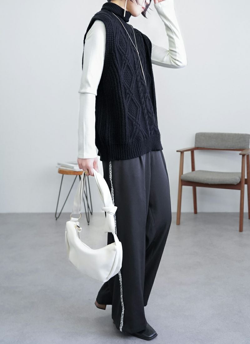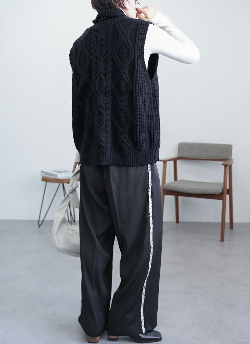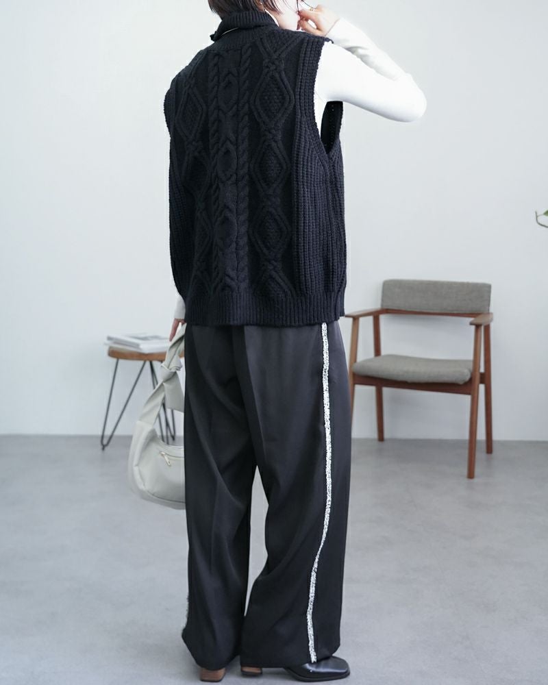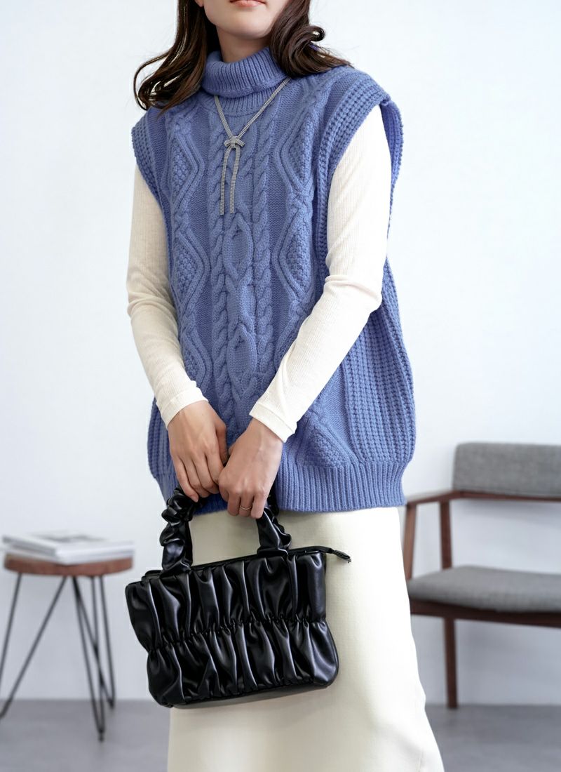 【新作おすすめ】 【30%OFF】ケーブル編みハイネックベスト