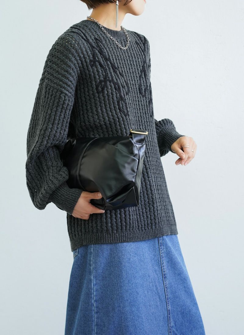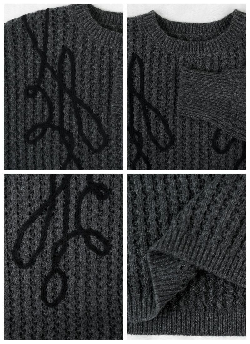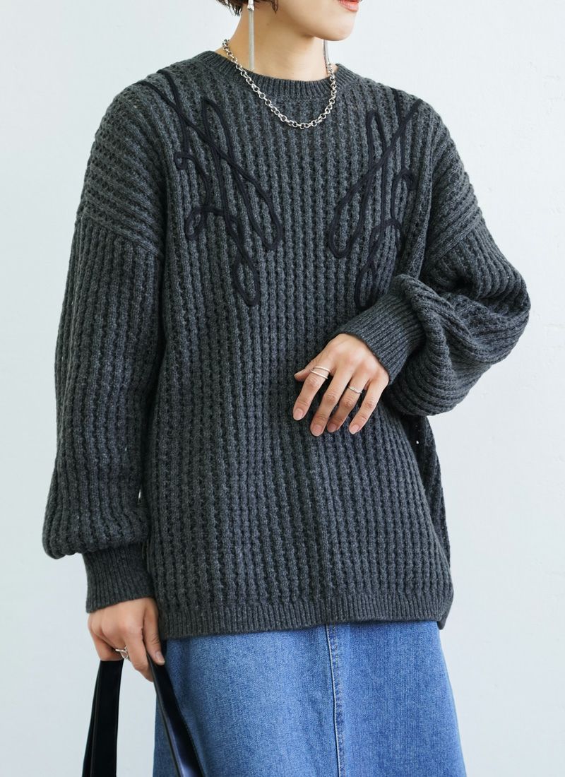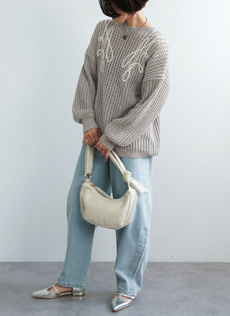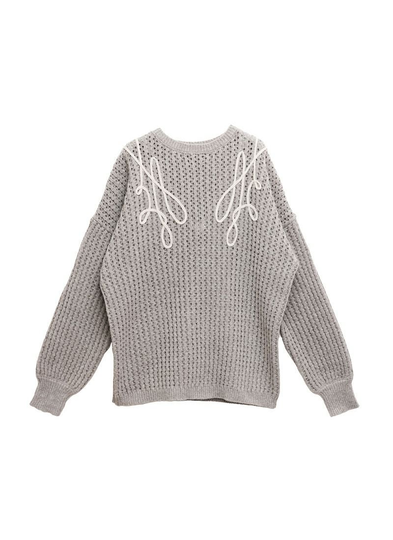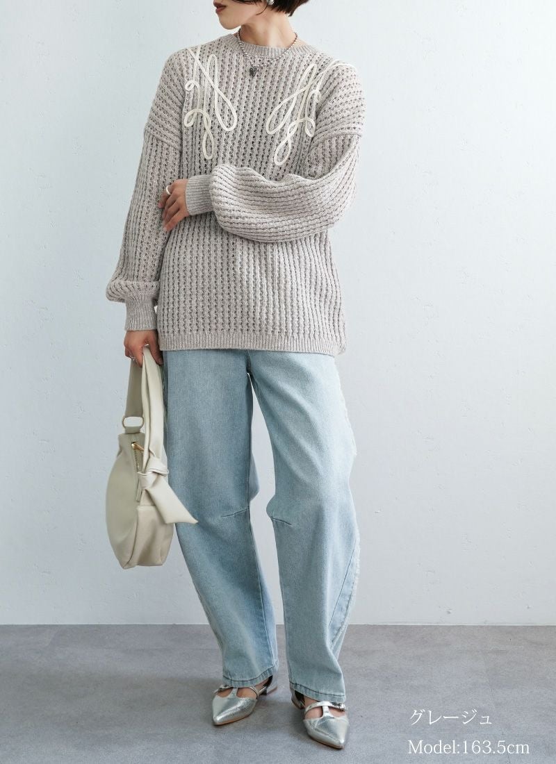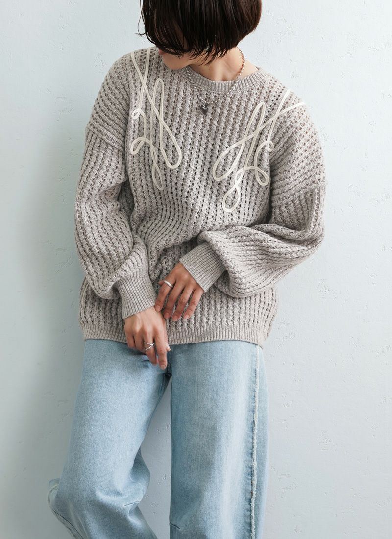 revoam【カジュアルに着ても女性らしい。秋冬に活躍する透かし編みニット】 【20%OFF】透かし編みテープ刺繍プルオーバー