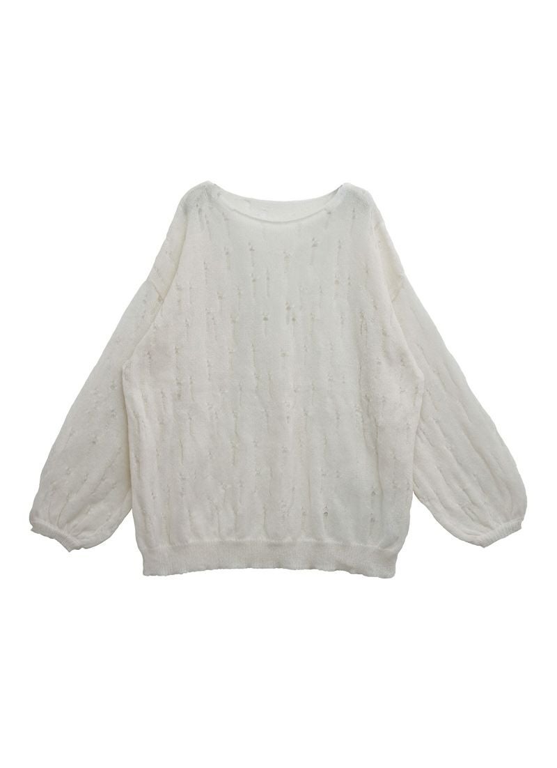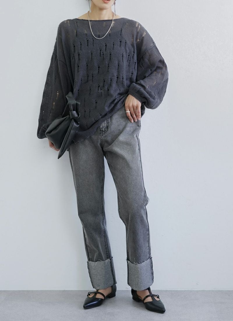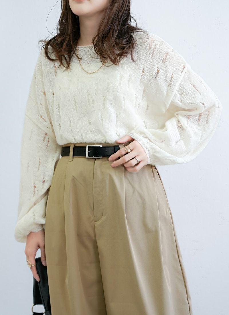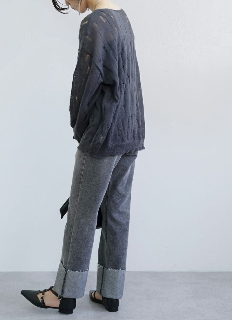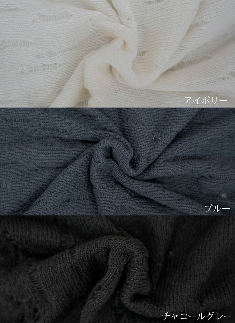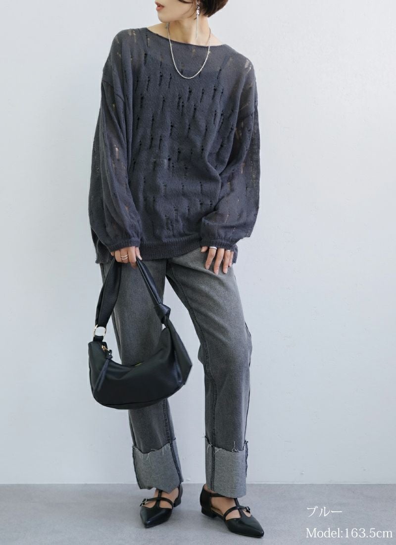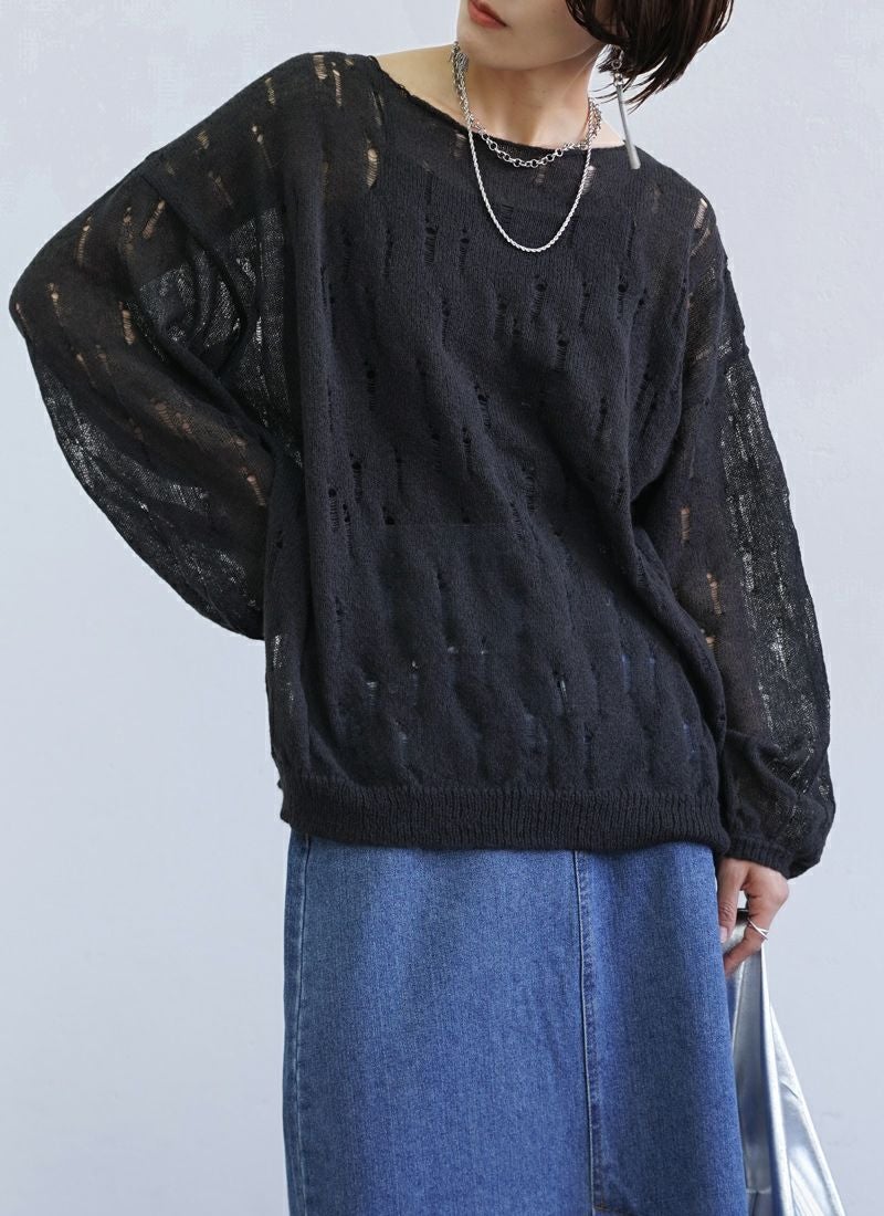 【新作おすすめ】 【30%OFF】透かし編みダメージシアープルオーバー