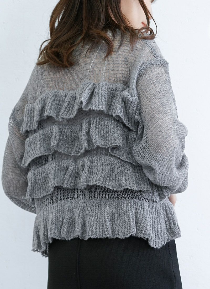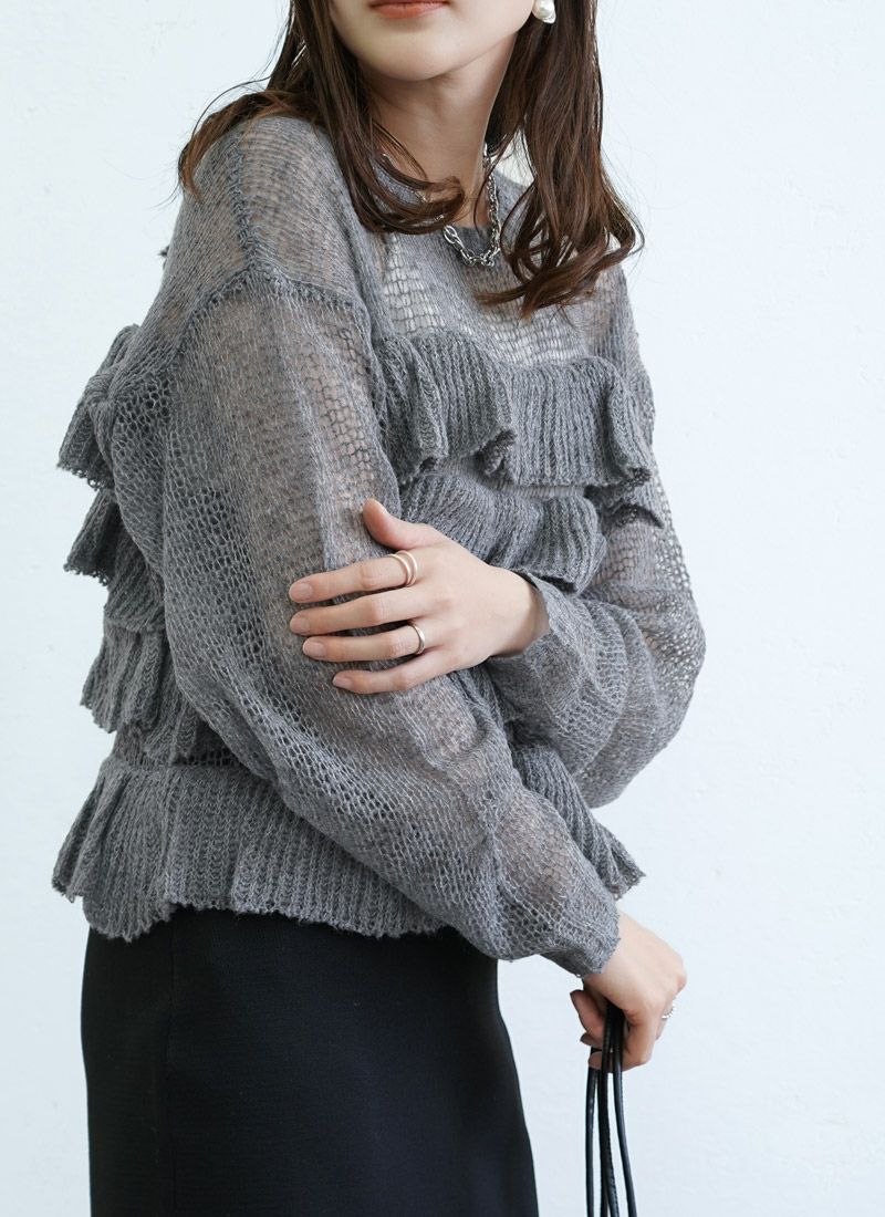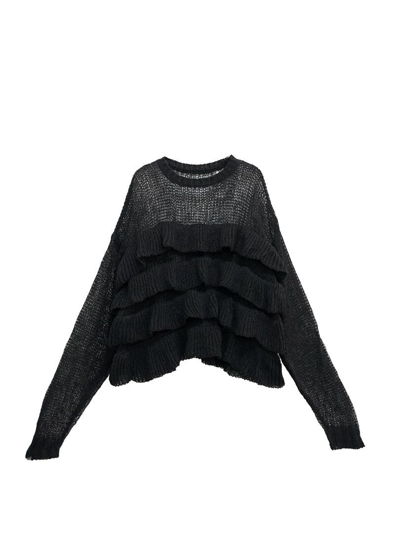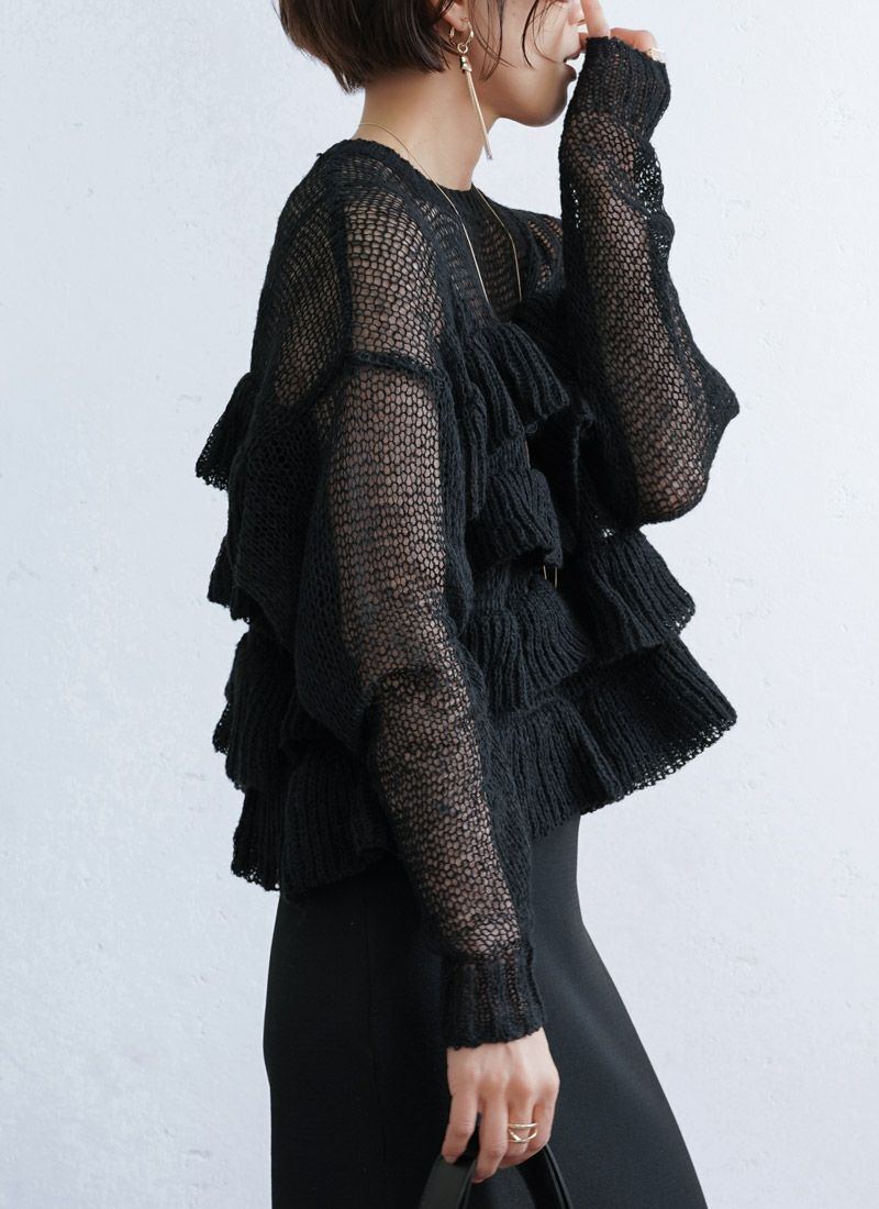 【新作おすすめ】 【30%OFF】透かし編みフリルデザインプルオーバー
