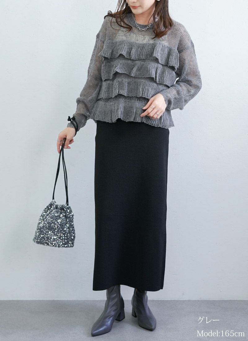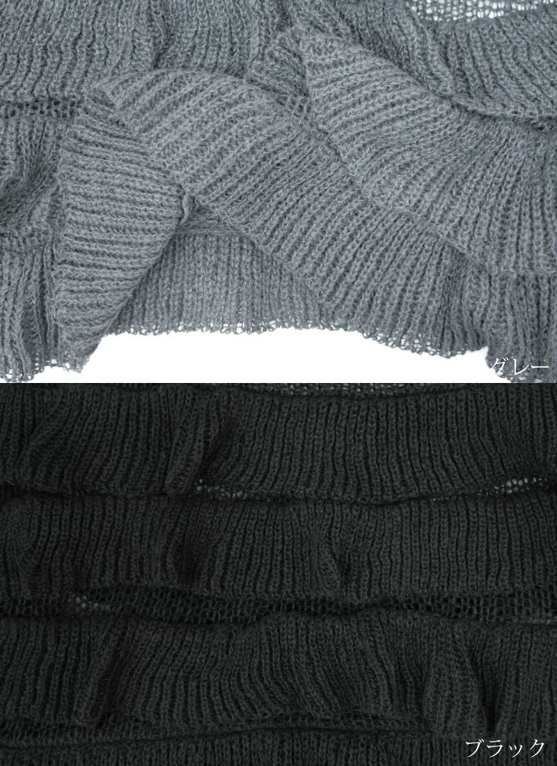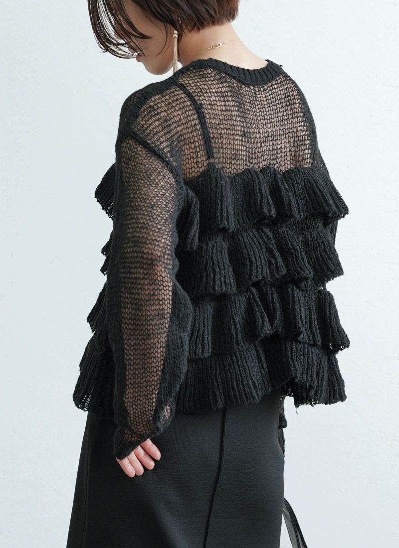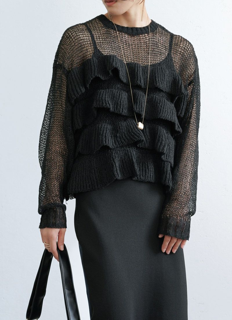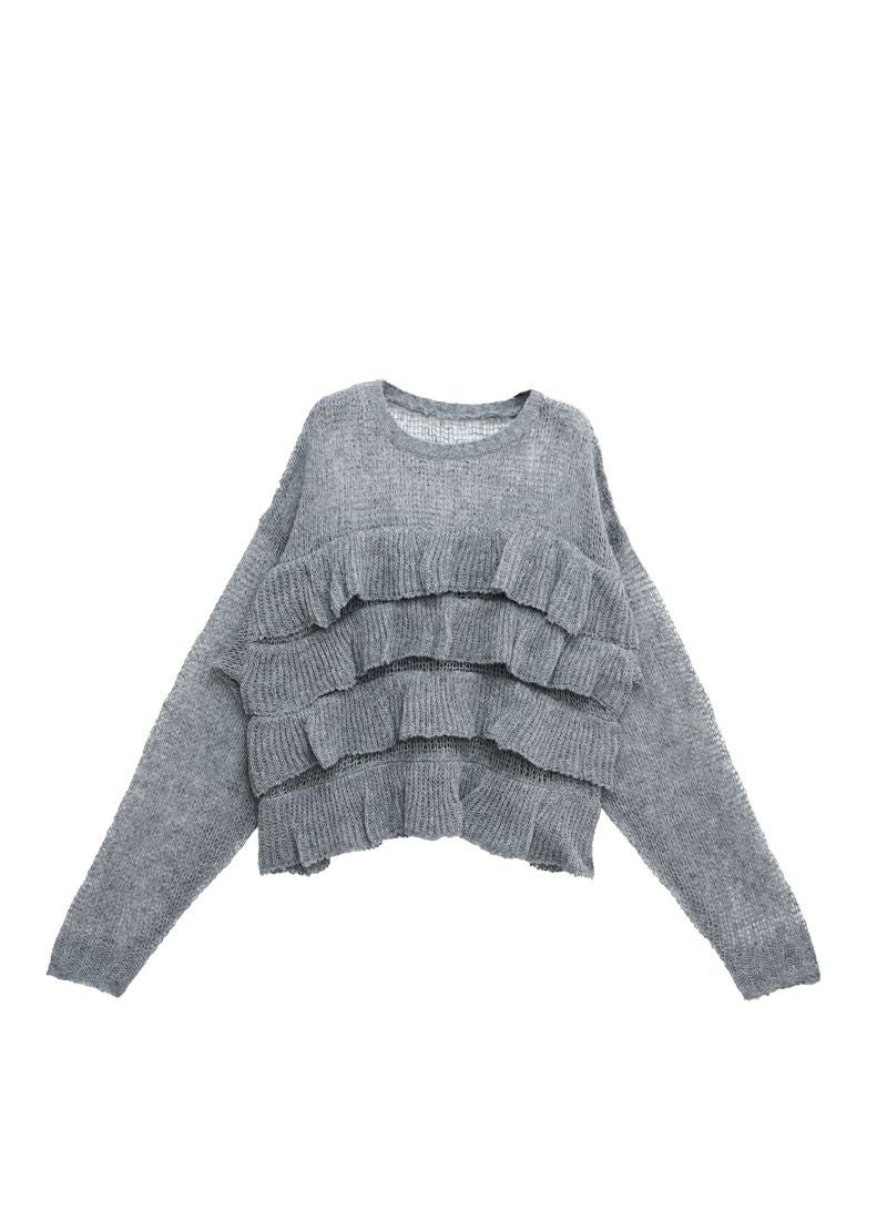 【新作おすすめ】 【30%OFF】透かし編みフリルデザインプルオーバー