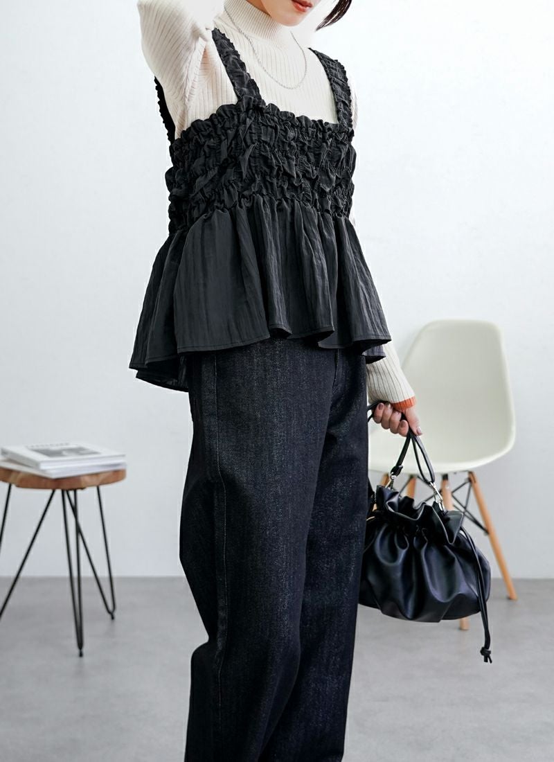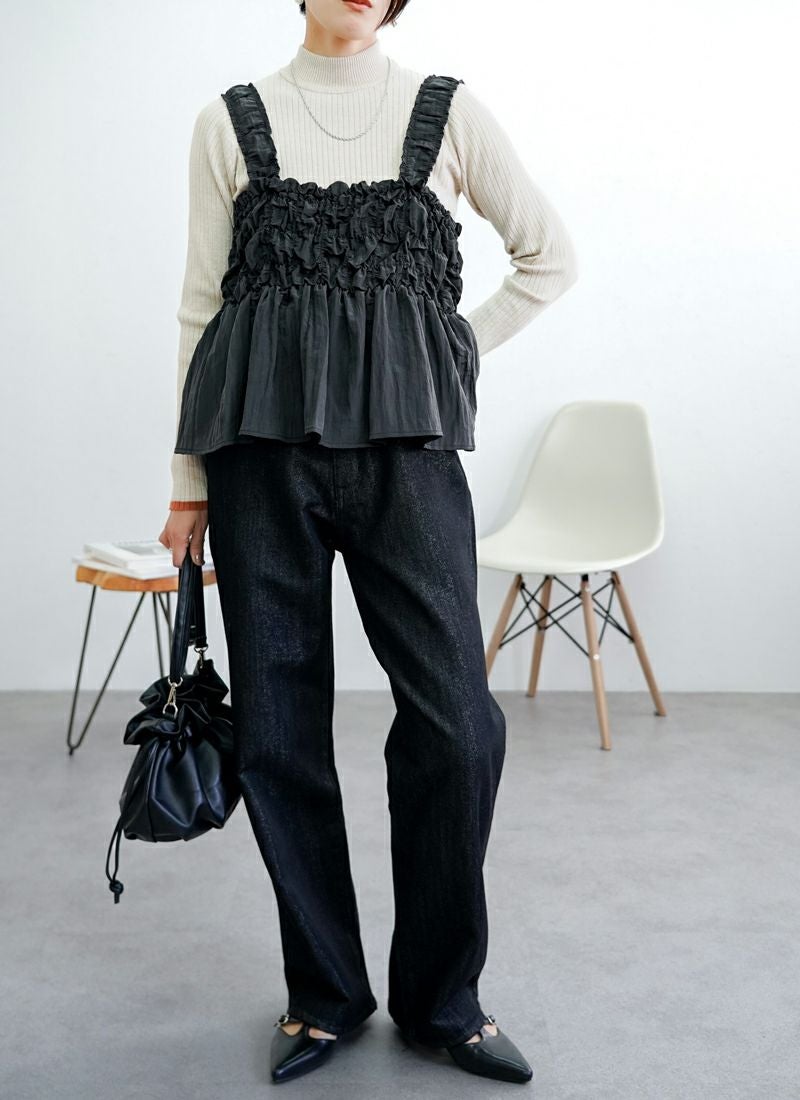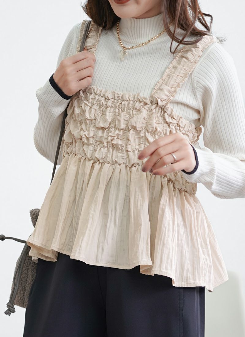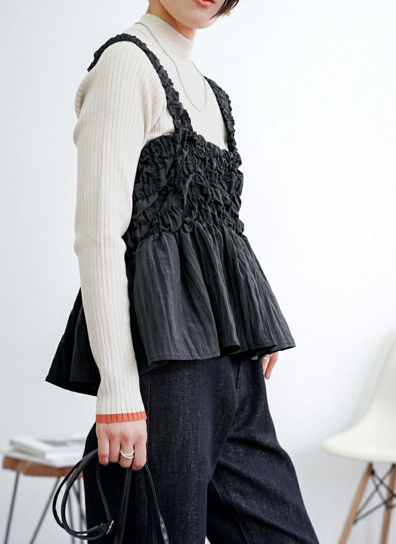 revoam【くしゅっとしたタフタ素材と、ふんわりフリルの甘さが絶妙。主役級キャミソール】 【20%OFF】ワッシャータフタリングキャミ