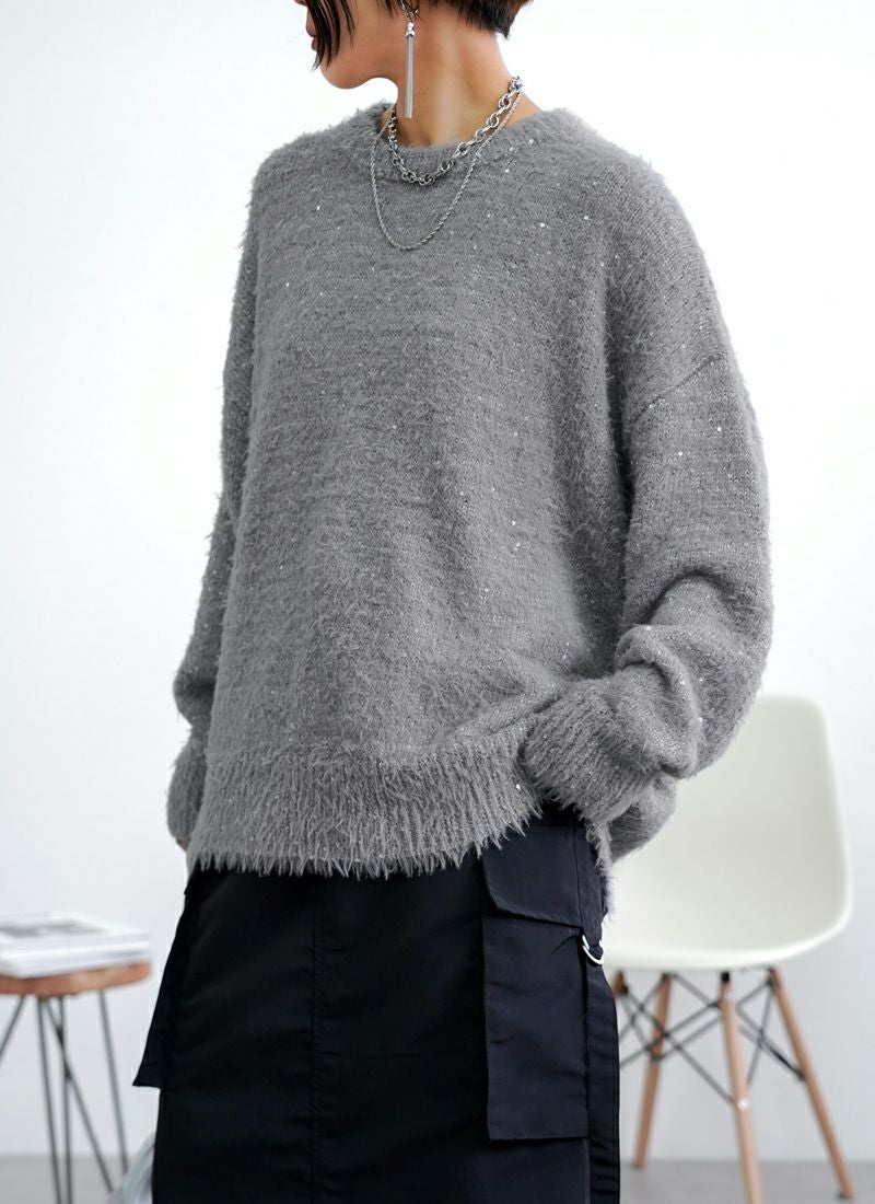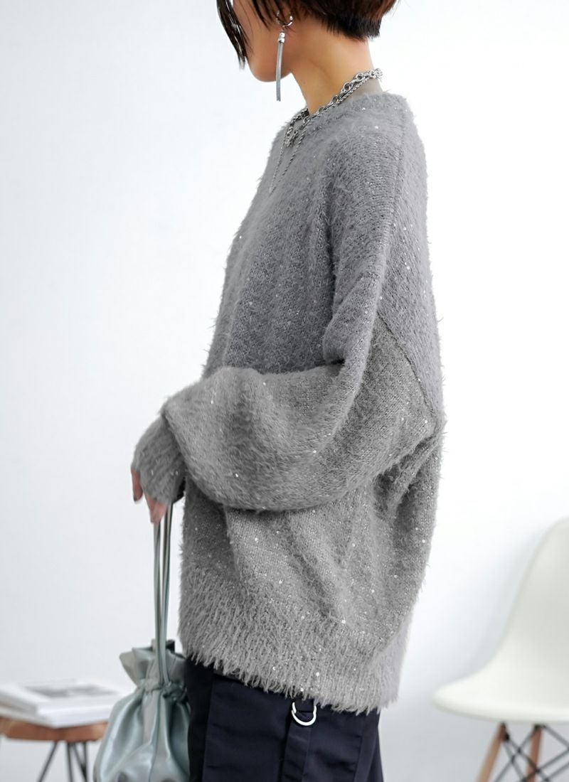 【新作おすすめ】 【30%OFF】スパンコールフェザーニットプルオーバー