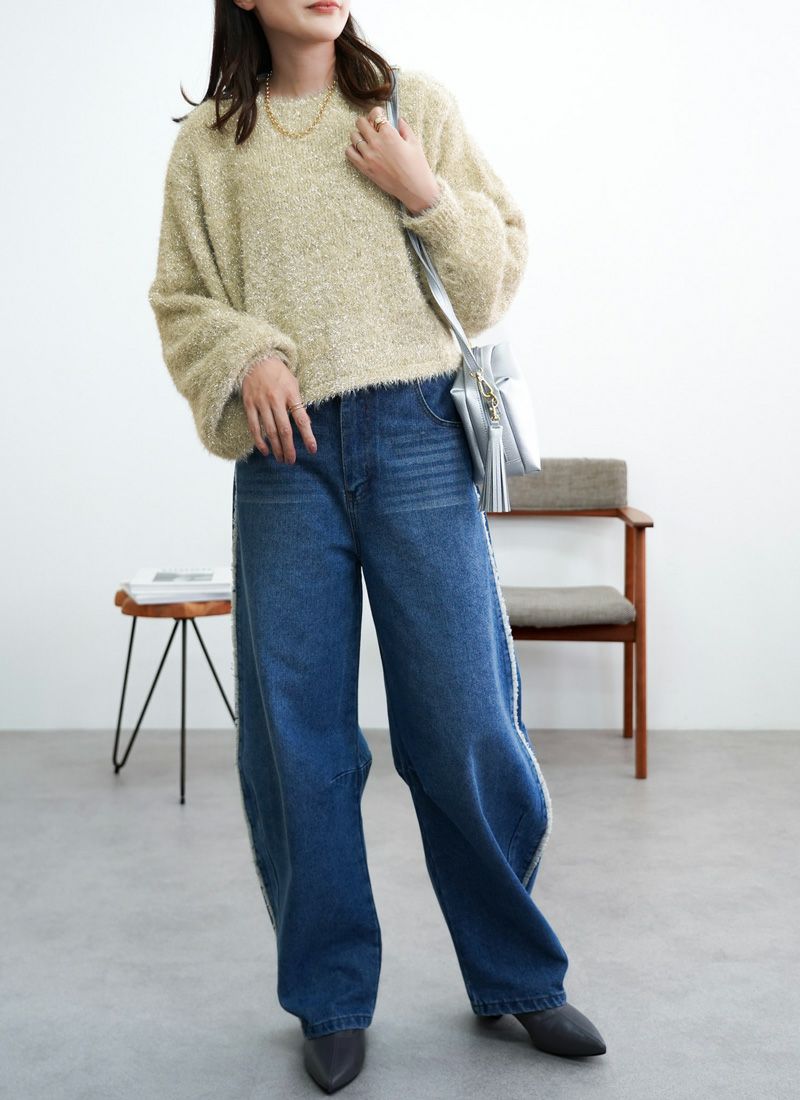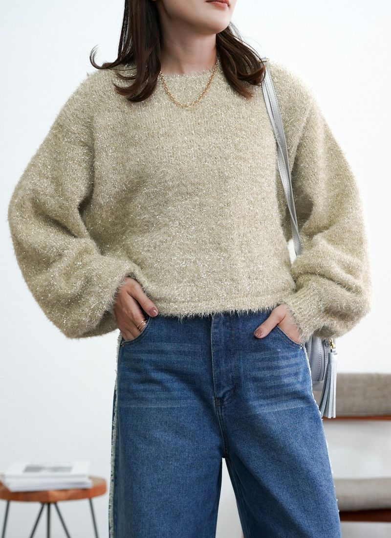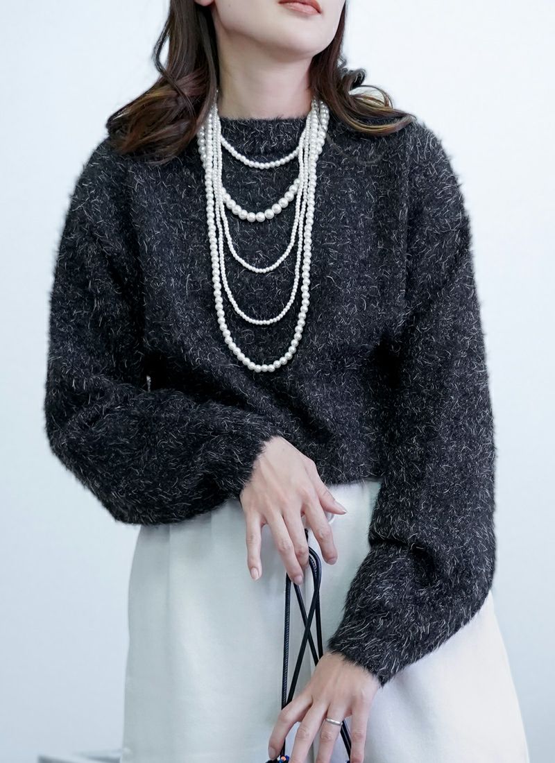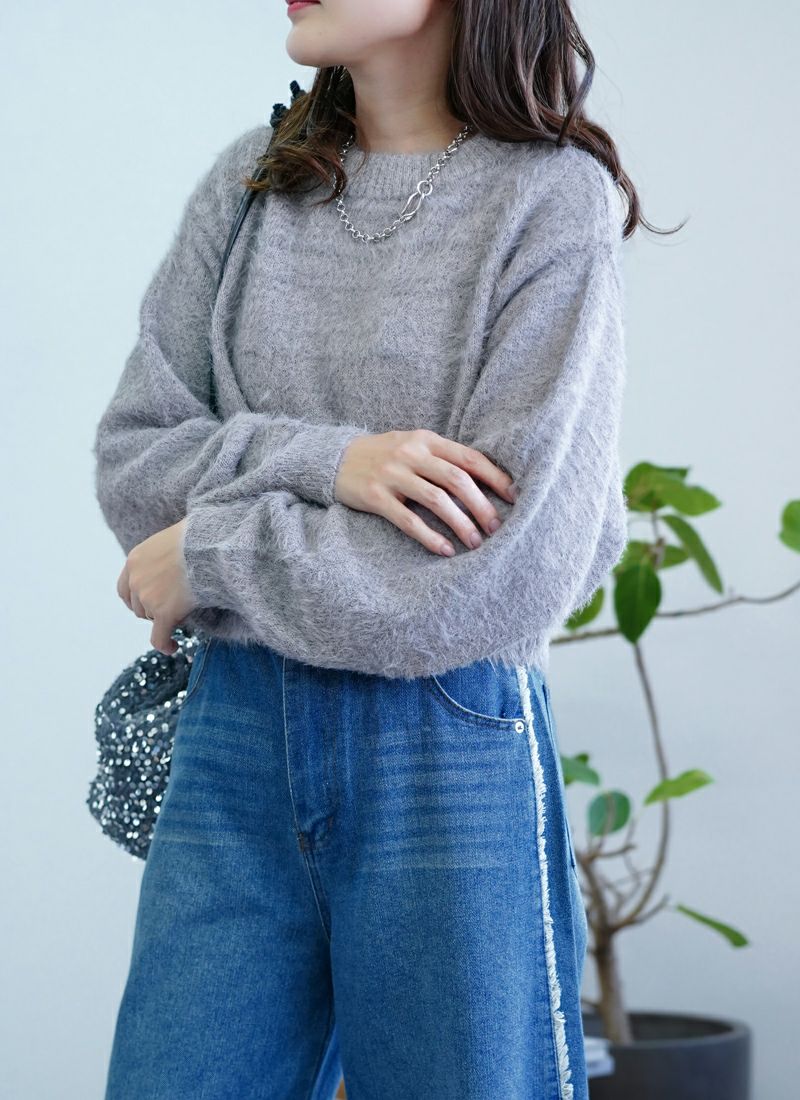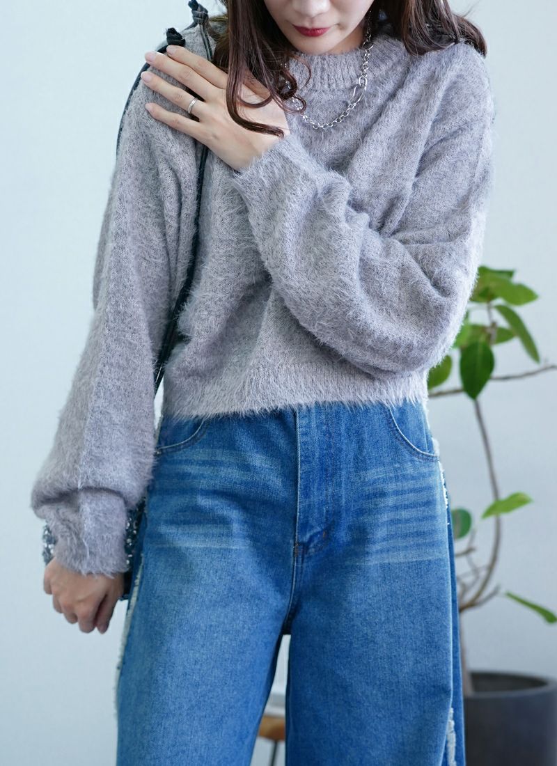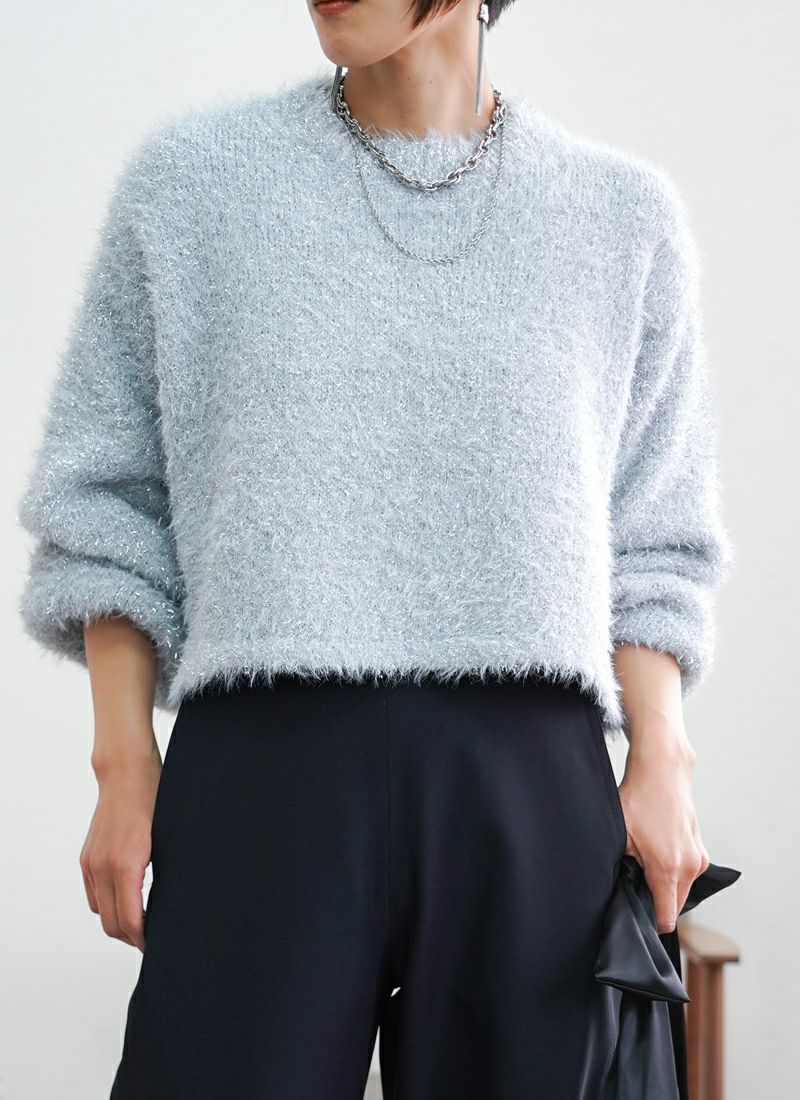 revoam【軽やかであったか。1枚で旬顔になれるクロップドプルオーバー】 【30%OFF】ラメモヘアクロップドプルオーバー