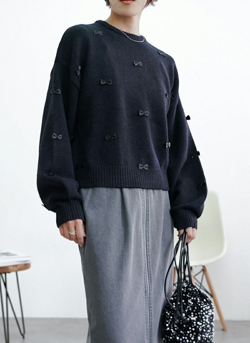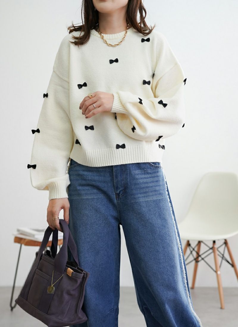 【新作おすすめ】 【30%OFF】アルパカタッチリボンニットプルオーバー