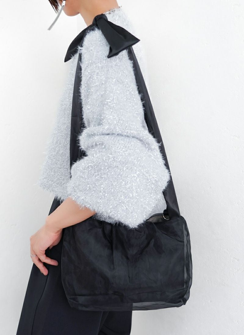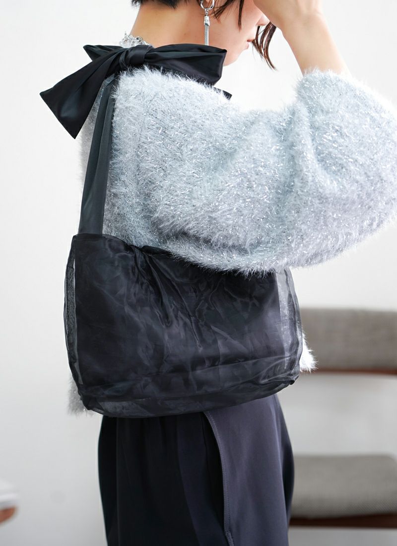 revoam【透け感のあるチュール素材と大きめリボンが、甘すぎず“ちょうどいい”可愛さ】 【20%OFF】リボンチュールトート