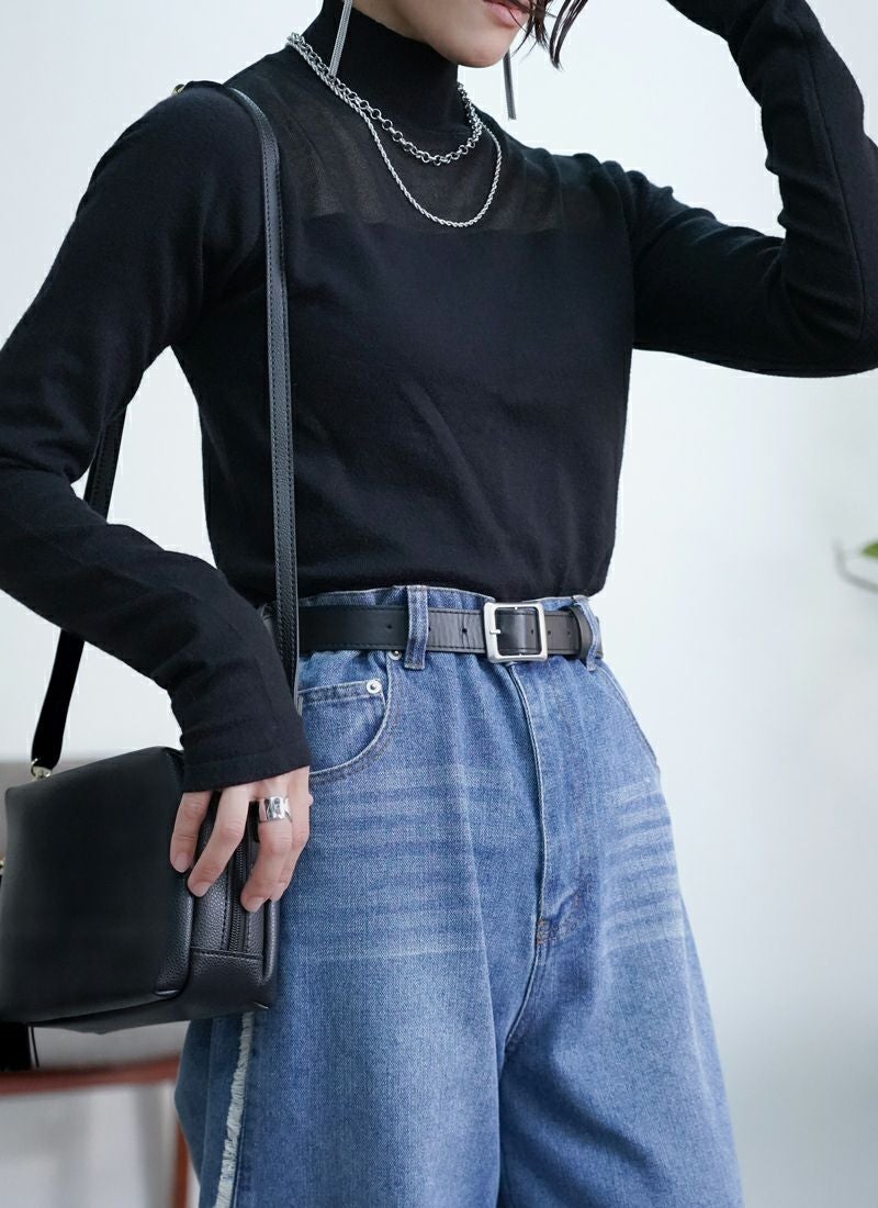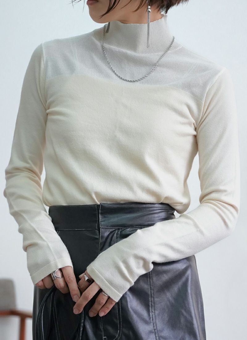 revoam【ふんわりとした優しいタッチと繊細な透け感が女性らしさを。インナーにも主役にもなる頼れるトップス】 【20%OFF】アンゴラタッチシアーハイネックプルオーバー