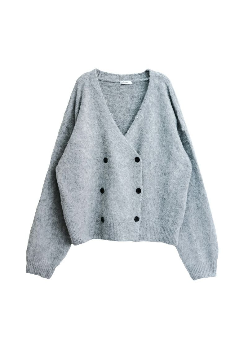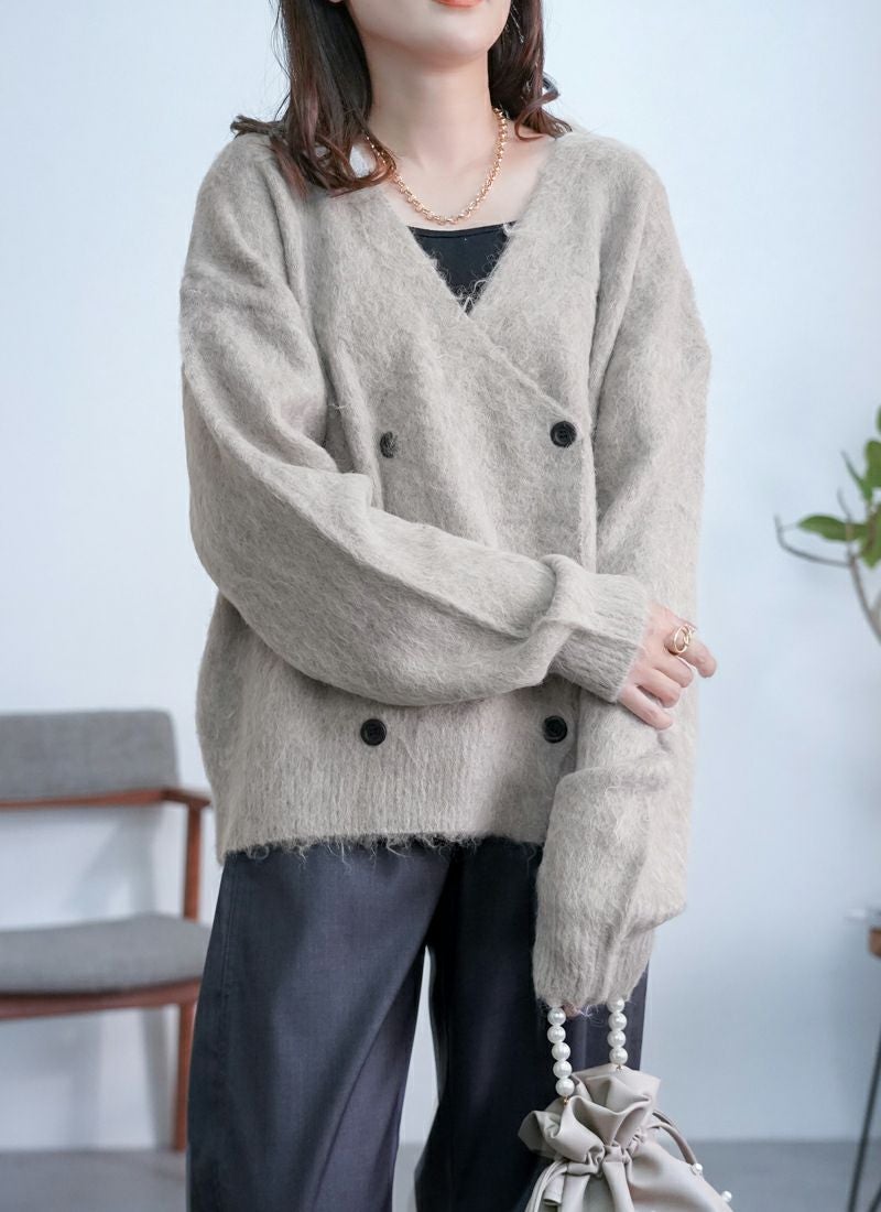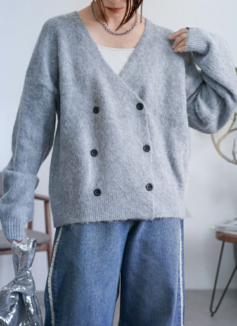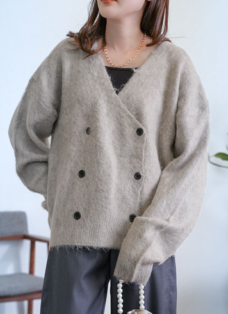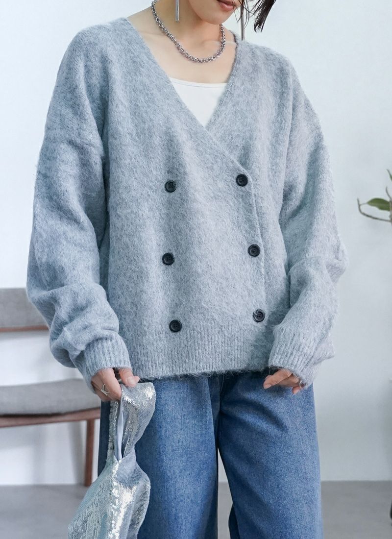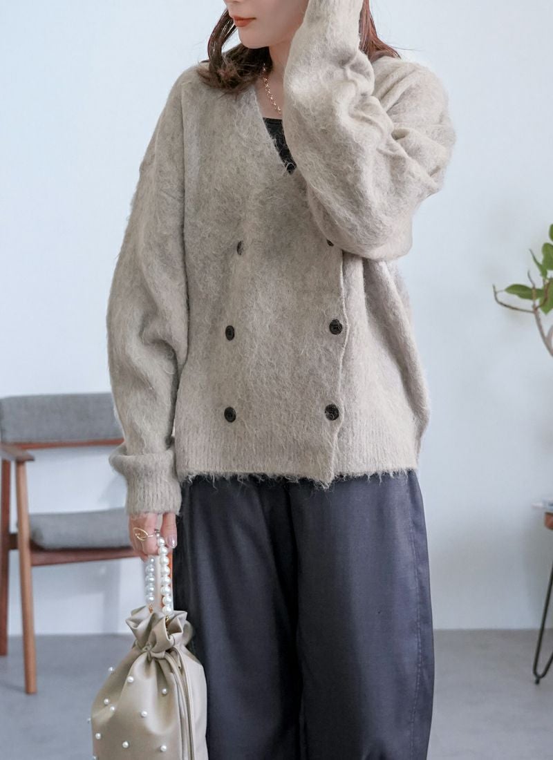 revoam【ダブルボタンでクラシカル。羽織るだけで上品スタイル】 【30%OFF】ダブルブレストシャギー ニット カーデ