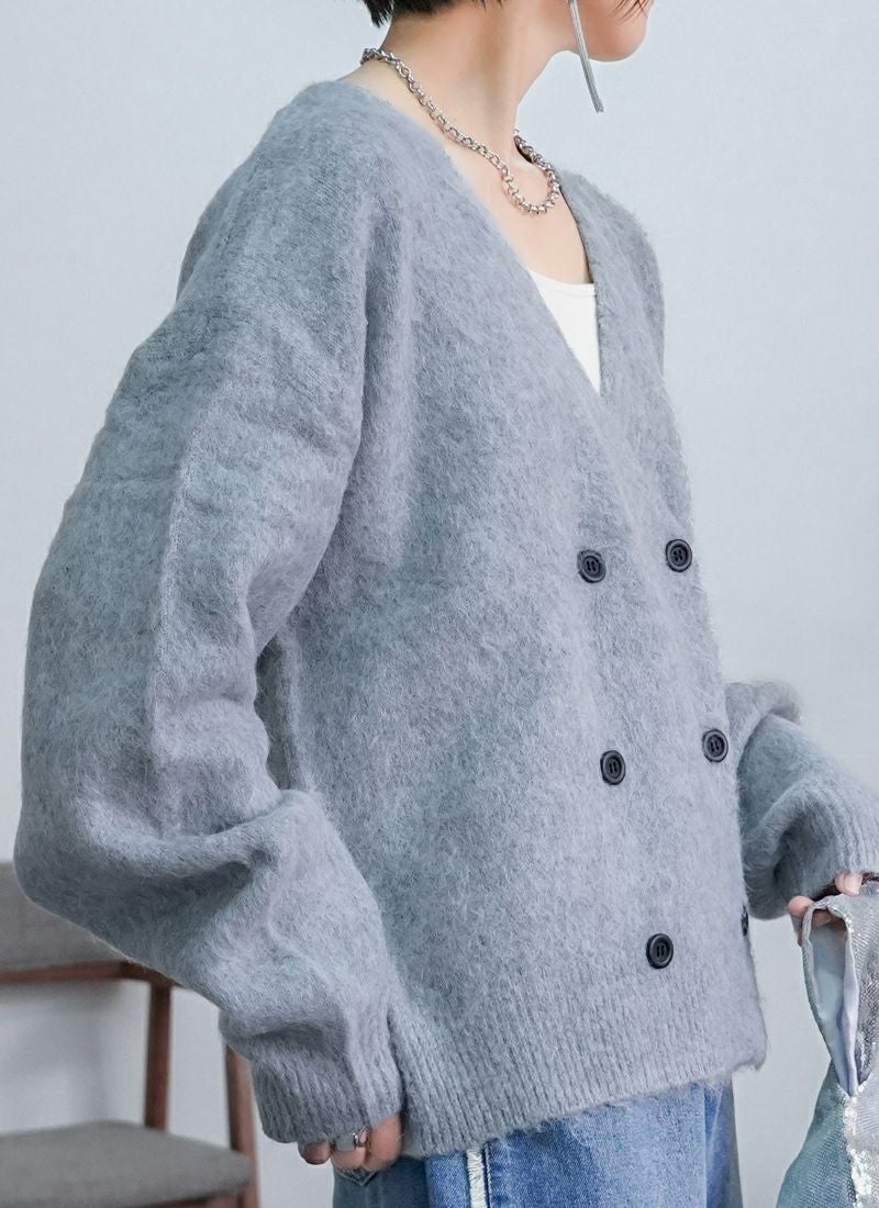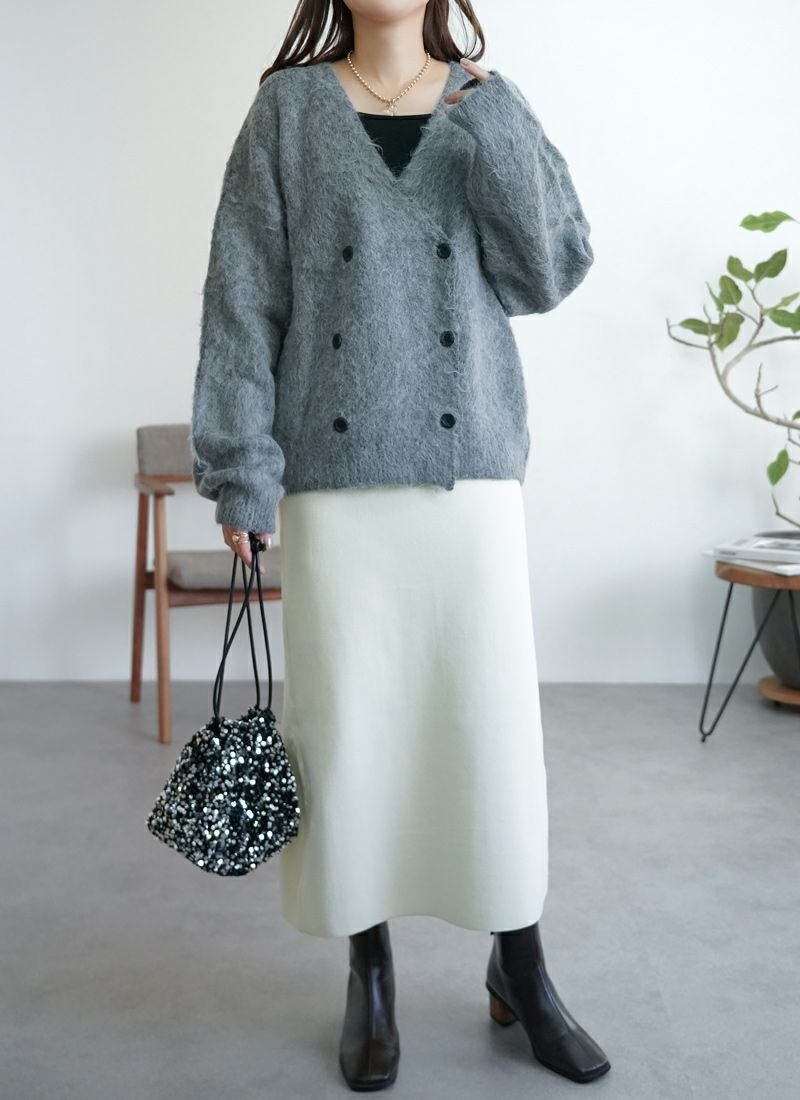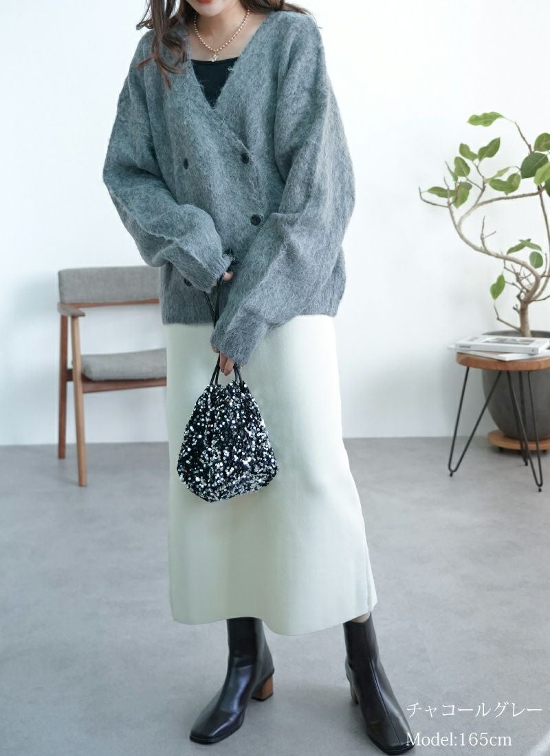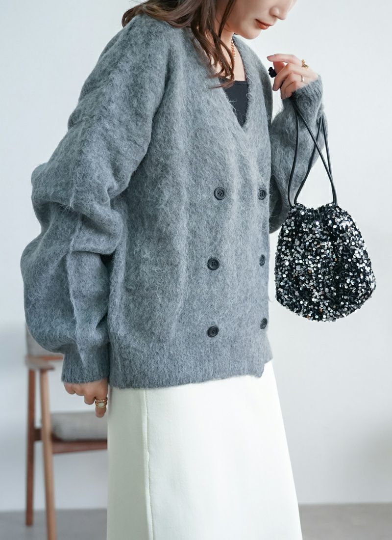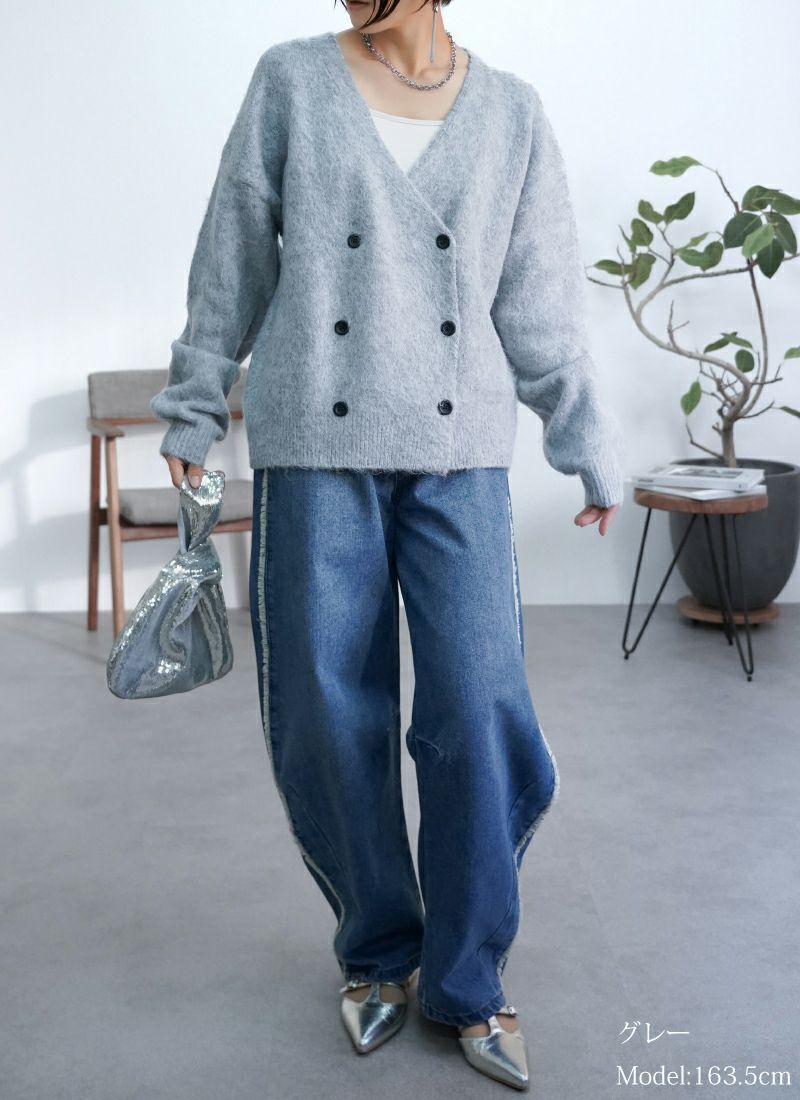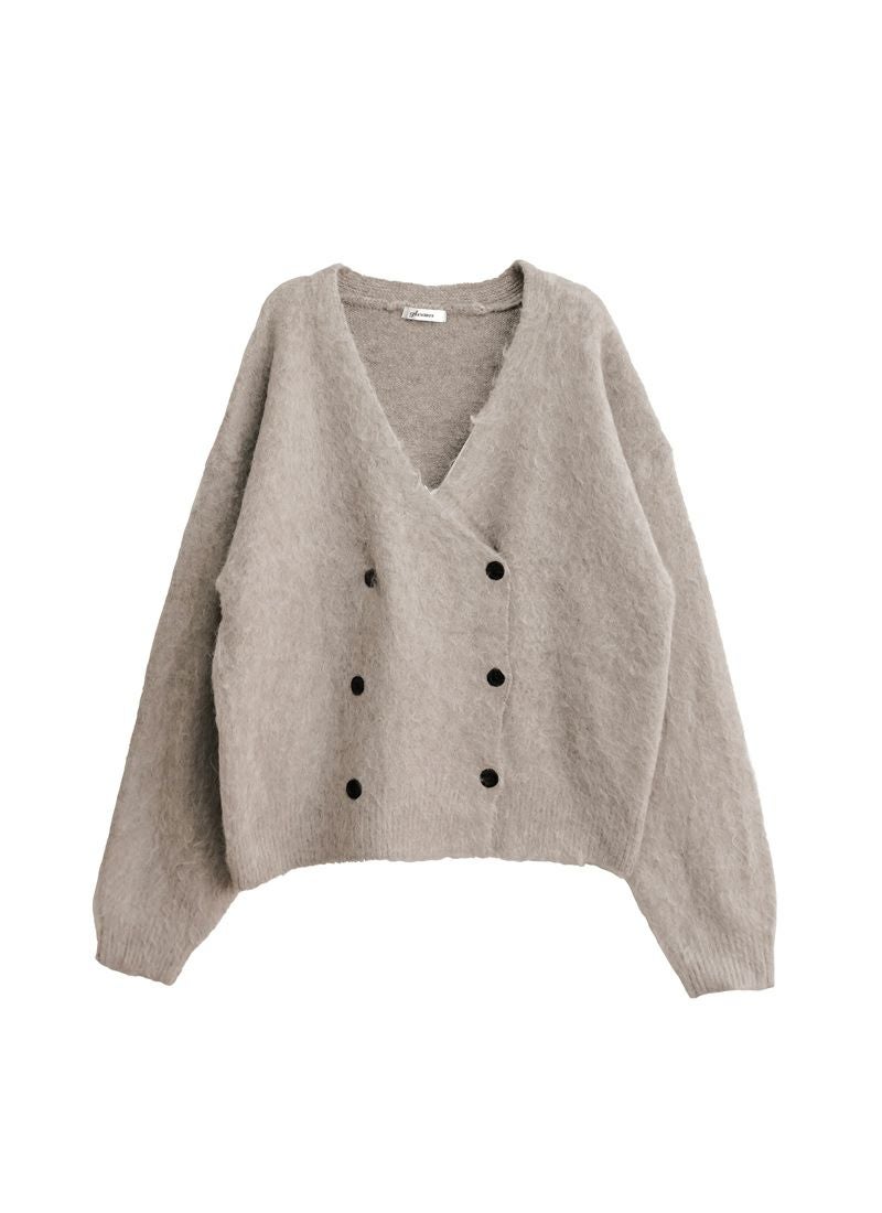 revoam【ダブルボタンでクラシカル。羽織るだけで上品スタイル】 【30%OFF】ダブルブレストシャギー ニット カーデ