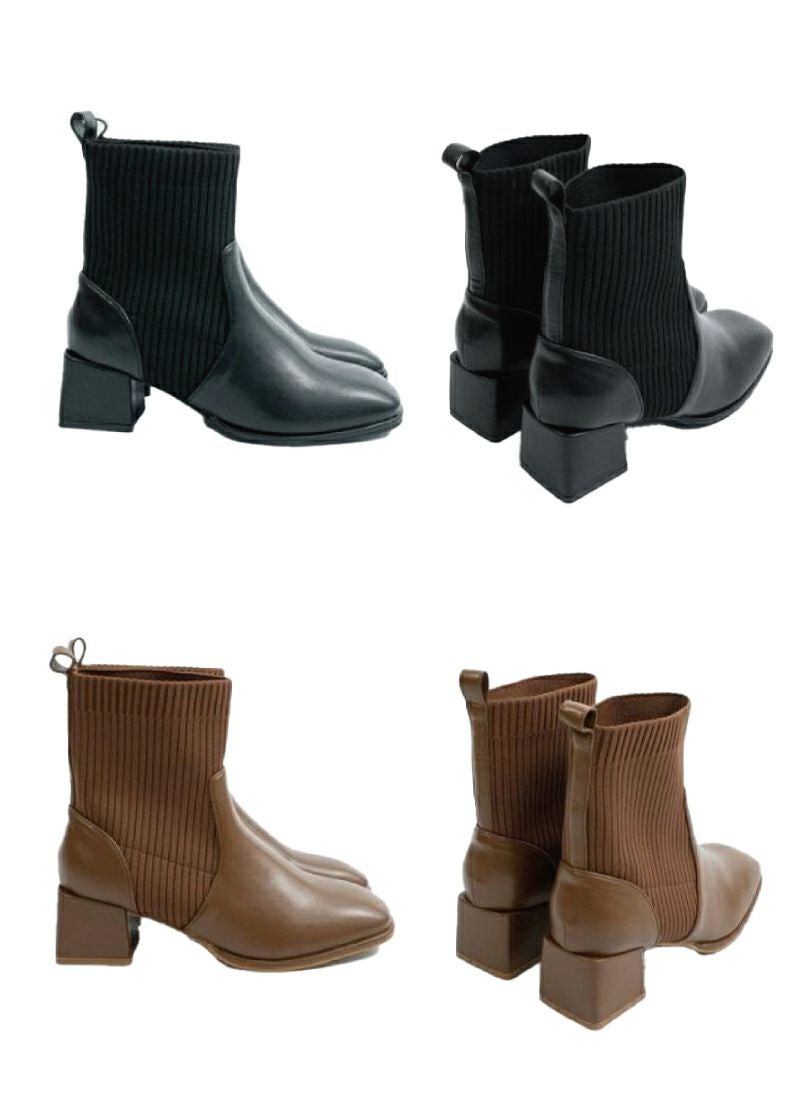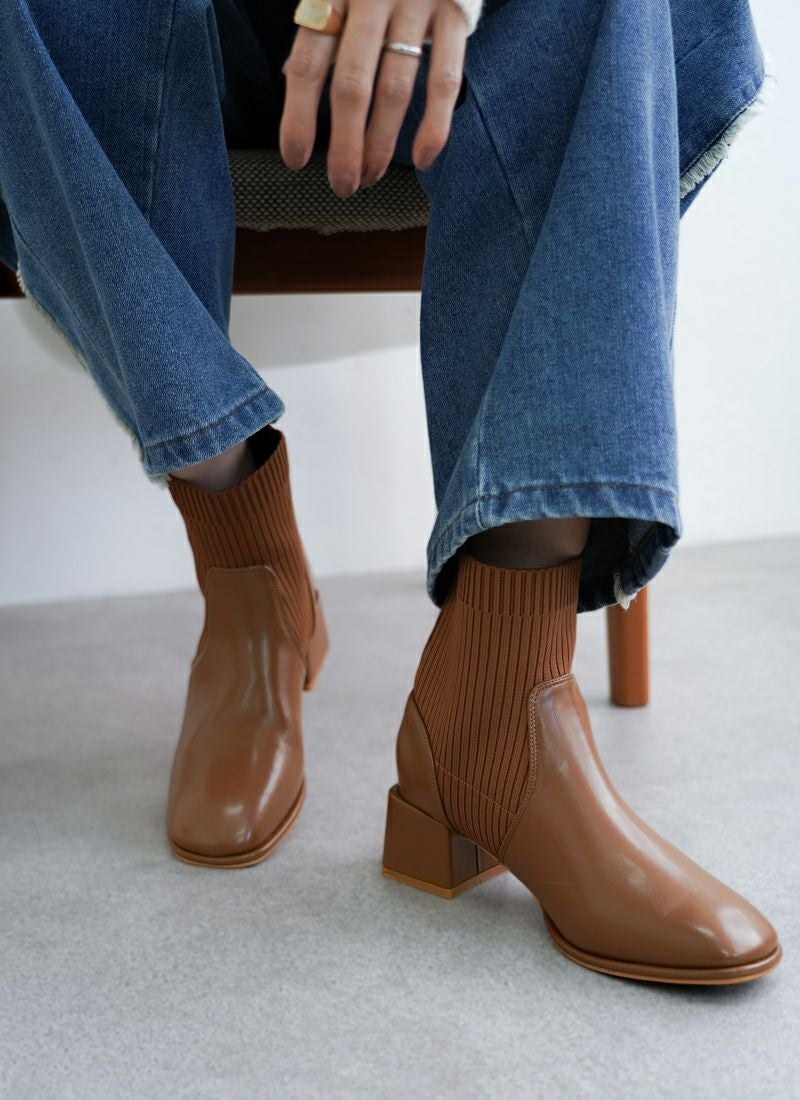 【新作おすすめ】 【20%OFF】ニットリブショートブーツ