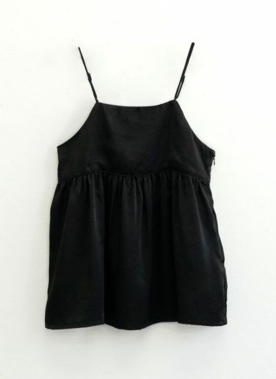 人気のキャミトップスシリーズにサテン素材が新登場* たっぷりギャザーがよったボリュームのシルエットで 女性らしい印象に仕上げてくれるトレンドのキャミTOPS!