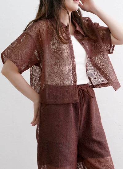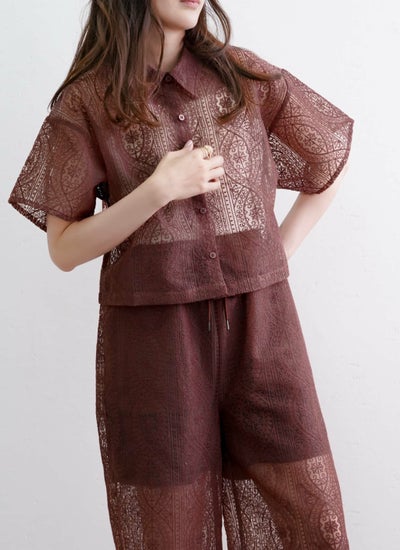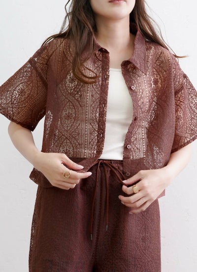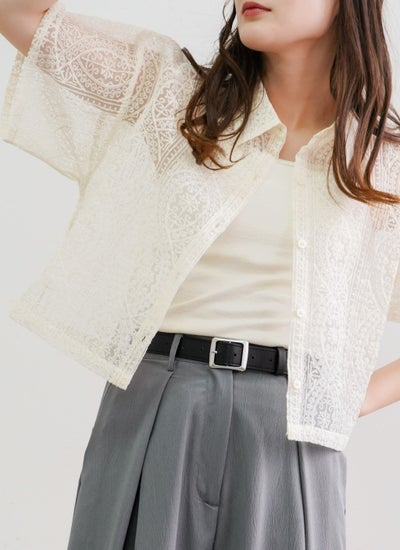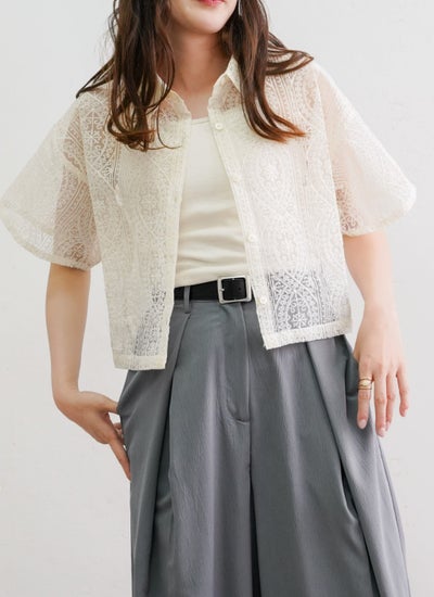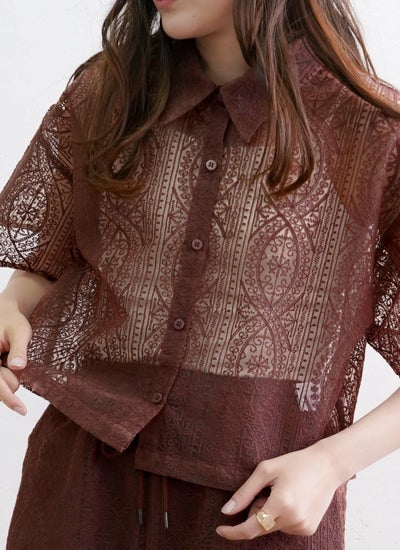 revoam【一枚で大人フェミニンを演出するレースシャツ】 レースハーフスリーブシャツ