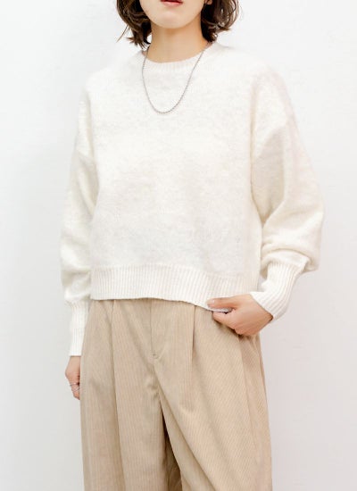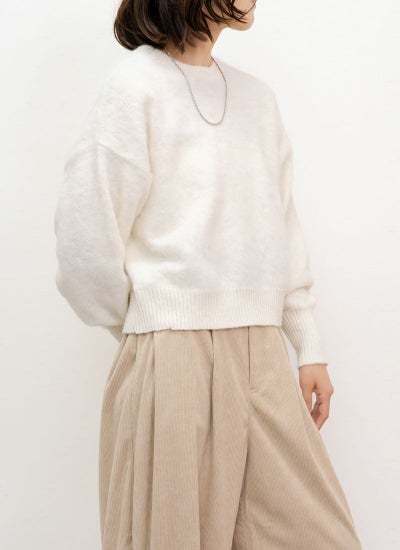 ふんわりと柔らかく、肌触りの良い素材感、やや短めの丈感はどんなボトムとも相性抜群です◎