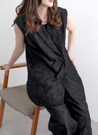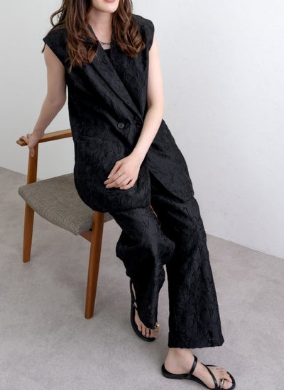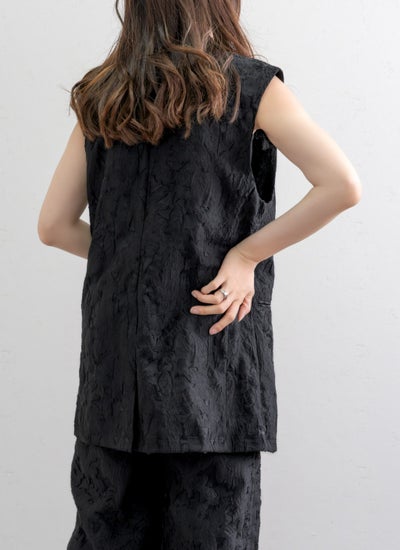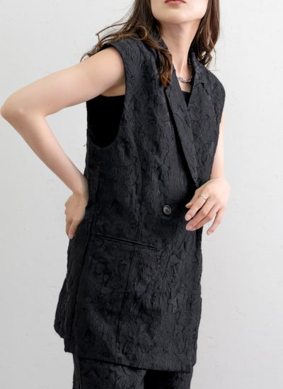繊細なジャガード生地が特徴的な、軽やかな印象のテーラードジレ。