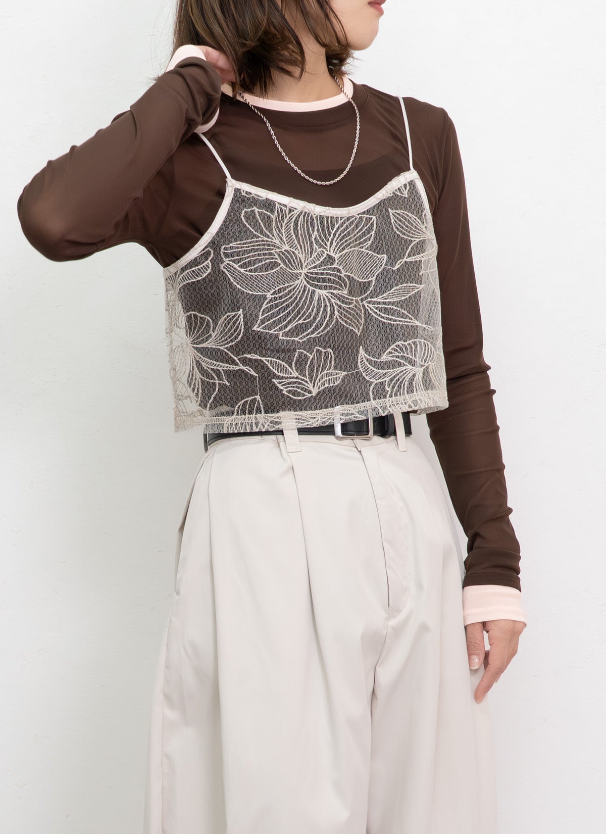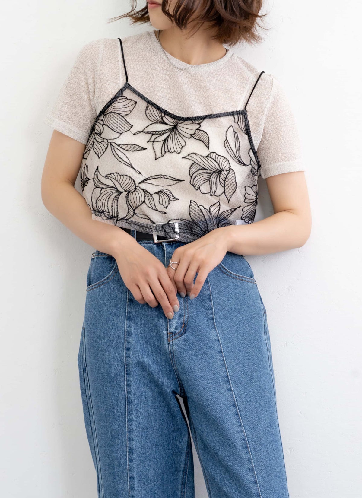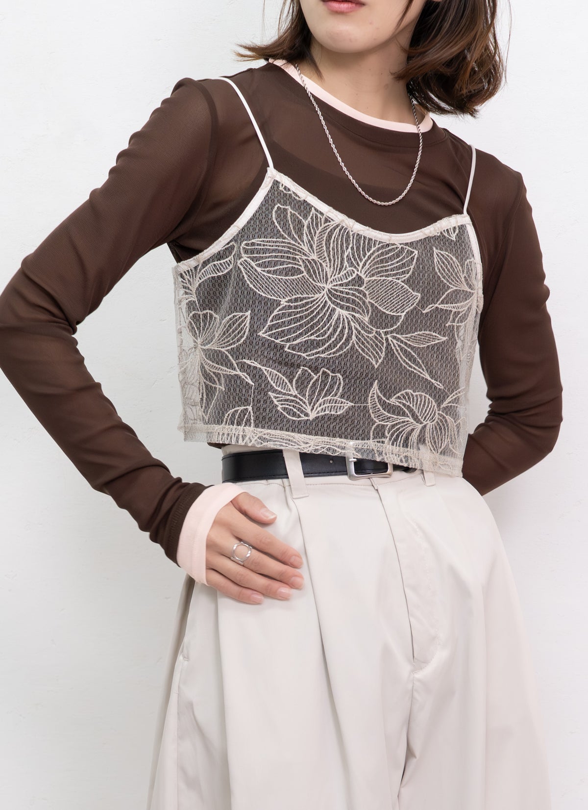 revoam【重ねるだけで、いつもの服が『一目惚れ』の一着に】 チュール花柄刺繍ビスチェ