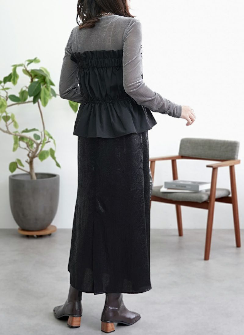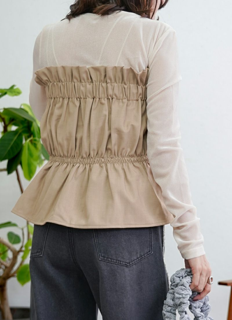 revoam【透け感×フリルで魅せる、大人のフェミニンレイヤード。Tシャツやワンピに重ねて、いつものコーデをブラッシュアップ】 【15%OFF】シアーチュールベスト