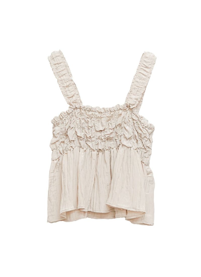 revoam【ギャザーの立体感でスタイルアップ。重ね着にも映えるベアトップ】 【20%OFF】リネンタッチギャザーベアトップ