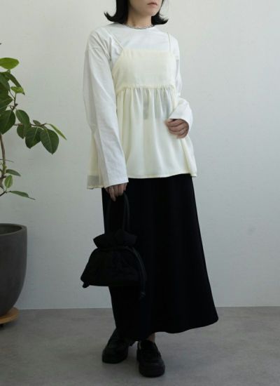 人気のキャミトップスシリーズにサテン素材が新登場* たっぷりギャザーがよったボリュームのシルエットで 女性らしい印象に仕上げてくれるトレンドのキャミTOPS!