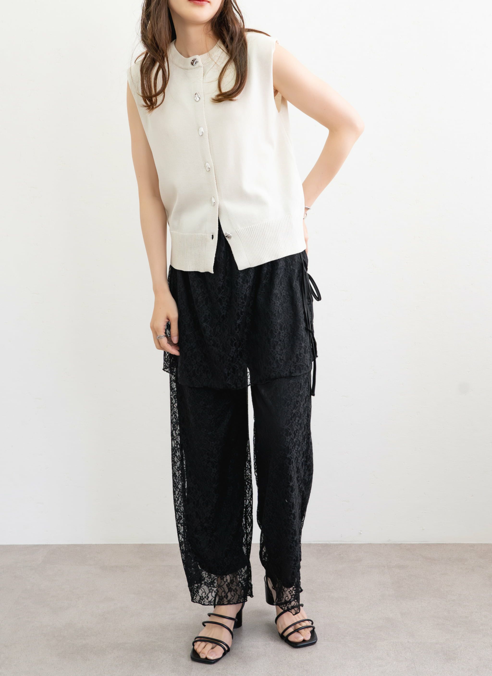 revoam【透かし編みが軽やかなニットカーデ】 透かし柄配色クルーネックカーデ