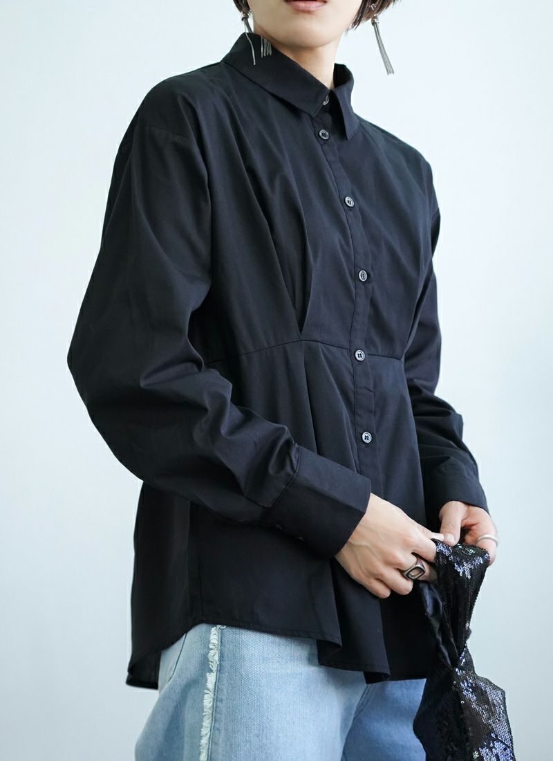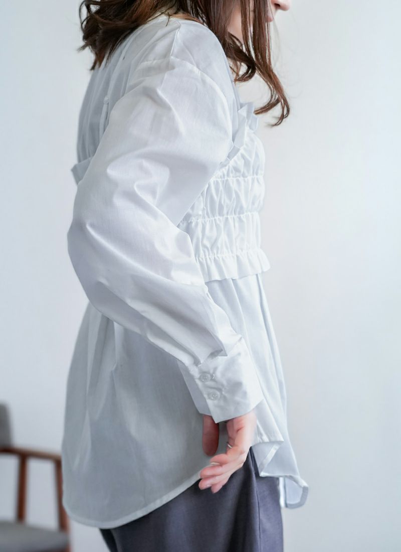 revoam【たっぷりとシャーリングが入った立体的なデザインのシャツ】 【10%OFF】ブロードシャーリングブラウス