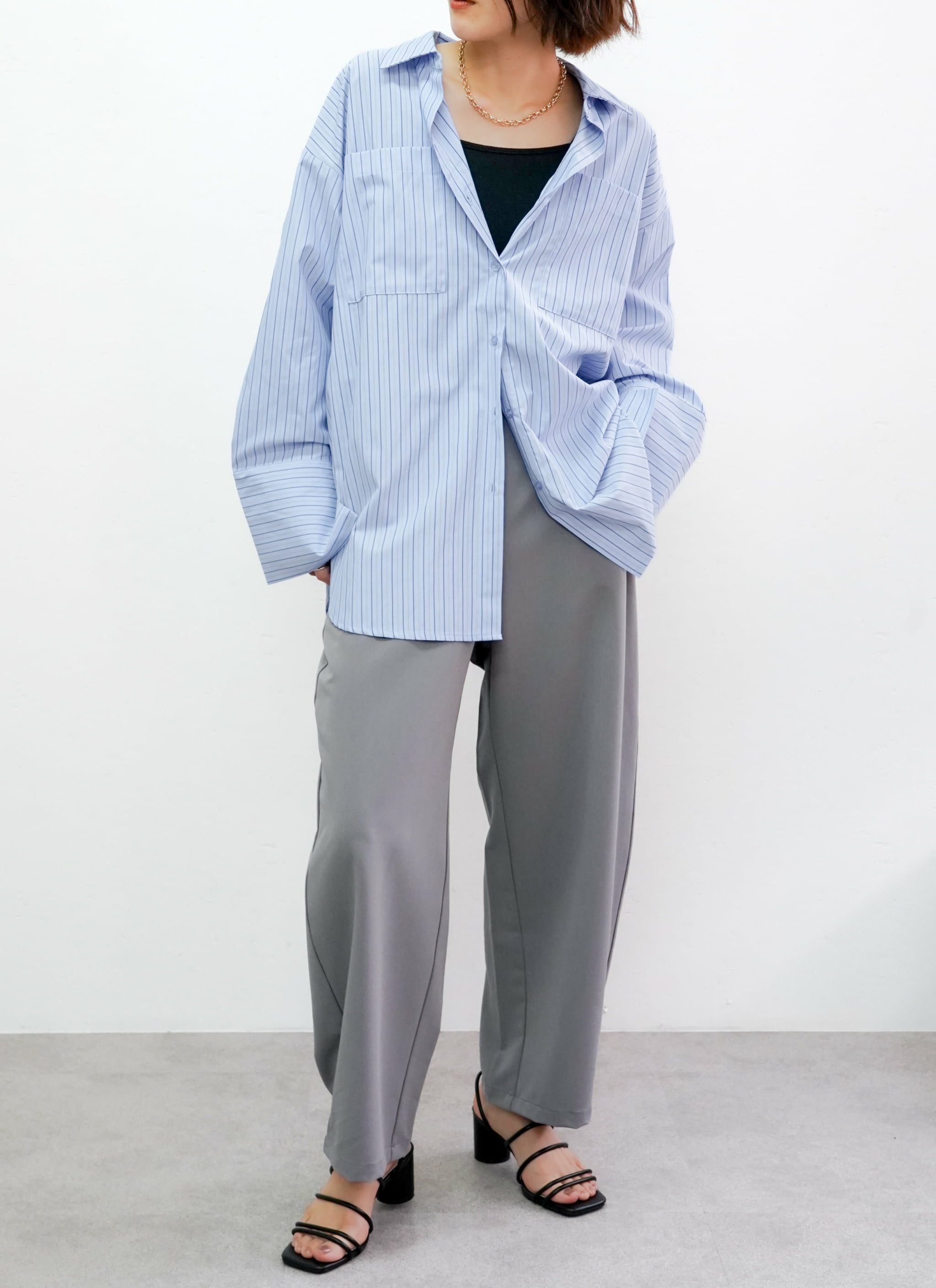 revoam【一枚でも羽織としても活躍する万能アイテム】 【10%OFF】ストライプビッグカフスシャツ