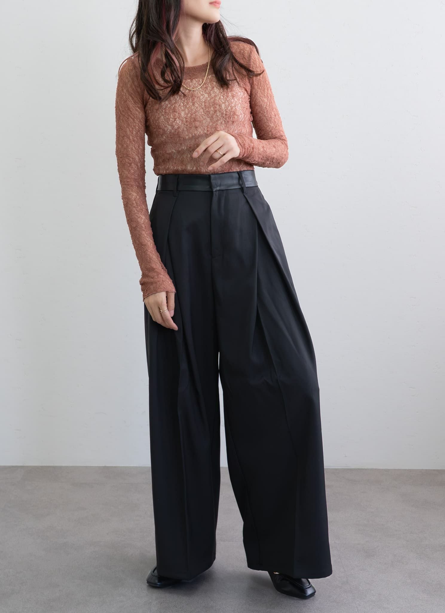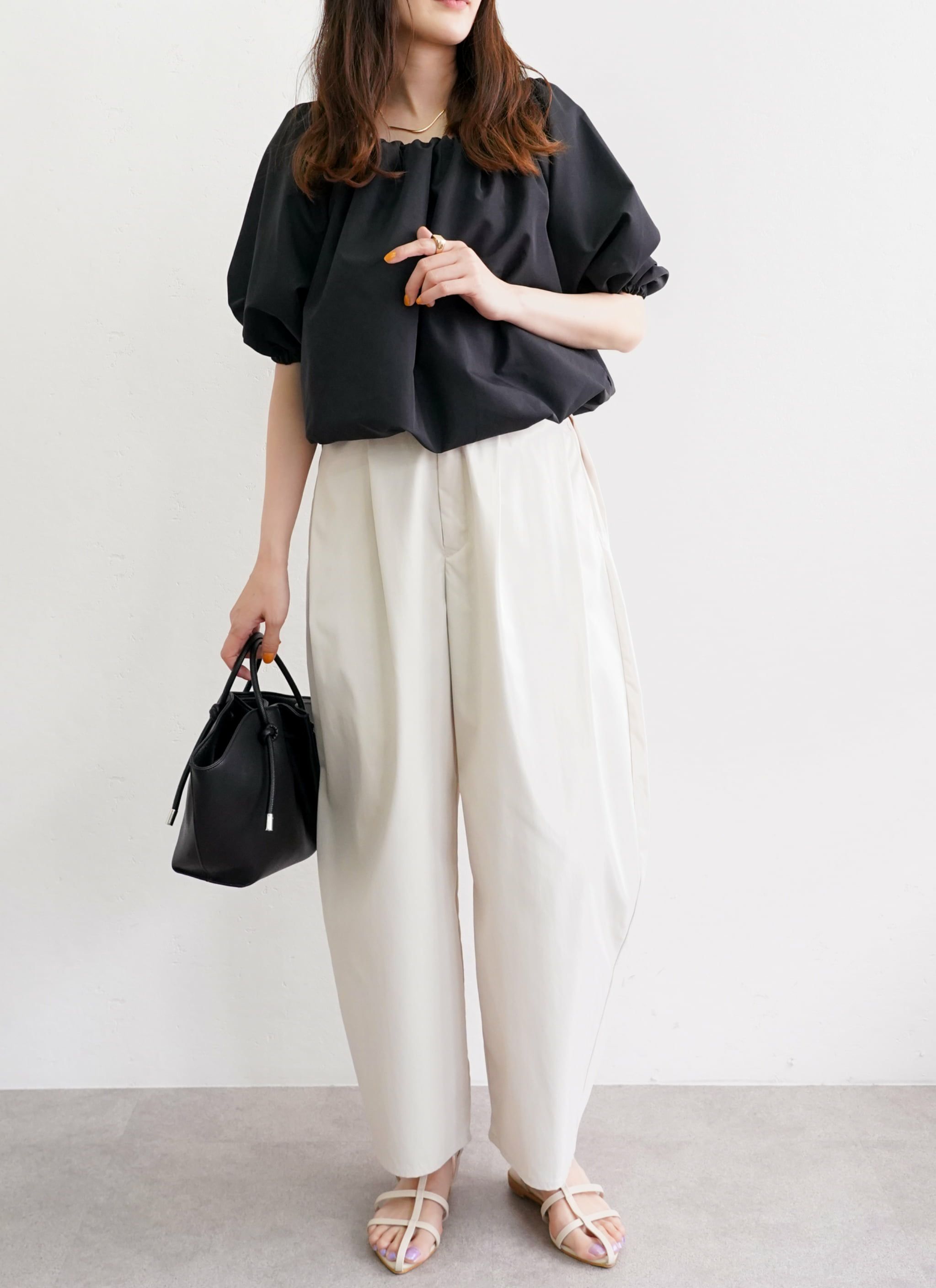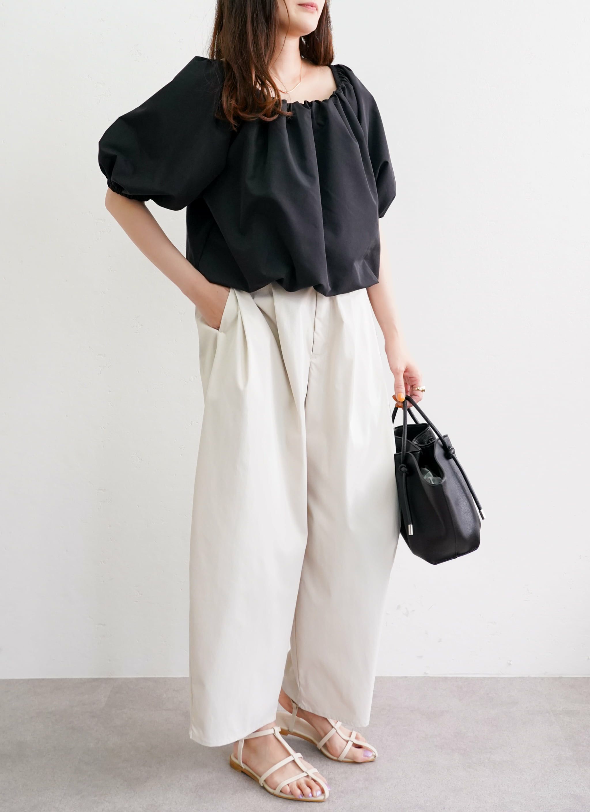 revoam【プリーツがトレンドのクロップド丈ブラウス】 【15%OFF】ボリュームスリーブプリーツブラウス