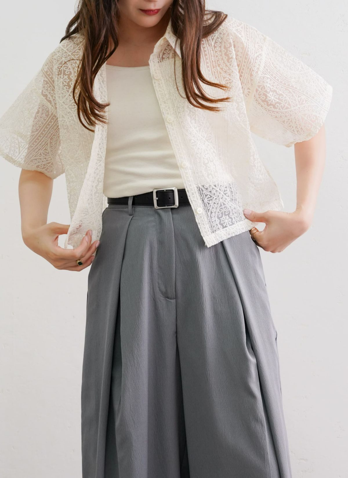 revoam【一枚で大人フェミニンを演出するレースシャツ】 レースハーフスリーブシャツ