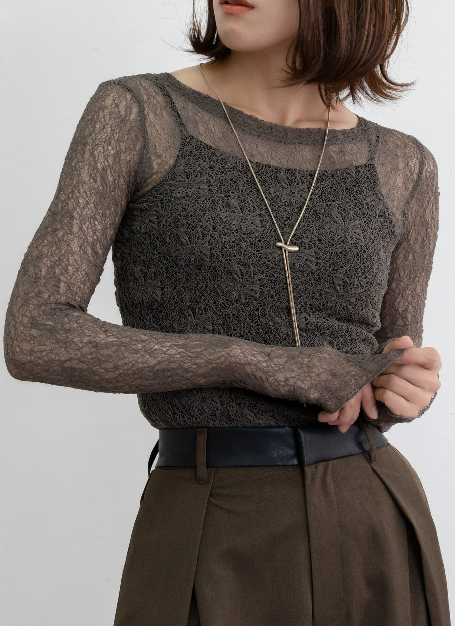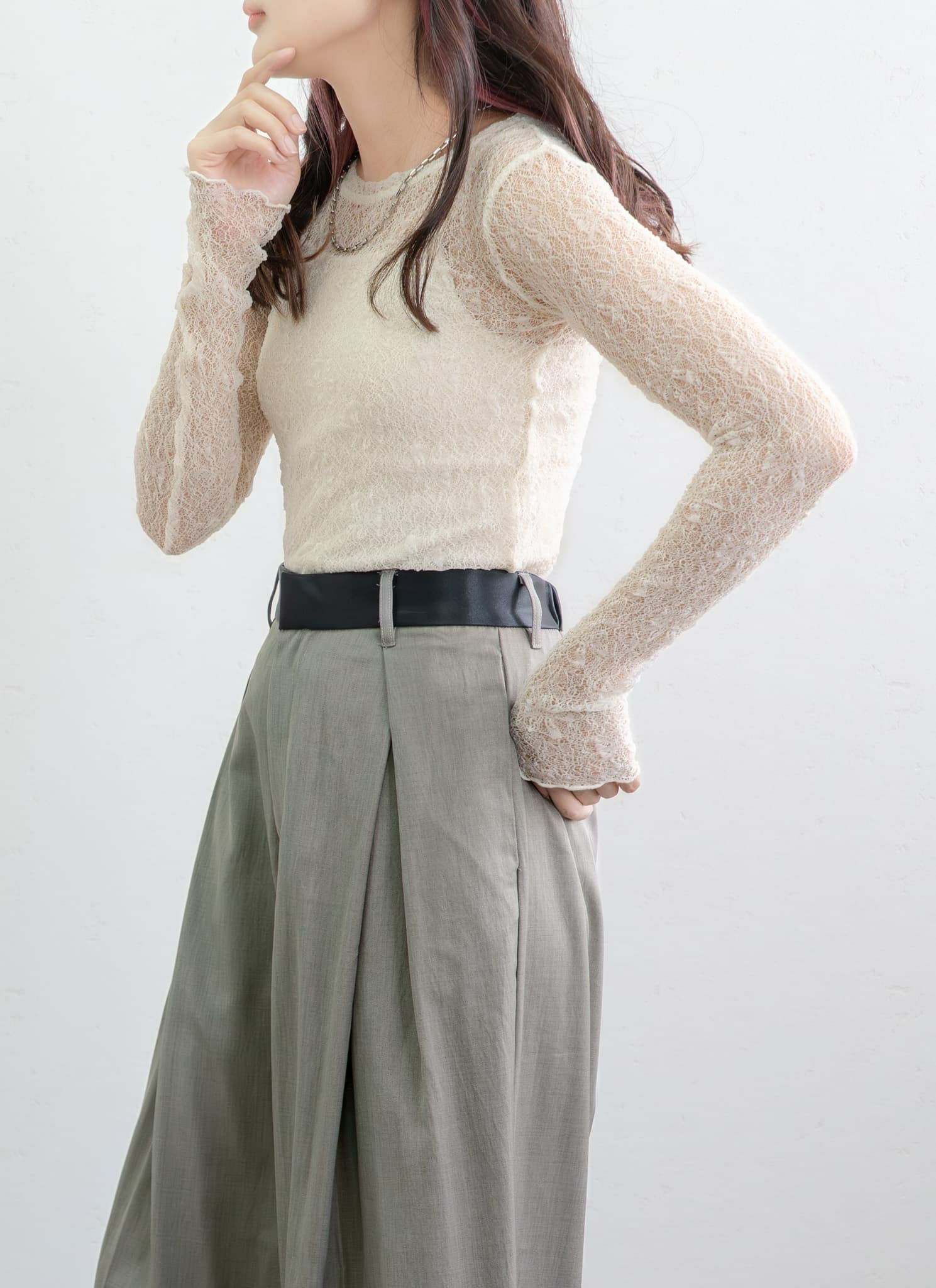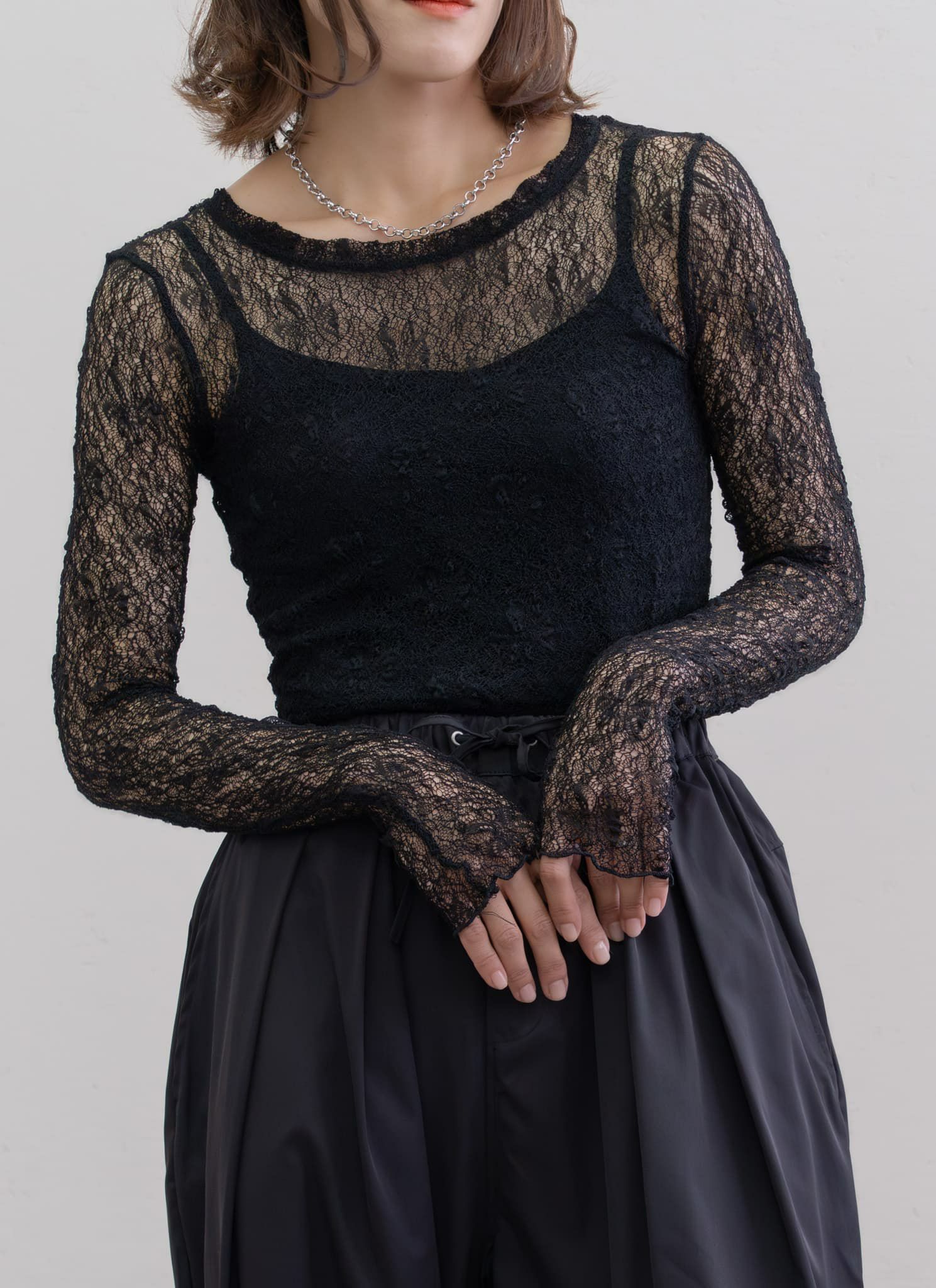 revoam【繊細なレース素材を使用したクルーネックプルオーバー】 【10%OFF】ストレッチレースプルオーバー