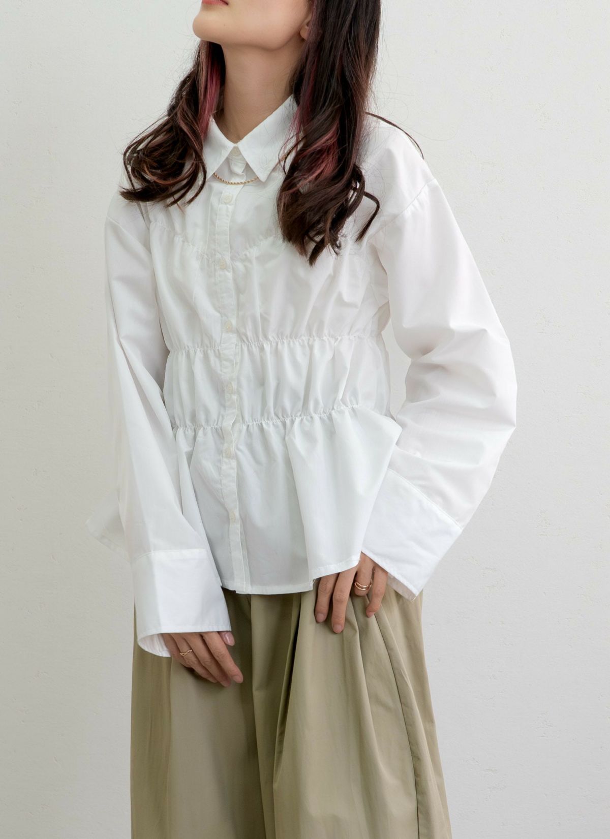 revoam【たっぷりとシャーリングが入った立体的なデザインのシャツ】 ブロードシャーリングブラウス