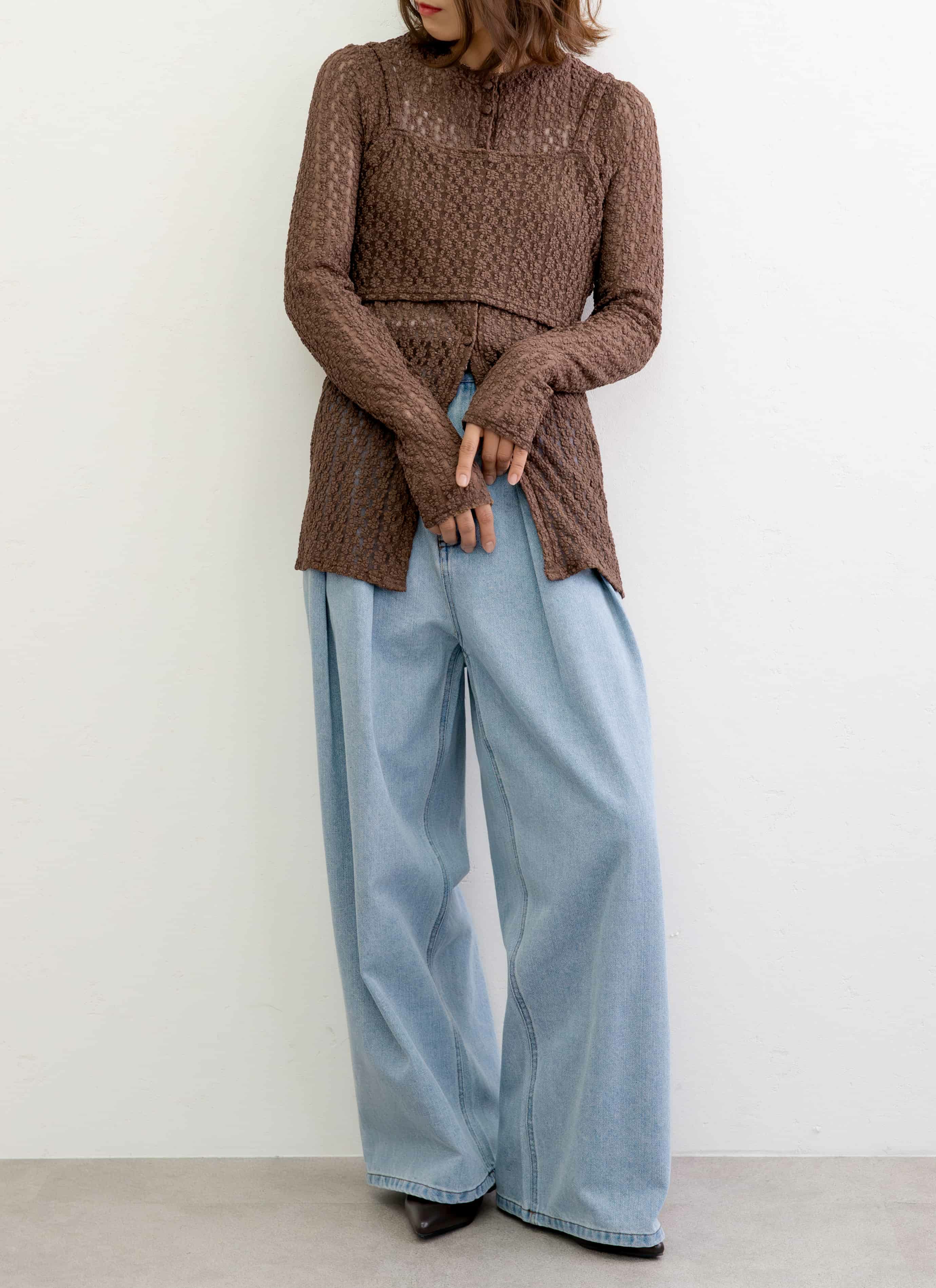 revoam【透ける、重なる、惹きつける。1枚で完成する、大人の洗練レイヤード】 レイヤード風シアープルオーバー