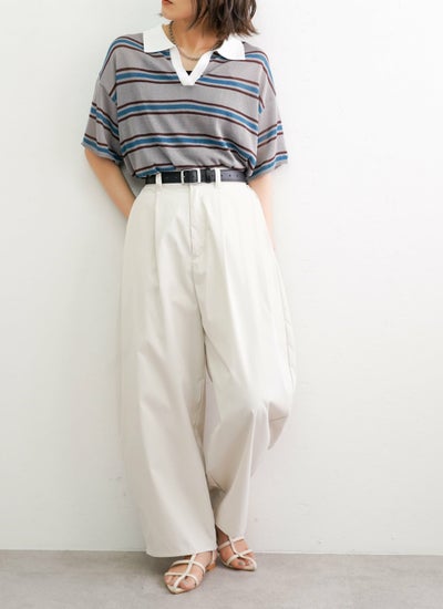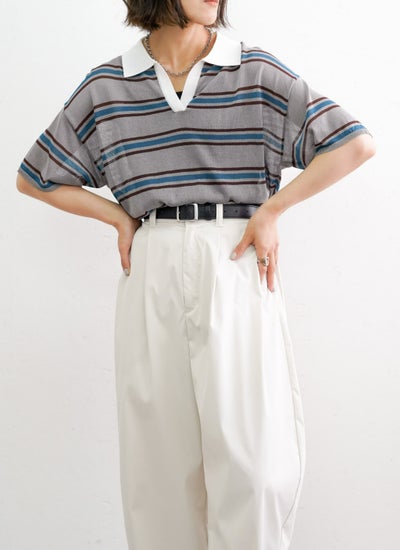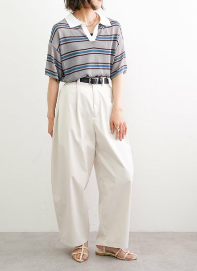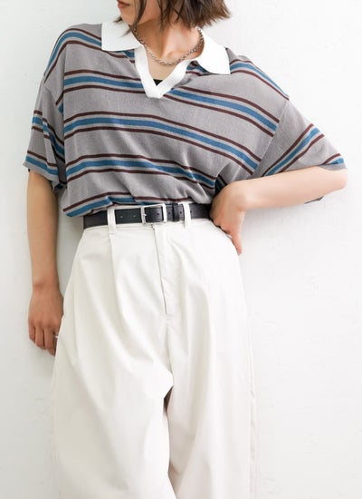 程よくルーズなシルエットとポロ襟デザインでリラックス感を演出しながら、体型も自然にカバーしてくれます。