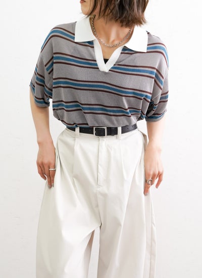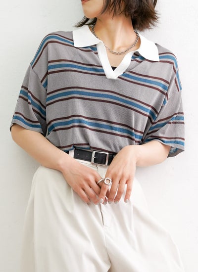 4. ボーダーポロニットプルオーバー