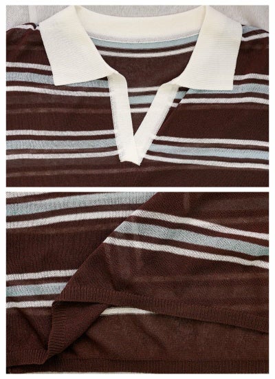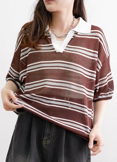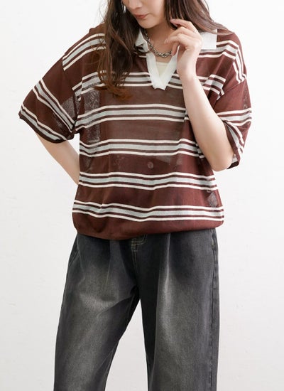 軽やかな透け感のシアーポロニットプルオーバー。