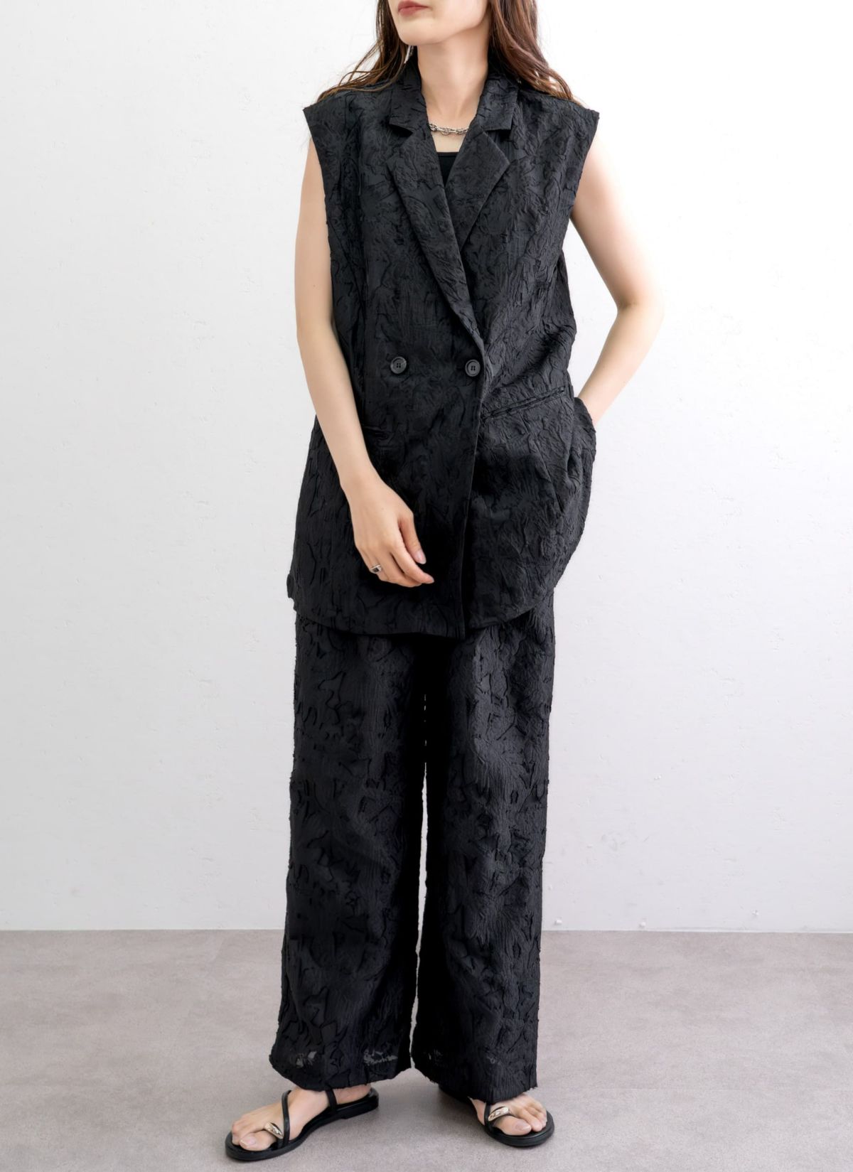revoam【ロングシーズン活躍するノースリーブテーラードジレ】 シアージャガードテーラードジレ