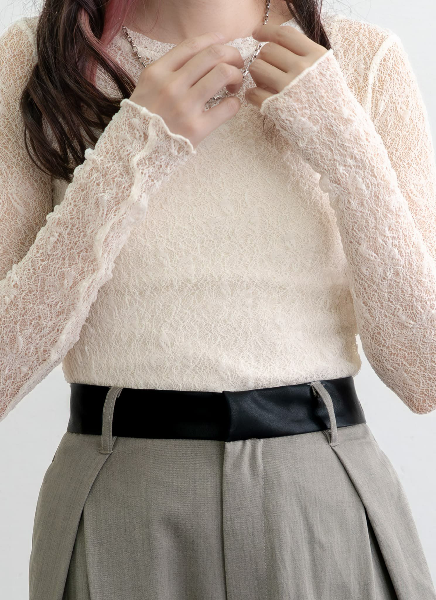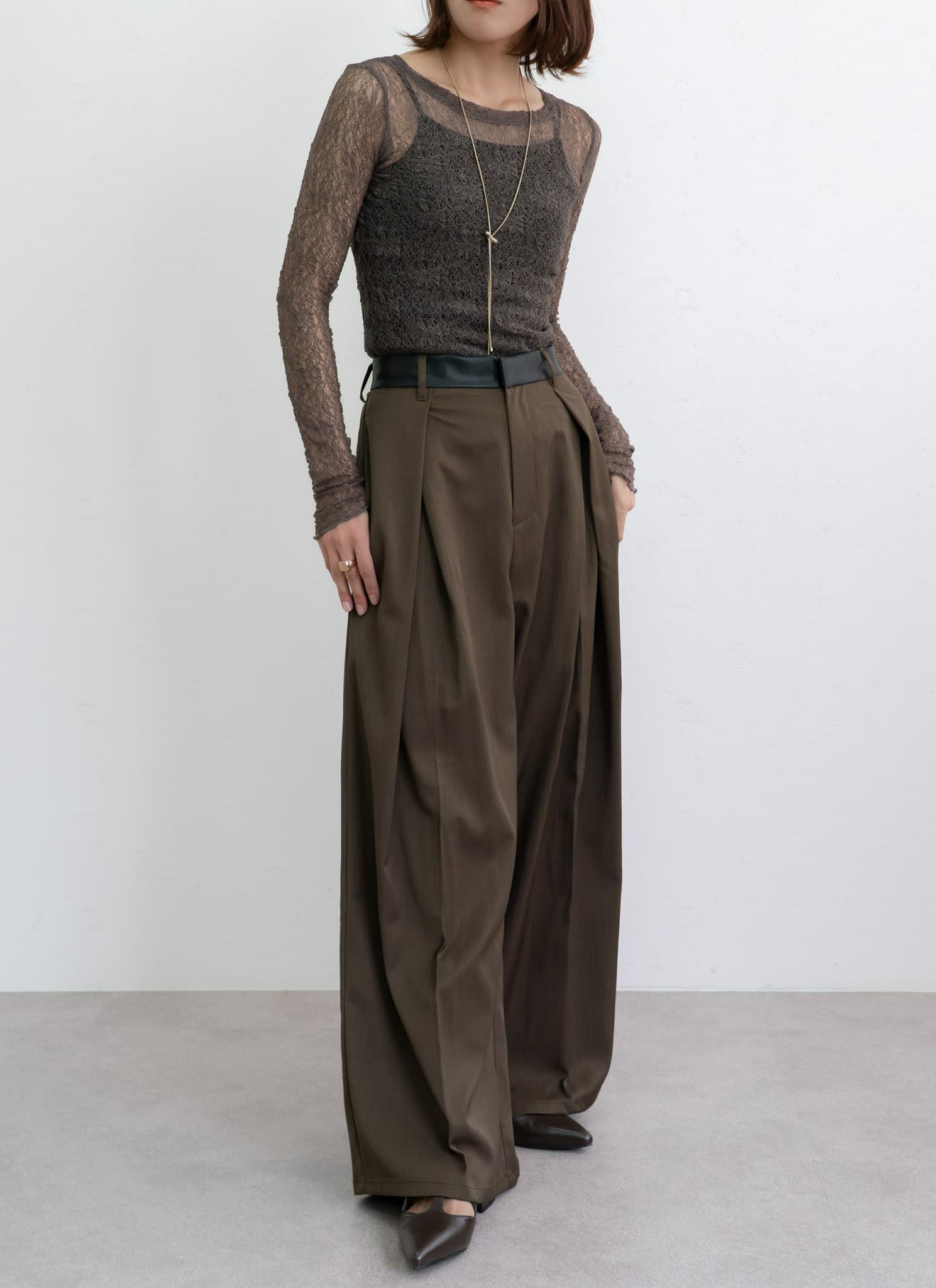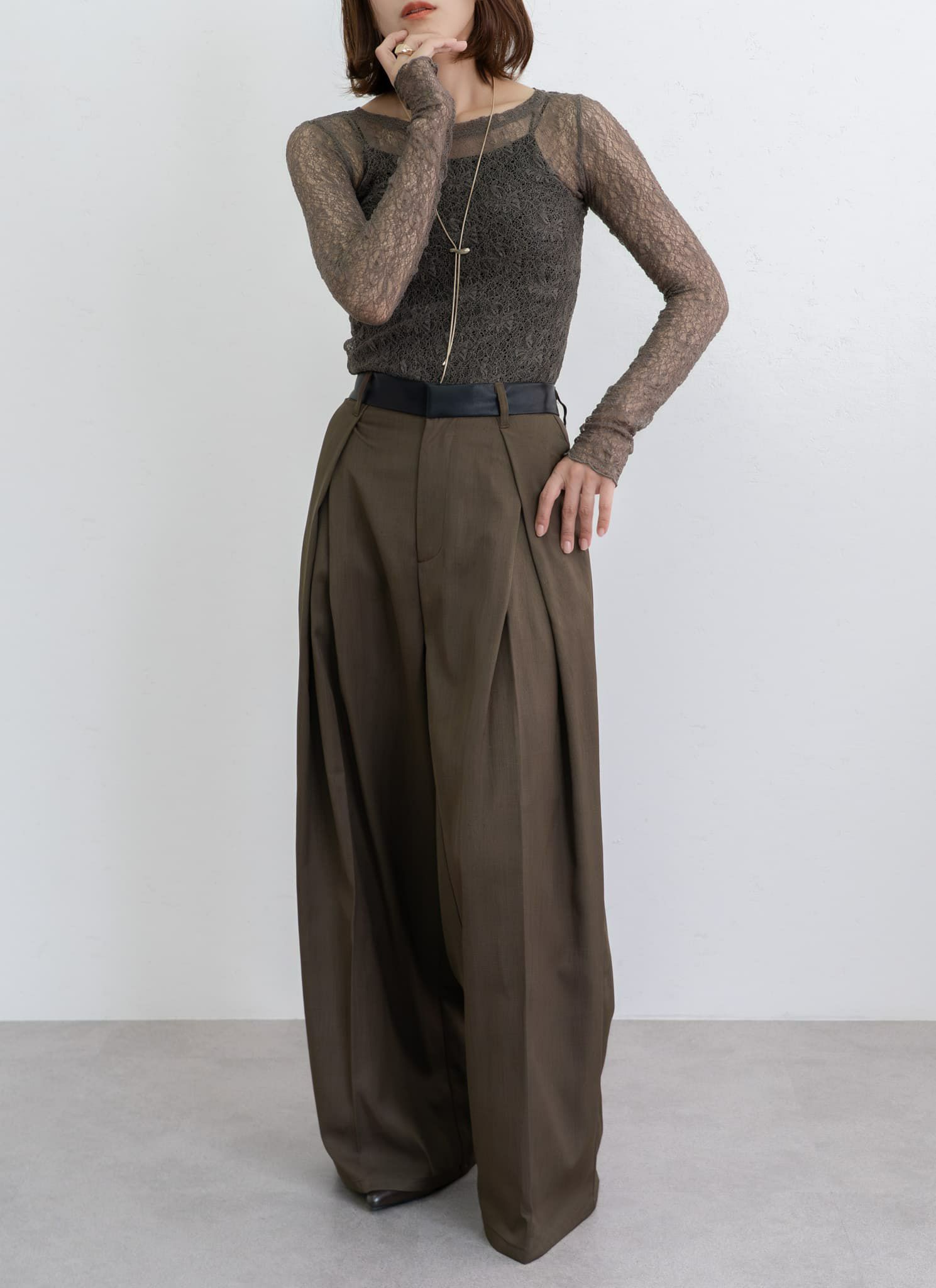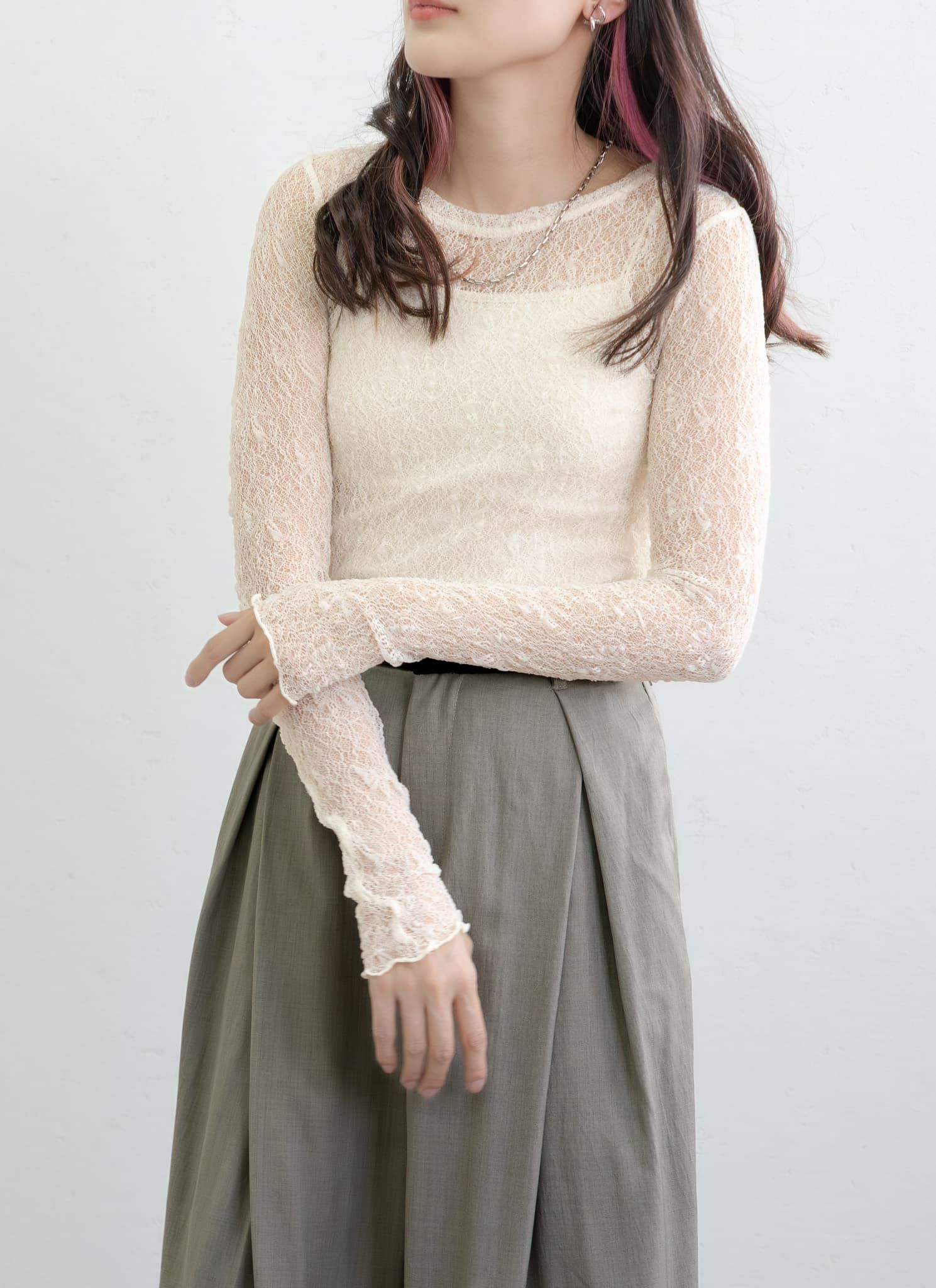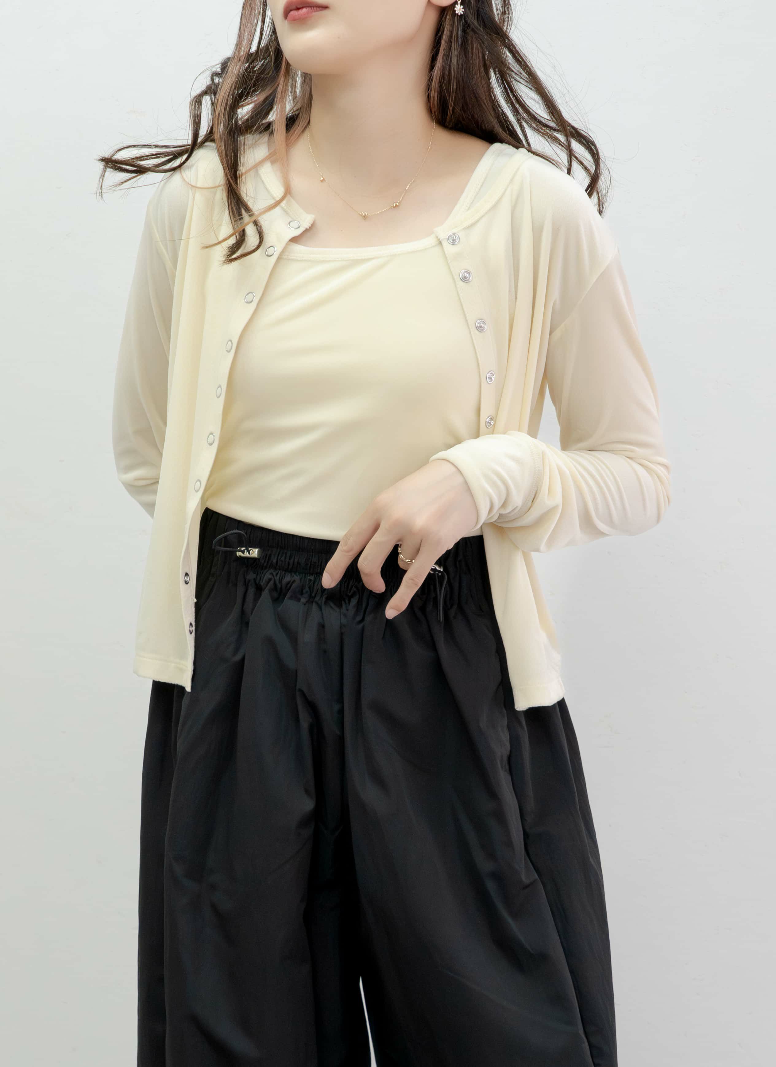 revoam【透ける、重なる、惹きつける。1枚で完成する、大人の洗練レイヤード】 レイヤード風シアープルオーバー