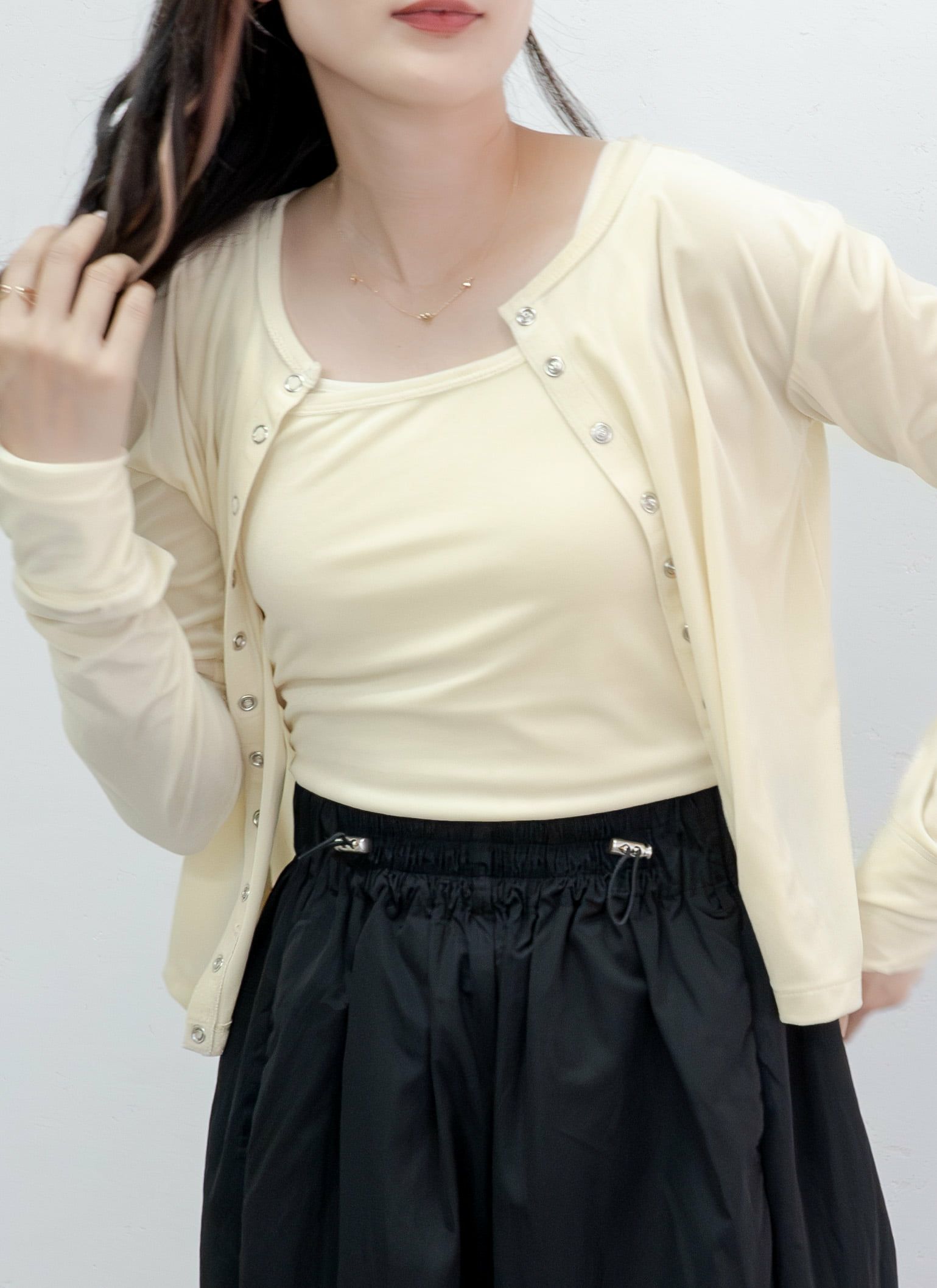 revoam【トレンド感溢れるレイヤードアイテム】 配色レイヤードカーデ